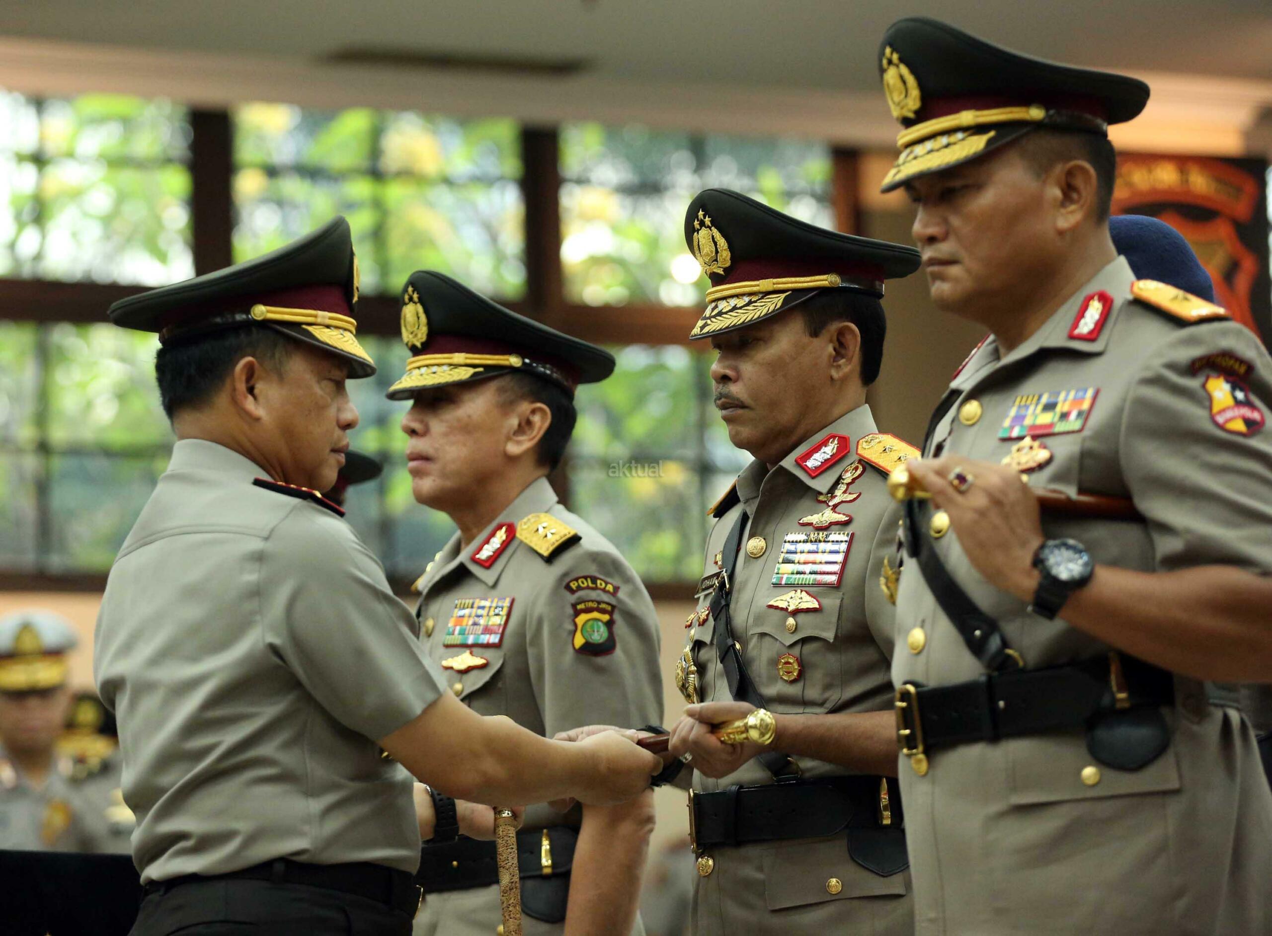 Irjen Idham Azis dan Irjen Mochamad Iriawan dalam acara serah terima jabatan (sertijab) di Rupatama Mabes Polri, Rabu (26/7). Jabatan Kapolda Metro Jaya resmi berpindah dari Irjen Mochamad Iriawan ke Irjen Idham Azis. AKTUAL/Tino Oktaviano