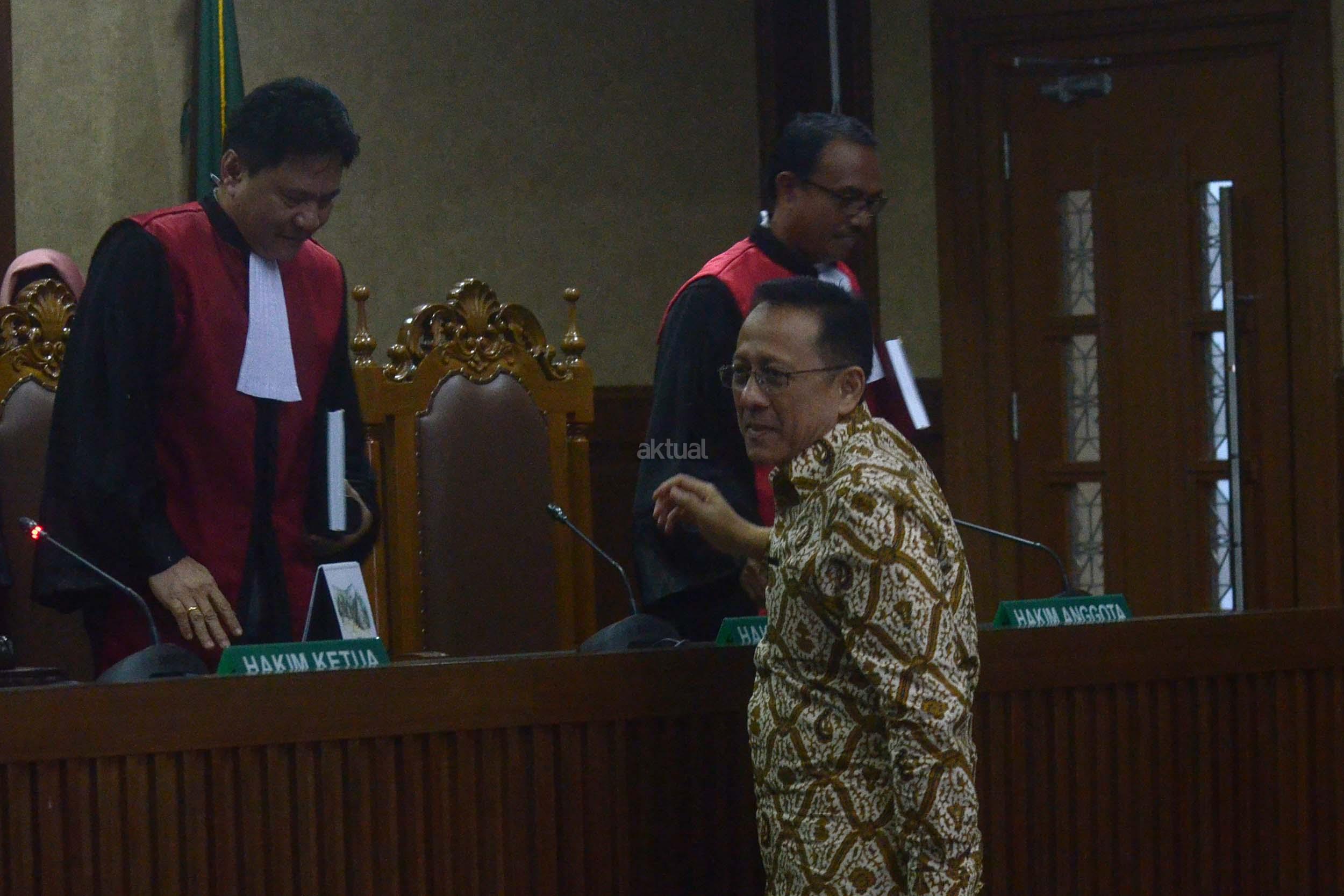 Majelis Hakim pengadilan Tipikor memvonis mantan Ketua DPD Irman Gusman 4 tahun 6 bulan penjara dan denda Rp 200 juta subsider 3 bulan kurungan, Irman terbukti menerima suap Rp 100 juta dari suami istri pengusaha gula asal Sumatera Barat. AKTUAL/Munzir