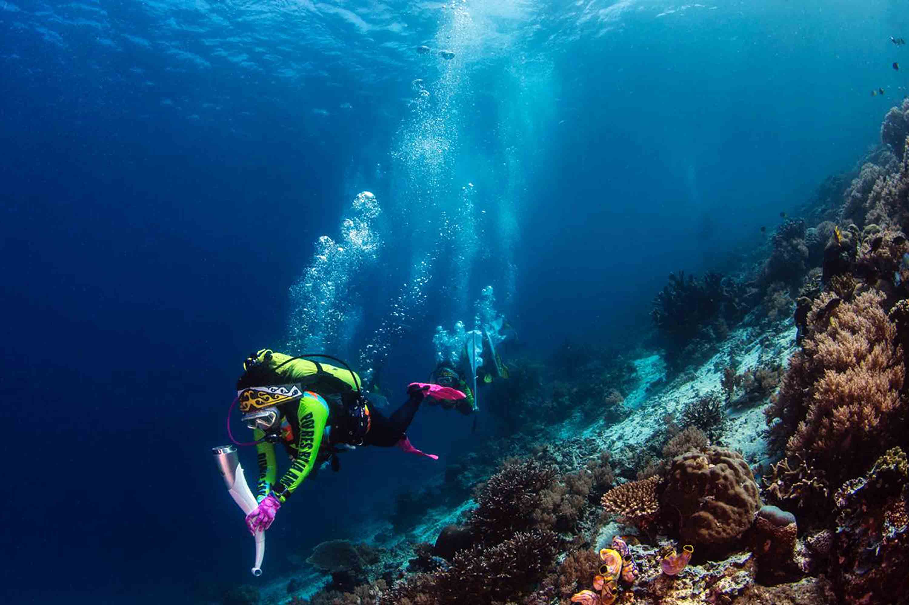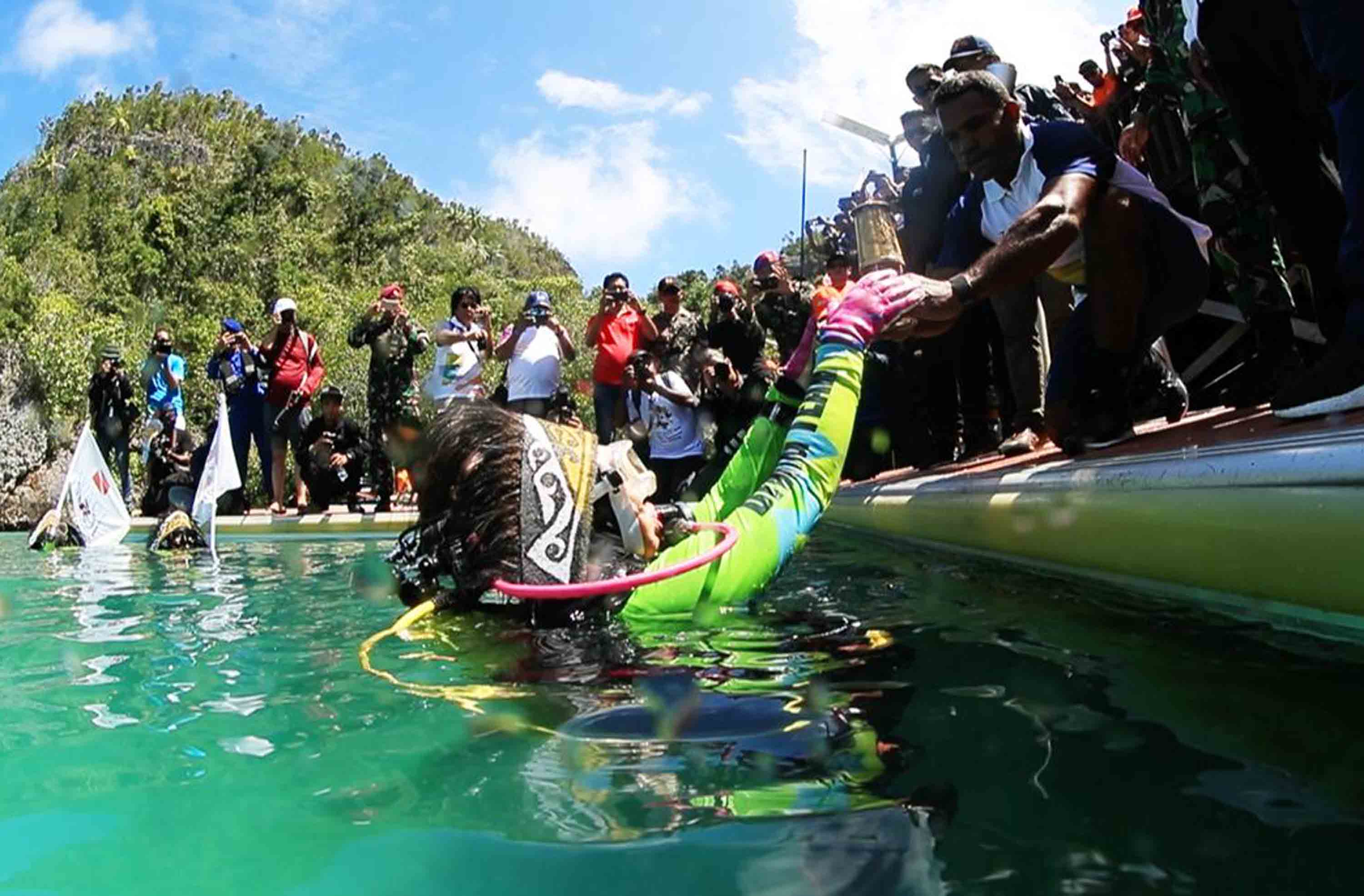 Istri Kapolri Bawa Obor Asian Games Menyelam di Laut Raja Ampat