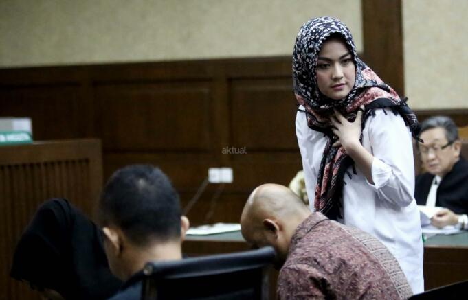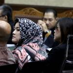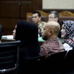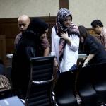 Istri terdakwa sidang dugaan suap Raperda Teluk Reklamasi, M Sanusi, Evelien Irawan (kemeja putih), menjadi saksi pada persidangan suaminya, di Pengadilan Tipikor, Jakarta, Senin (3/10/2016). Pada sidang ini, JPU KPK menghadirkan tujuh orang saksi. Aktual/Munzir