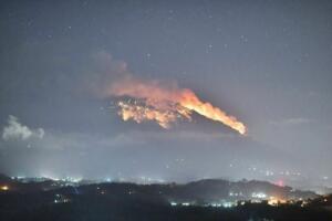 Abu vulkanik letusan Gunung Agung mencapai 2500 meter. Gunung tersebut kembali meletus pada Februari 2018. Namun, letusan tersebut tidak terlalu signifikan ketimbang letusan pada 2017. Status gunung-gunung di atas ini masih menjadi perhatian.