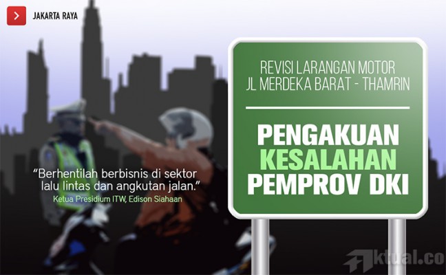 Jakarta, Aktual.co — Indonesia Traffic Watch (ITW) menilai revisi larangan sepeda motor melintas di Jalan Merdeka Barat hingga Jalan Thamrin Jakarta adalah bentuk pengakuan dari Pemprov DKI atas tindakan diskriminatif dan semena-mena yang dilakukannya lewat Pergub No 195/2014 terhadap masyarakat pengguna kendaraan sepeda motor.