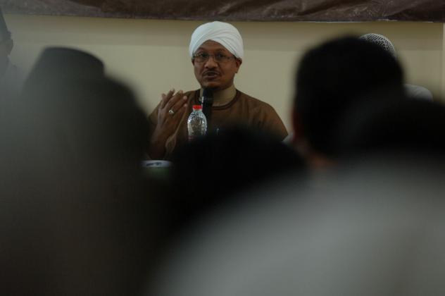 Mantan Menteri Agama, Sudan, DR. Mohammad Mustofa Yaquti berbicara saat berkunjung di STAIN Pamekasan, Jatim, Sabtu (2/1). STAIN Pamekasan menjajaki kerjasama dengan pemerintah Sudan terkait Pendidikan dan pengajaran melalui tukar menukar mahasiswa dan dosen serta kajian Keislaman. ANTARA FOTO/Saiful Bahri/pd/16