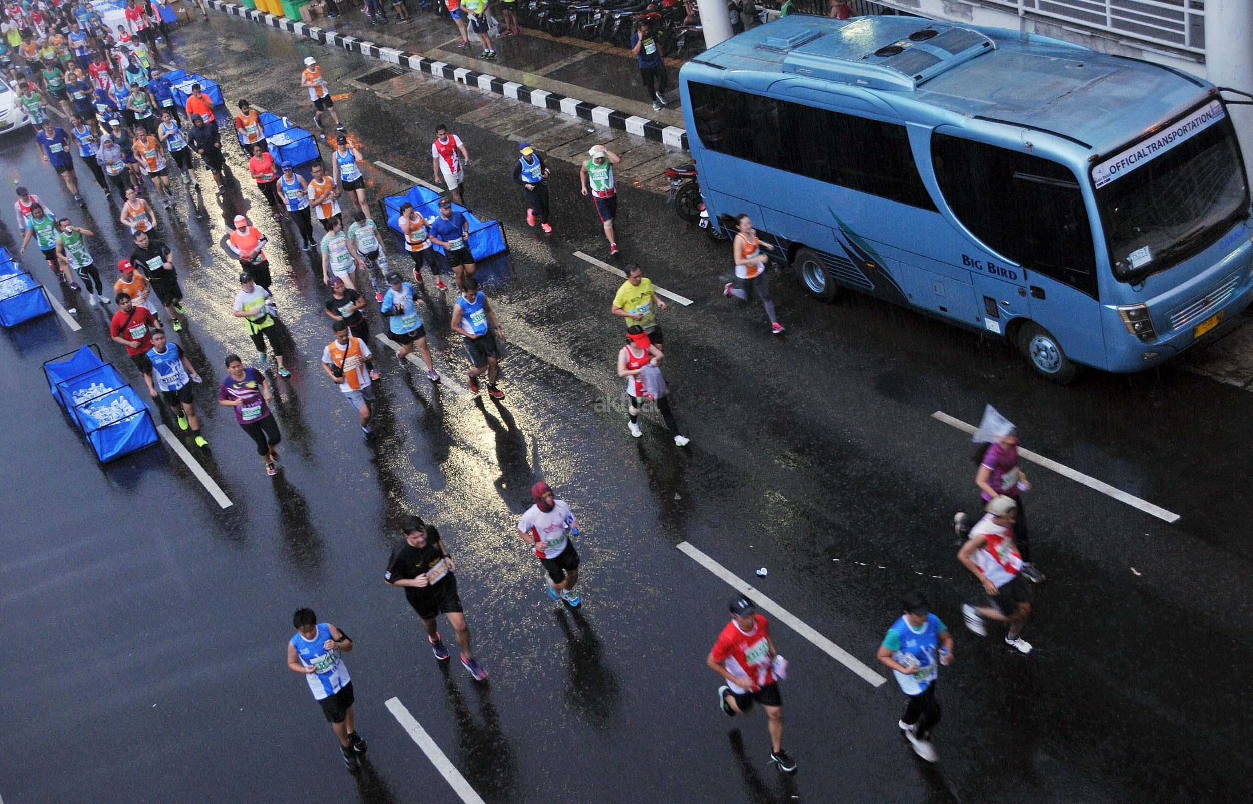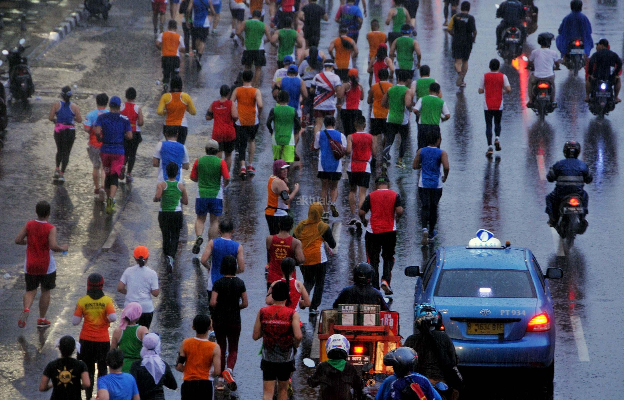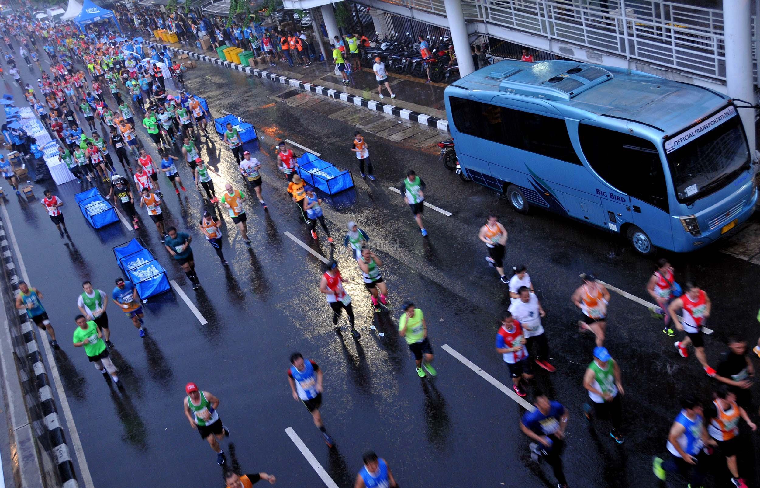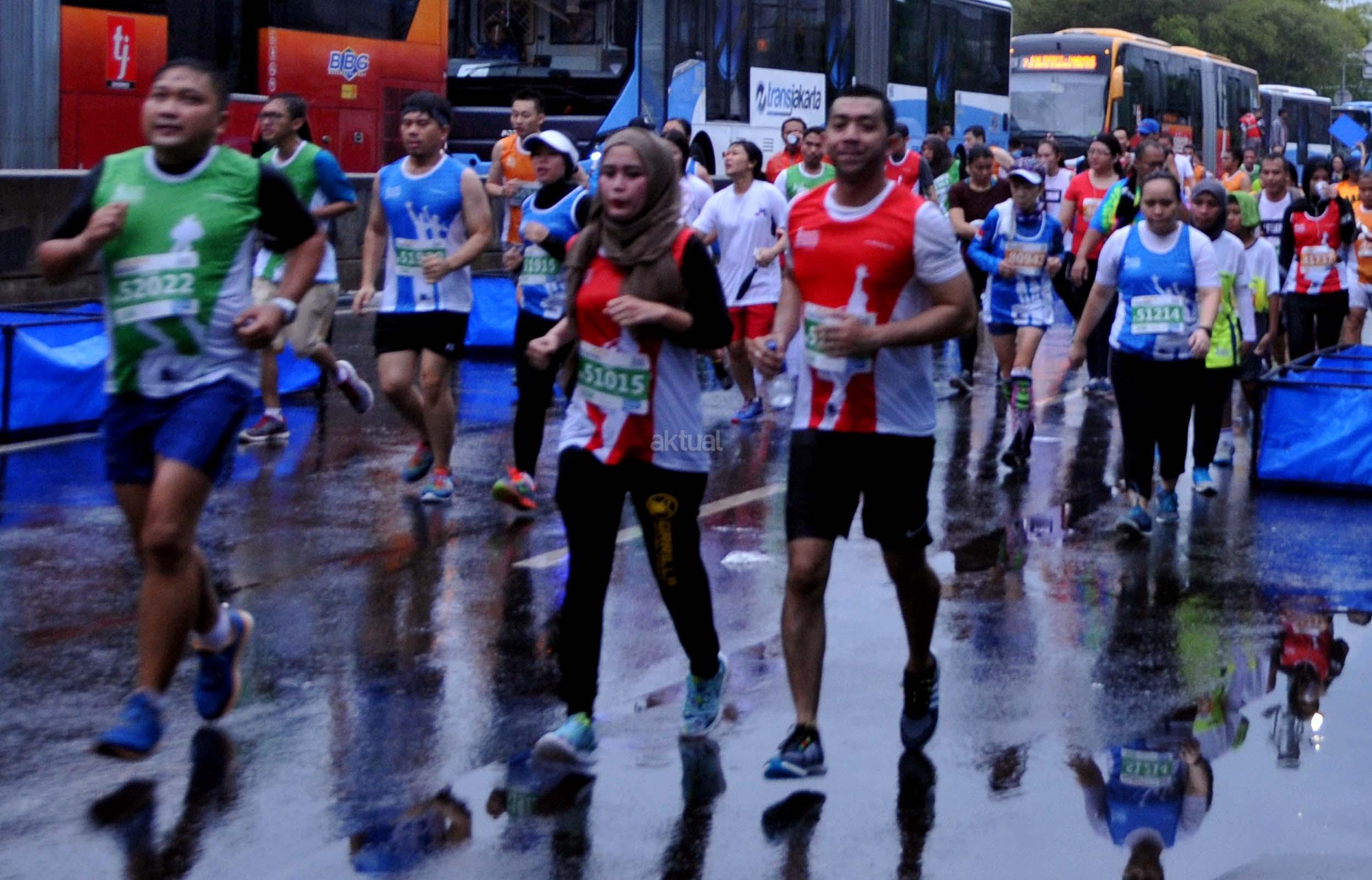 Peserta saat mengukuti Jakarta Marathon 2016 di Jakarta, Minggu (23/10/2016). Jakarta Marathon yang diikuti 16.000 peserta akan start dan finish di Silang Monas Barat. Di antara mereka ada 2.500 orang yang mengikuti lomba kategori maraton penuh, 3.500 peserta separuh maraton, 4.500 peserta 10K, dan 5.500 peserta 5K. AKTUAL/Munzir