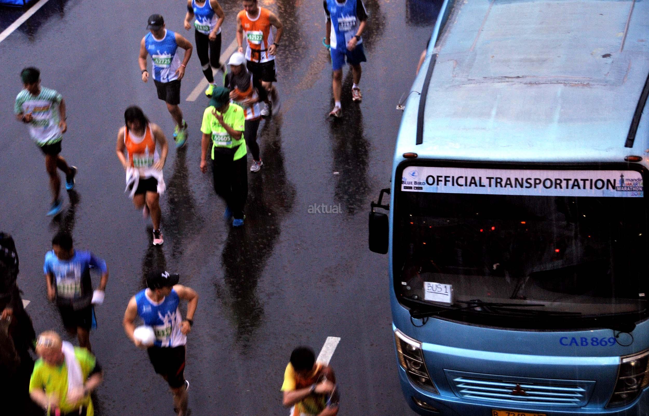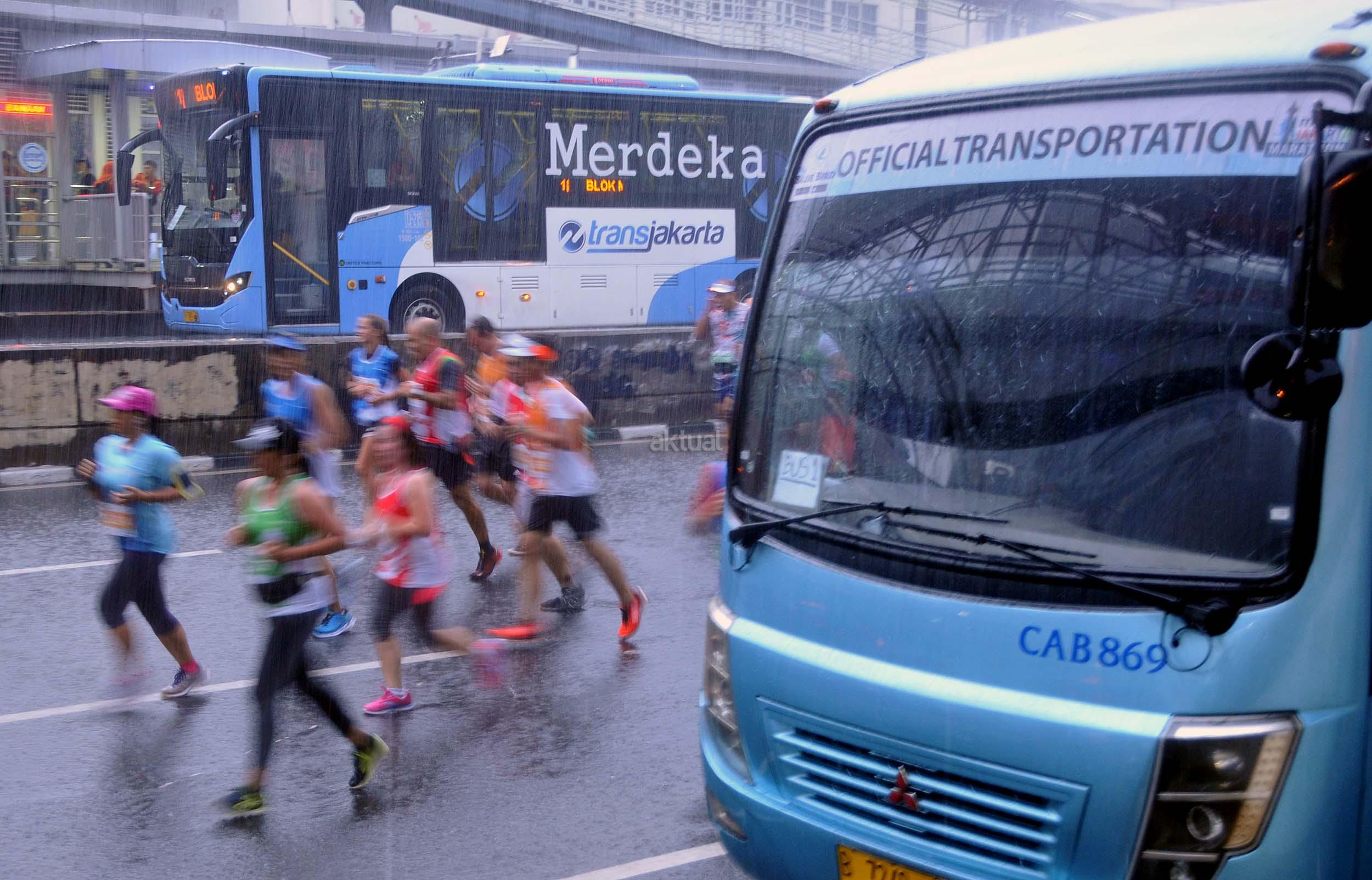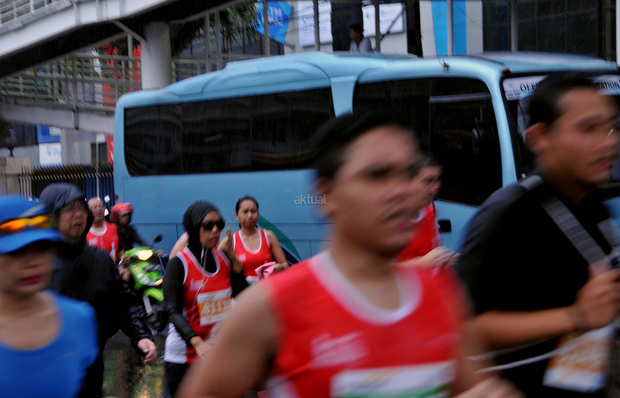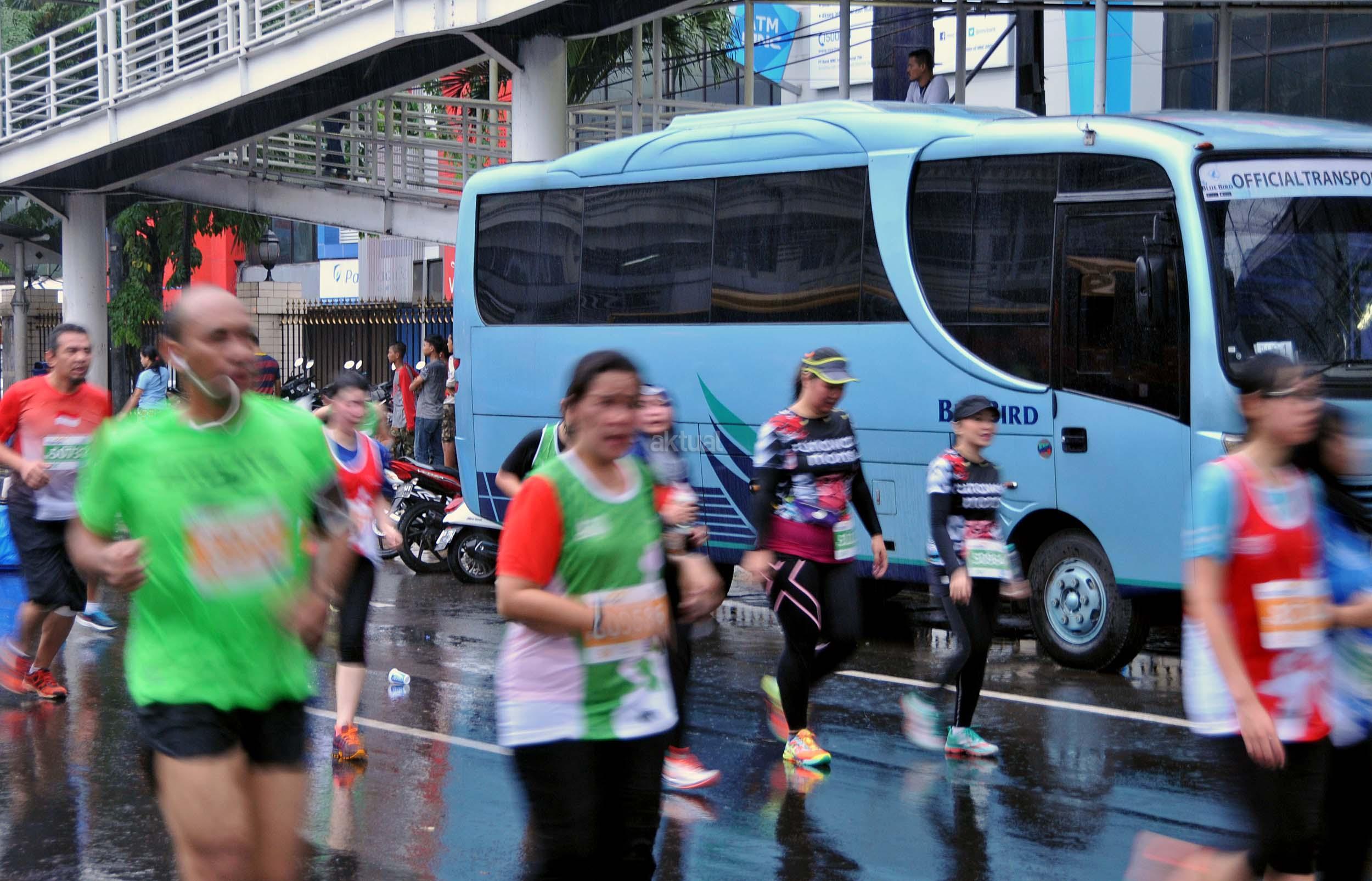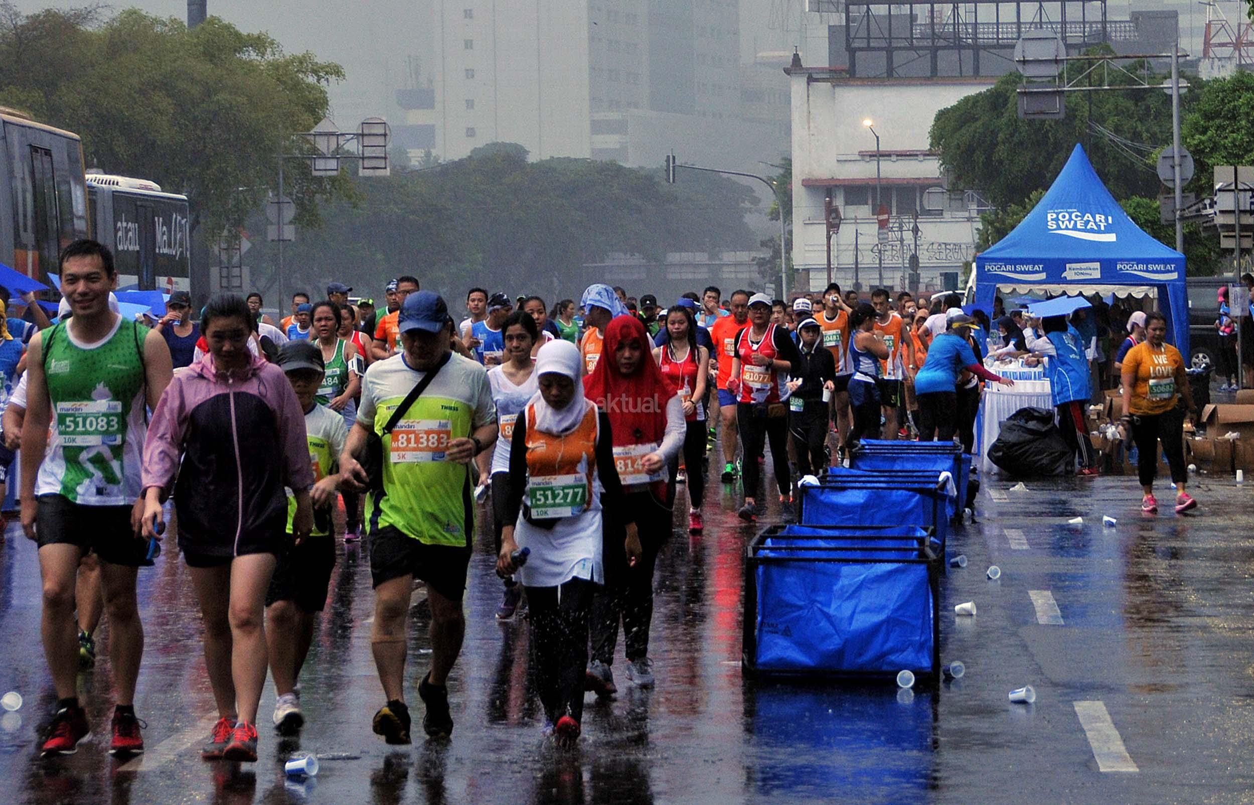 Peserta saat mengukuti Jakarta Marathon 2016 di Jakarta, Minggu (23/10/2016). Jakarta Marathon yang diikuti 16.000 peserta akan start dan finish di Silang Monas Barat. Di antara mereka ada 2.500 orang yang mengikuti lomba kategori maraton penuh, 3.500 peserta separuh maraton, 4.500 peserta 10K, dan 5.500 peserta 5K. AKTUAL/Munzir