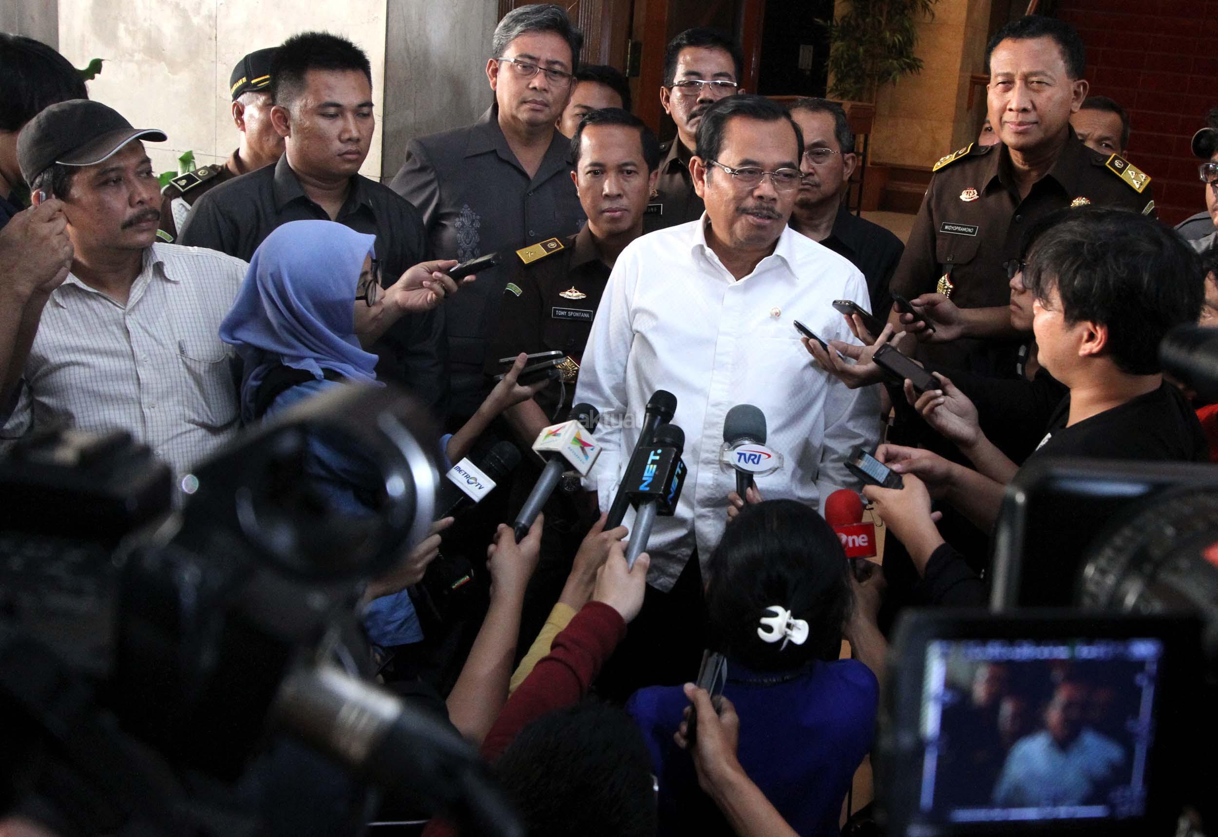 Jaksa Agung HM. Prasetyo memberikan keterangan pers terkait nama-nama Jaksa yang dicalonkan menjadi kandidat pimpinan KPK di Gedung Kejaksaan Agung, Jakarta, Selasa (23/6/2015). Kelima nama calon pimpinan KPK yang diusung Kejagung itu adalah Djoko Subagyo (Sekretaris Badan Diklat Kejaksaan), Jasman Panjaitan (Sekretaris Jaksa Agung Muda Pengawasan), Sri Haryati (Direktur Perdata TUN Kejagung), Suhardi (Kajati Sulawesi Selatan) dan Muhammad Rum (Wakil Kajati Papua).