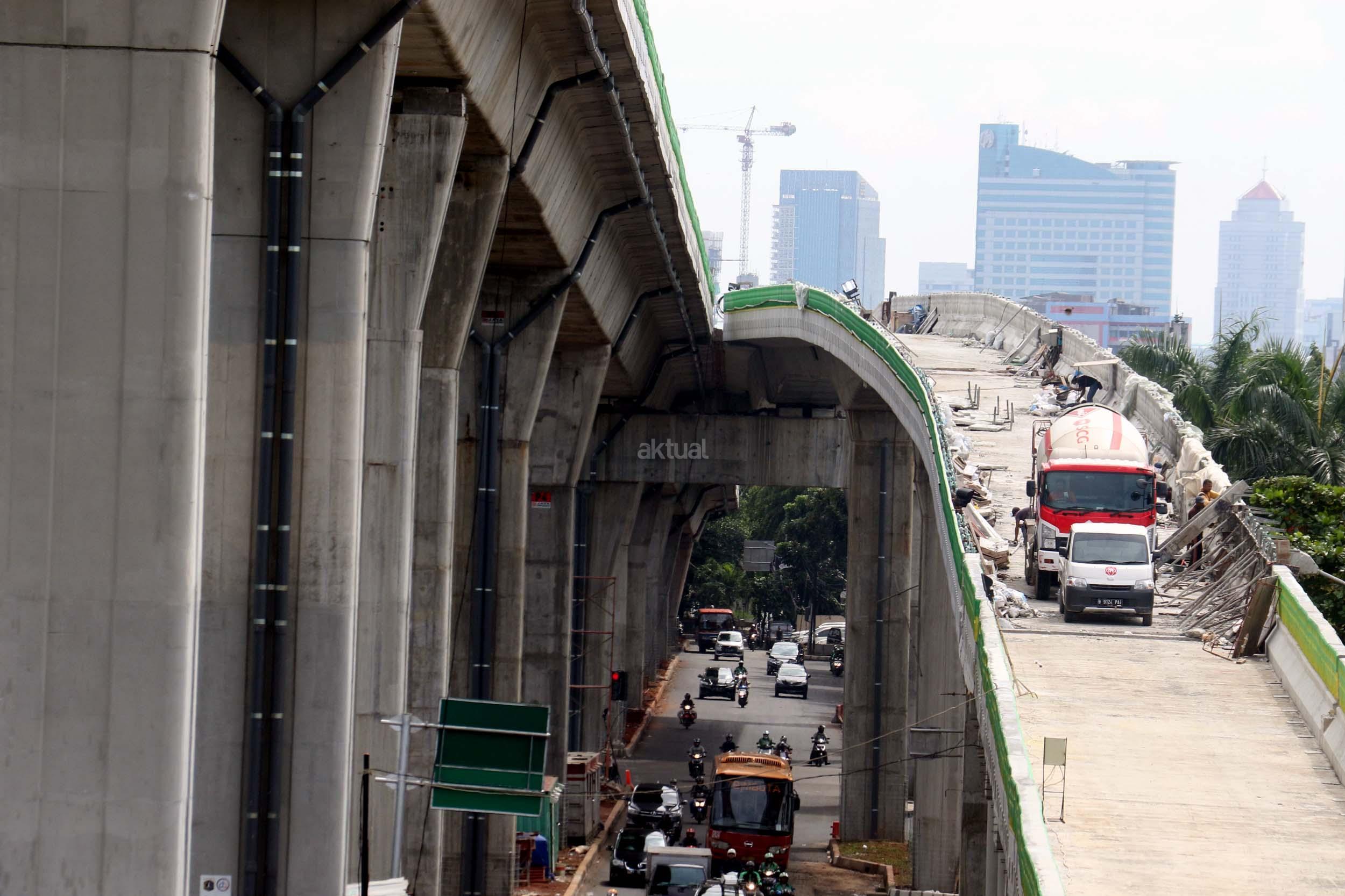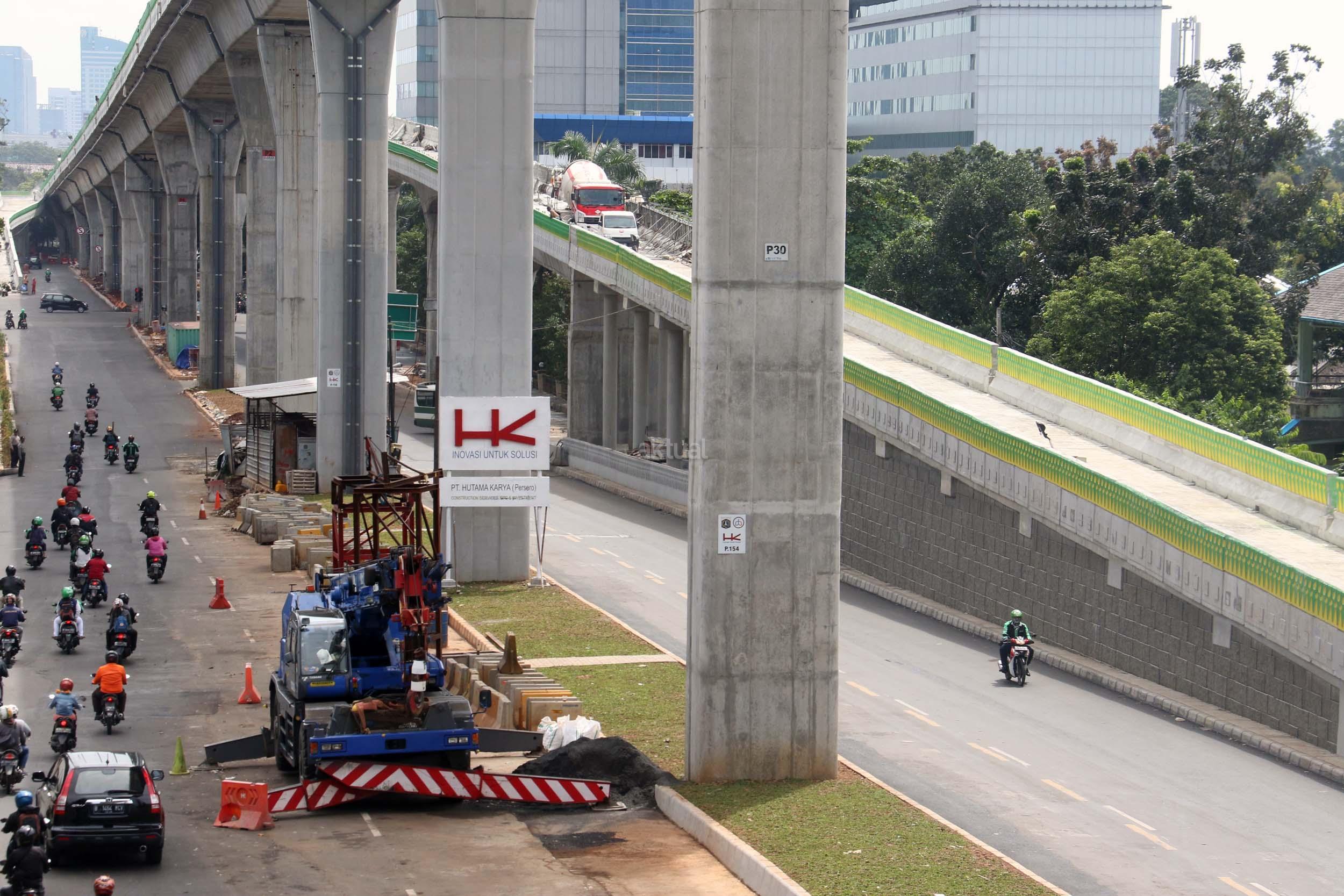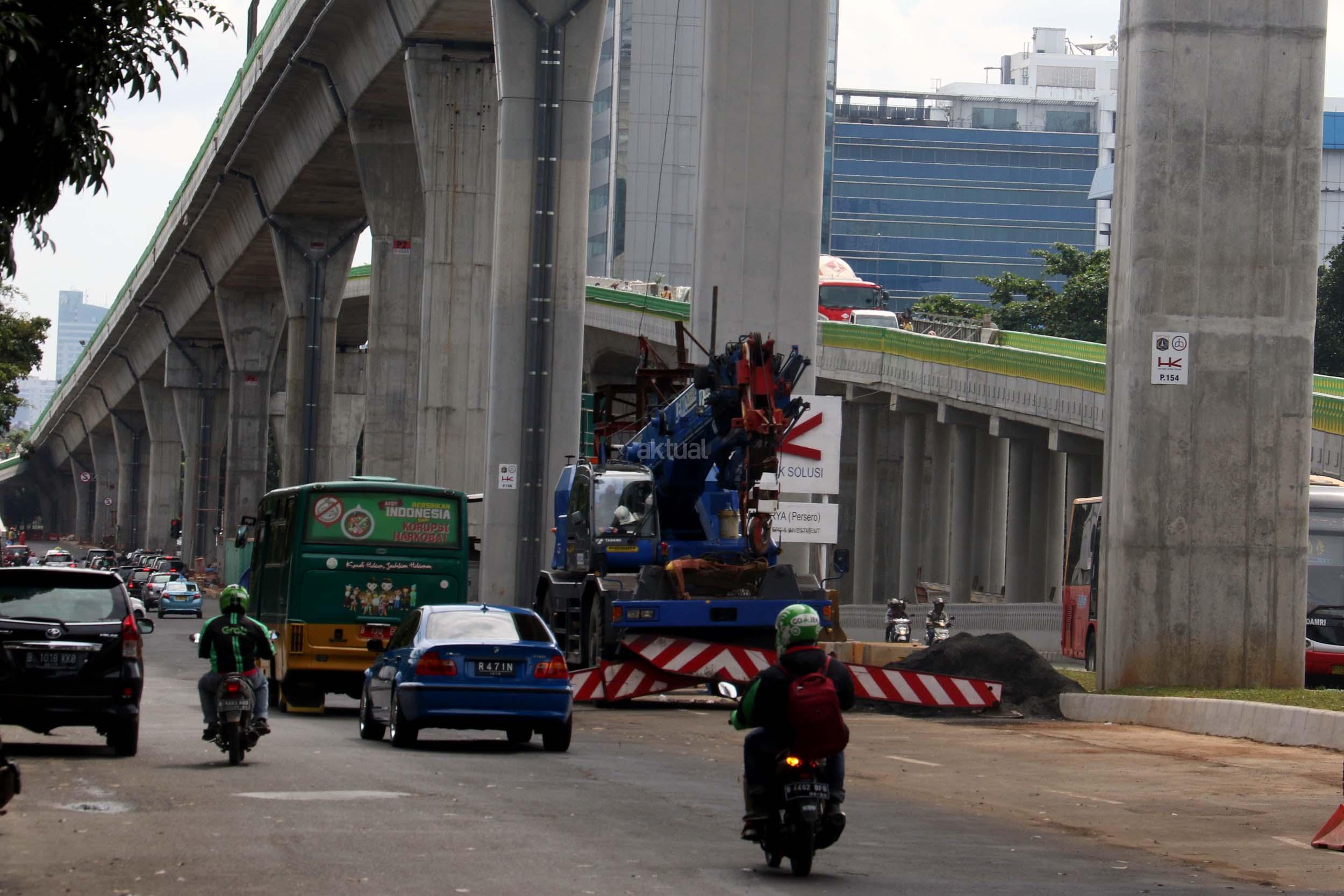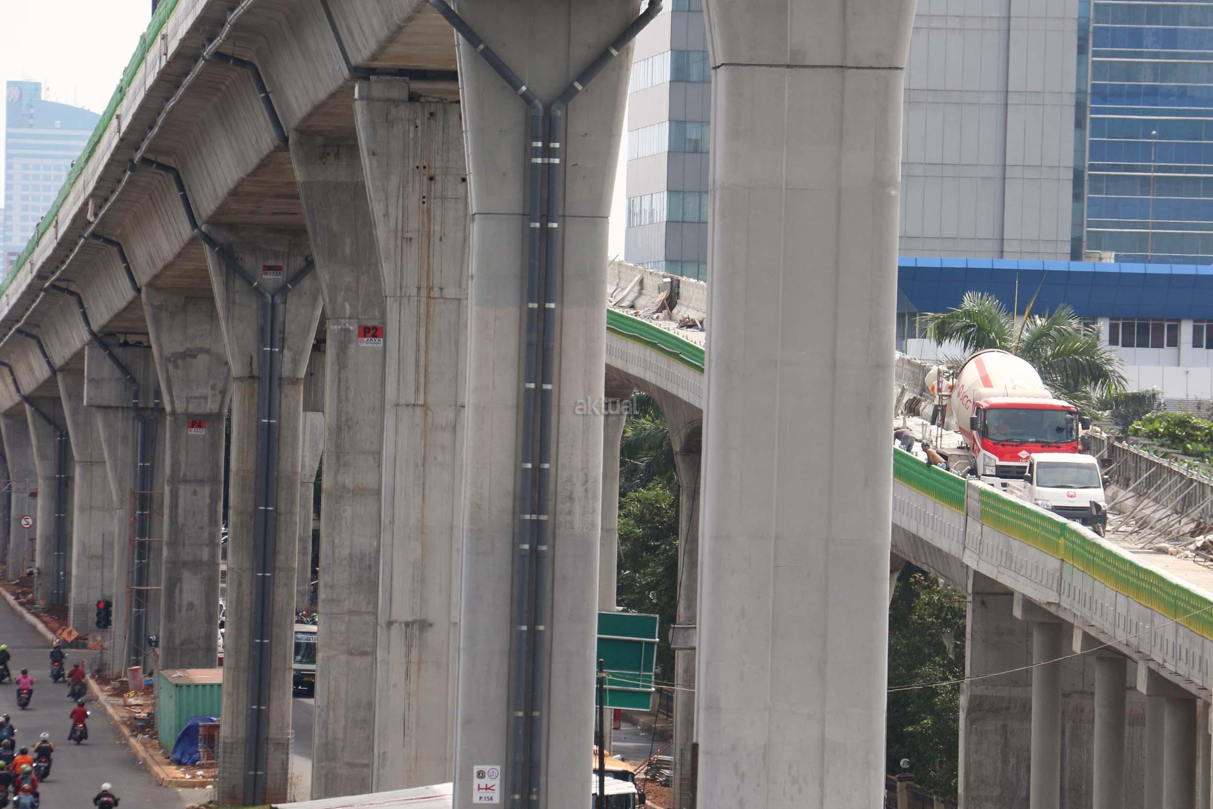 Suasana pengerjaan proyek pembangunan jalan layang Transjakarta Koridor XIII (Ciledug-Tendean), di Jakarta, Jumat (3/2/2017). Dinas Bina Marga DKI Jakarta menyatakan pembangunan jalan layang Transjakarta Koridor XIII (Ciledug-Tendean) sudah mencapai 99,5 persen, sedangkan 0,5persen masih terkendala ada pembebasan lahan. Direncanakan pada akhir Februari 2017 semua sudah dapat mencapai 100 persen, sehingga Transjakarta bisa mempergunakannya untuk melayani masyarakat. AKTUAL/Munzir