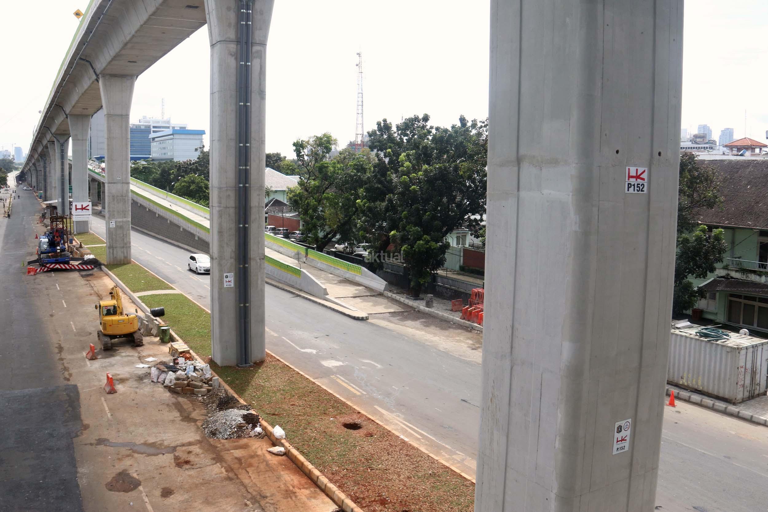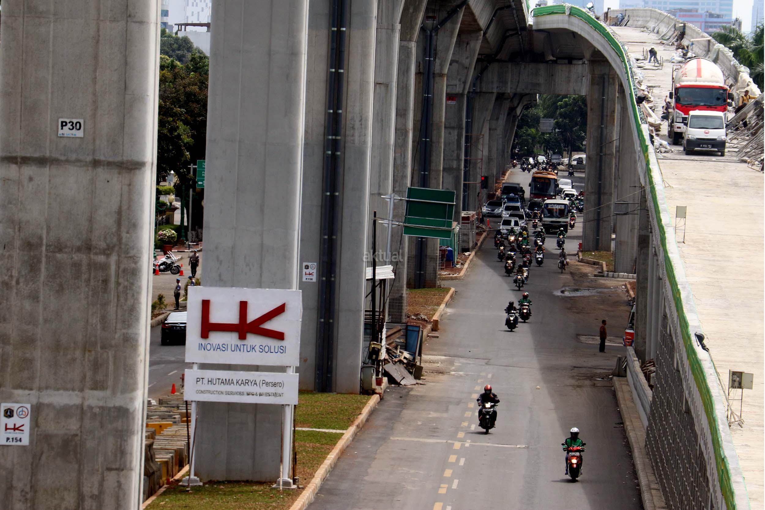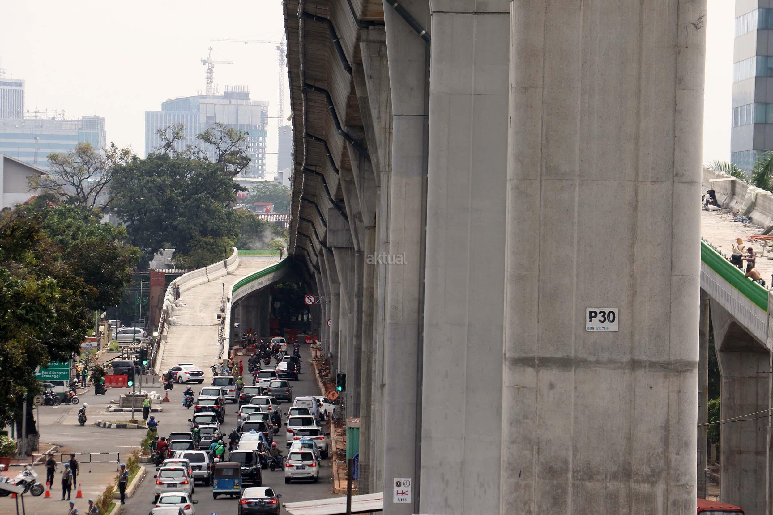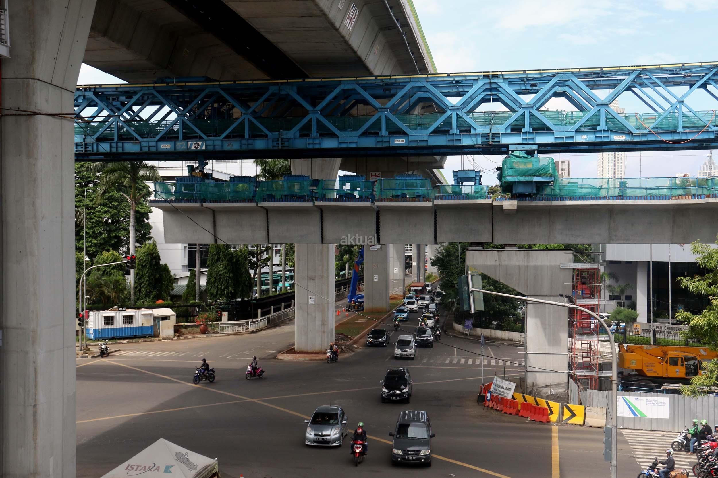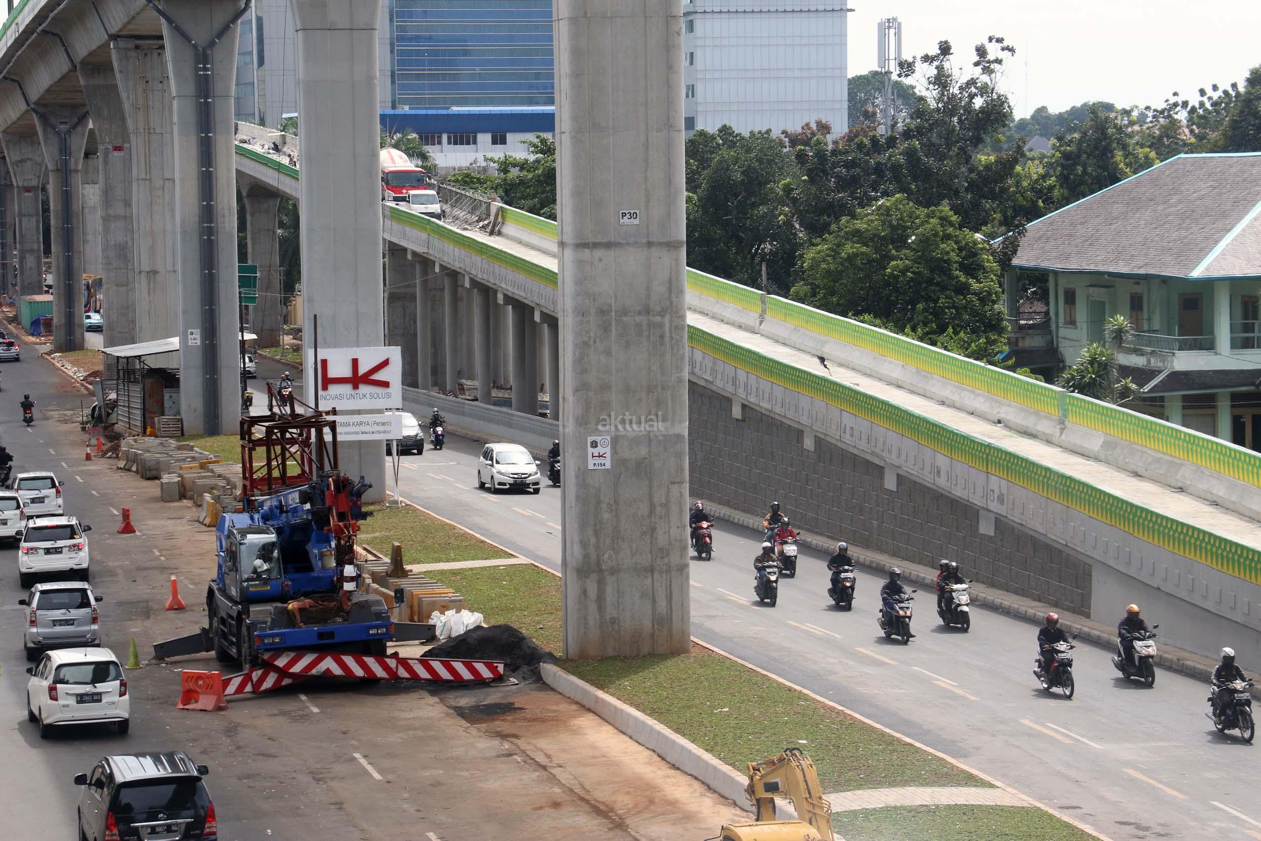 Suasana pengerjaan proyek pembangunan jalan layang Transjakarta Koridor XIII (Ciledug-Tendean), di Jakarta, Jumat (3/2/2017). Dinas Bina Marga DKI Jakarta menyatakan pembangunan jalan layang Transjakarta Koridor XIII (Ciledug-Tendean) sudah mencapai 99,5 persen, sedangkan 0,5persen masih terkendala ada pembebasan lahan. Direncanakan pada akhir Februari 2017 semua sudah dapat mencapai 100 persen, sehingga Transjakarta bisa mempergunakannya untuk melayani masyarakat. AKTUAL/Munzir