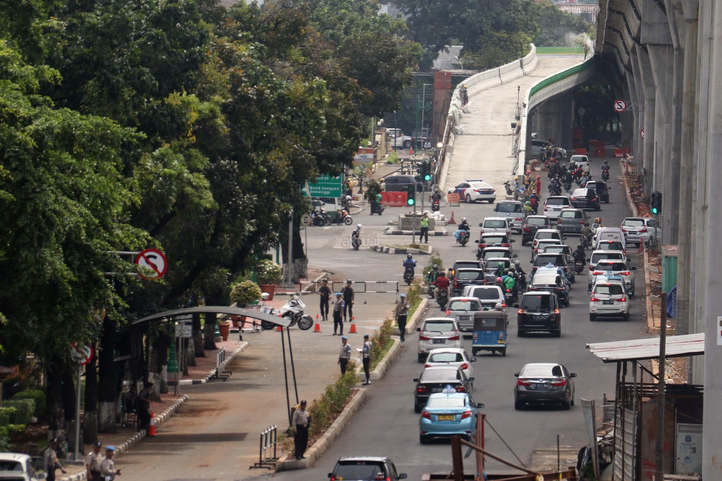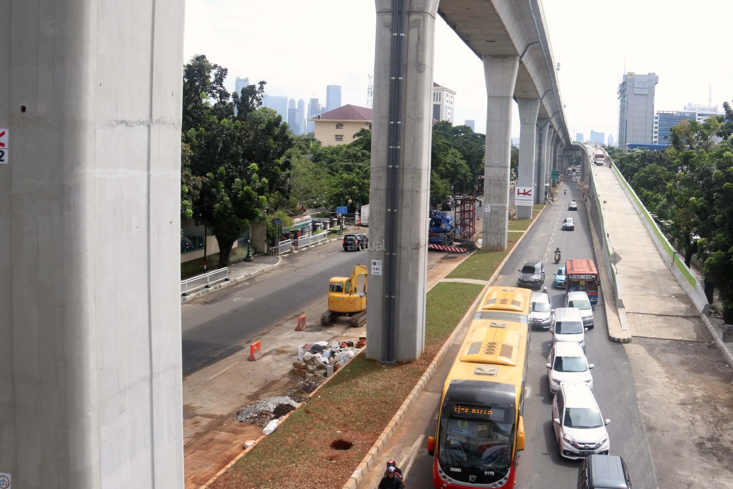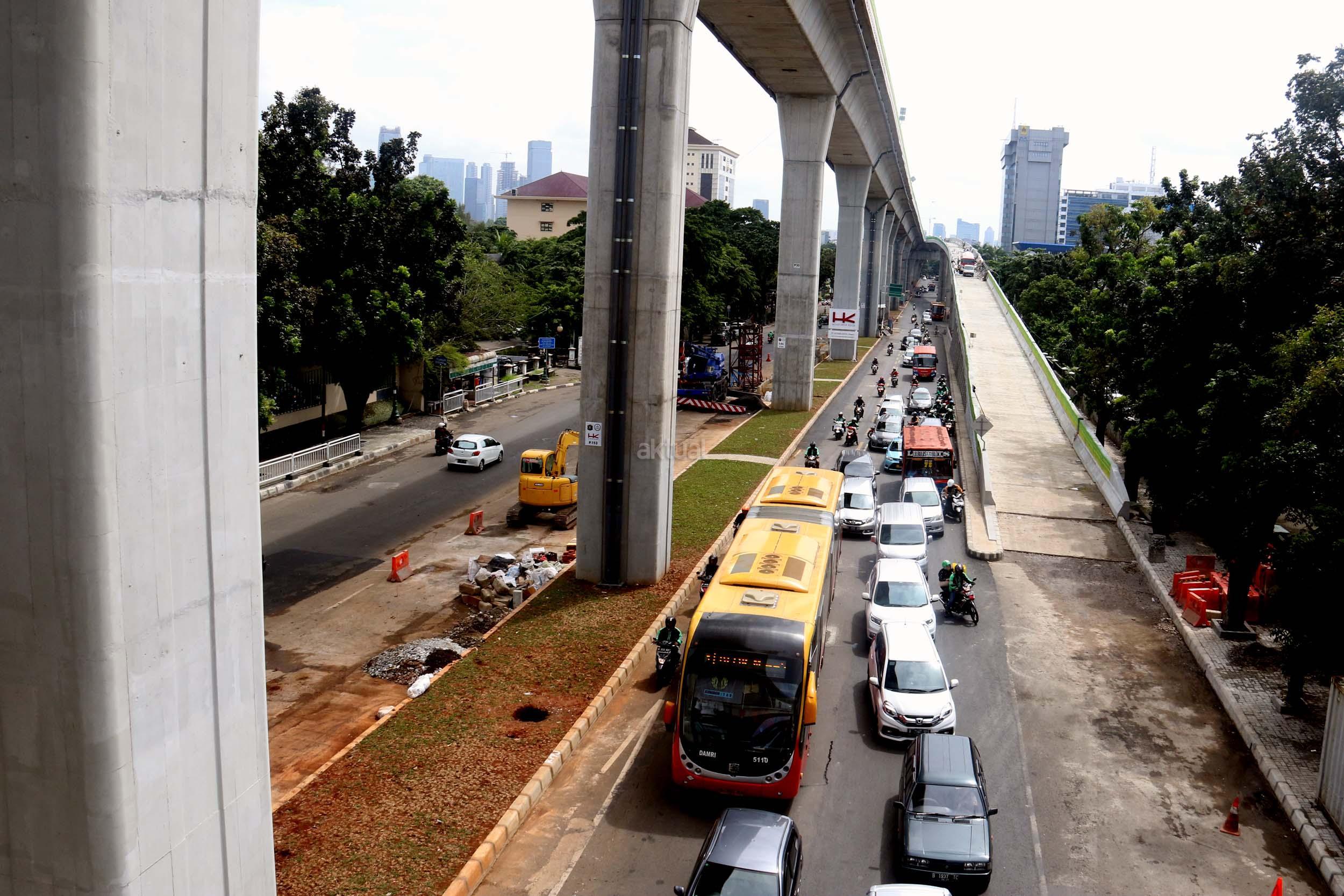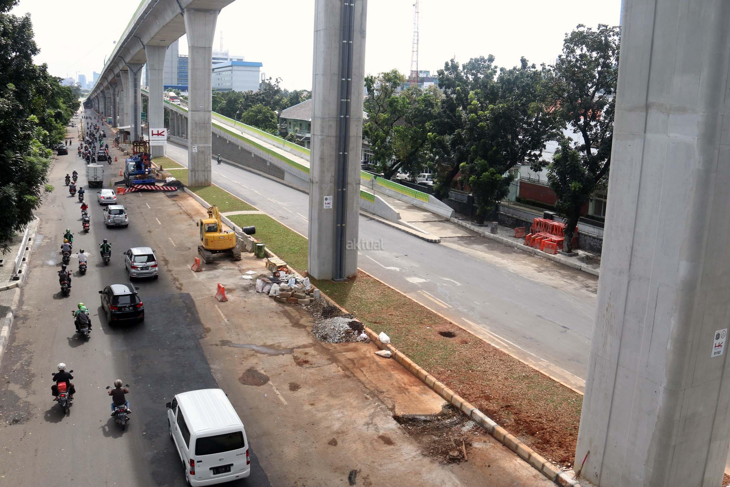 Suasana pengerjaan proyek pembangunan jalan layang Transjakarta Koridor XIII (Ciledug-Tendean), di Jakarta, Jumat (3/2/2017). Dinas Bina Marga DKI Jakarta menyatakan pembangunan jalan layang Transjakarta Koridor XIII (Ciledug-Tendean) sudah mencapai 99,5 persen, sedangkan 0,5persen masih terkendala ada pembebasan lahan. Direncanakan pada akhir Februari 2017 semua sudah dapat mencapai 100 persen, sehingga Transjakarta bisa mempergunakannya untuk melayani masyarakat. AKTUAL/Munzir