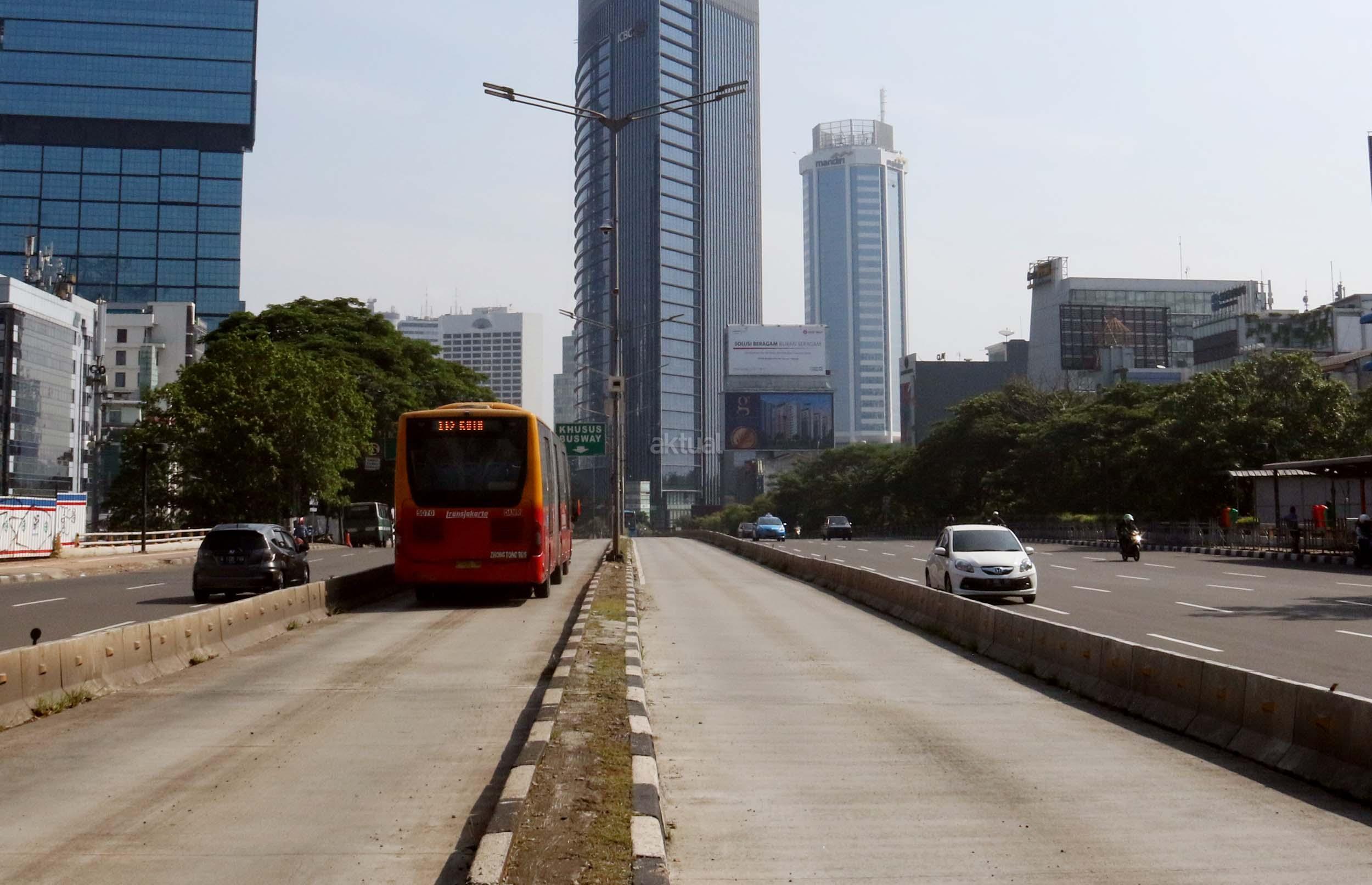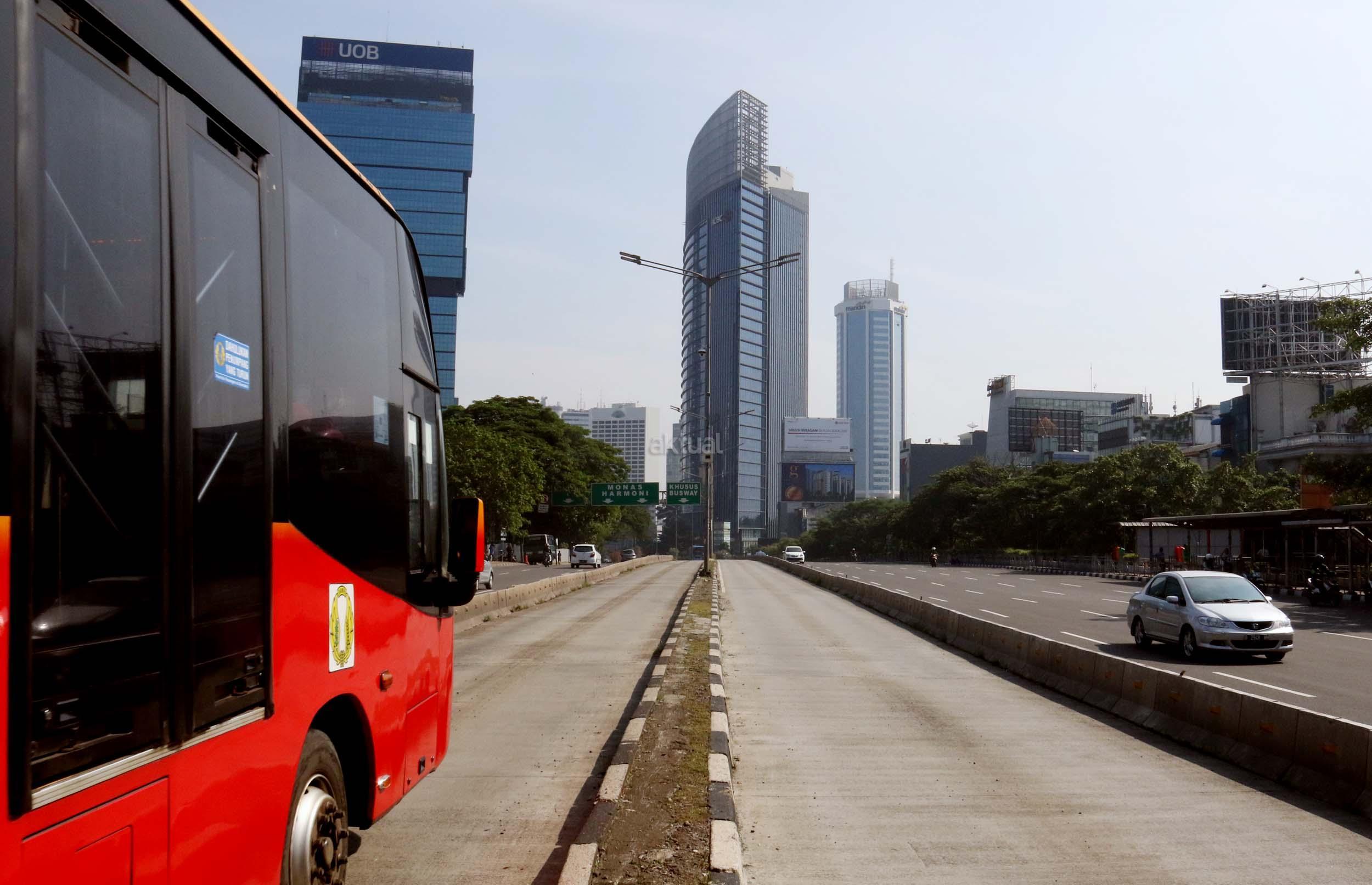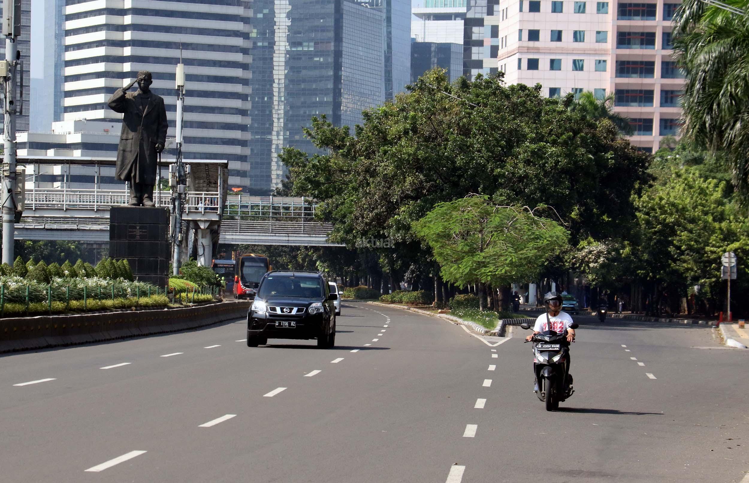 Sejumlah kendaraan melintas di jalan yang lengang di kawasan Jenderal Sudirman, Jakarta, Selasa (28/3/2017). Lengangnya jalan di Jakarta karena bertepatan dengan libur Hari Raya Nyepi Tahun Saka 1939. AKTUAL/Munzir