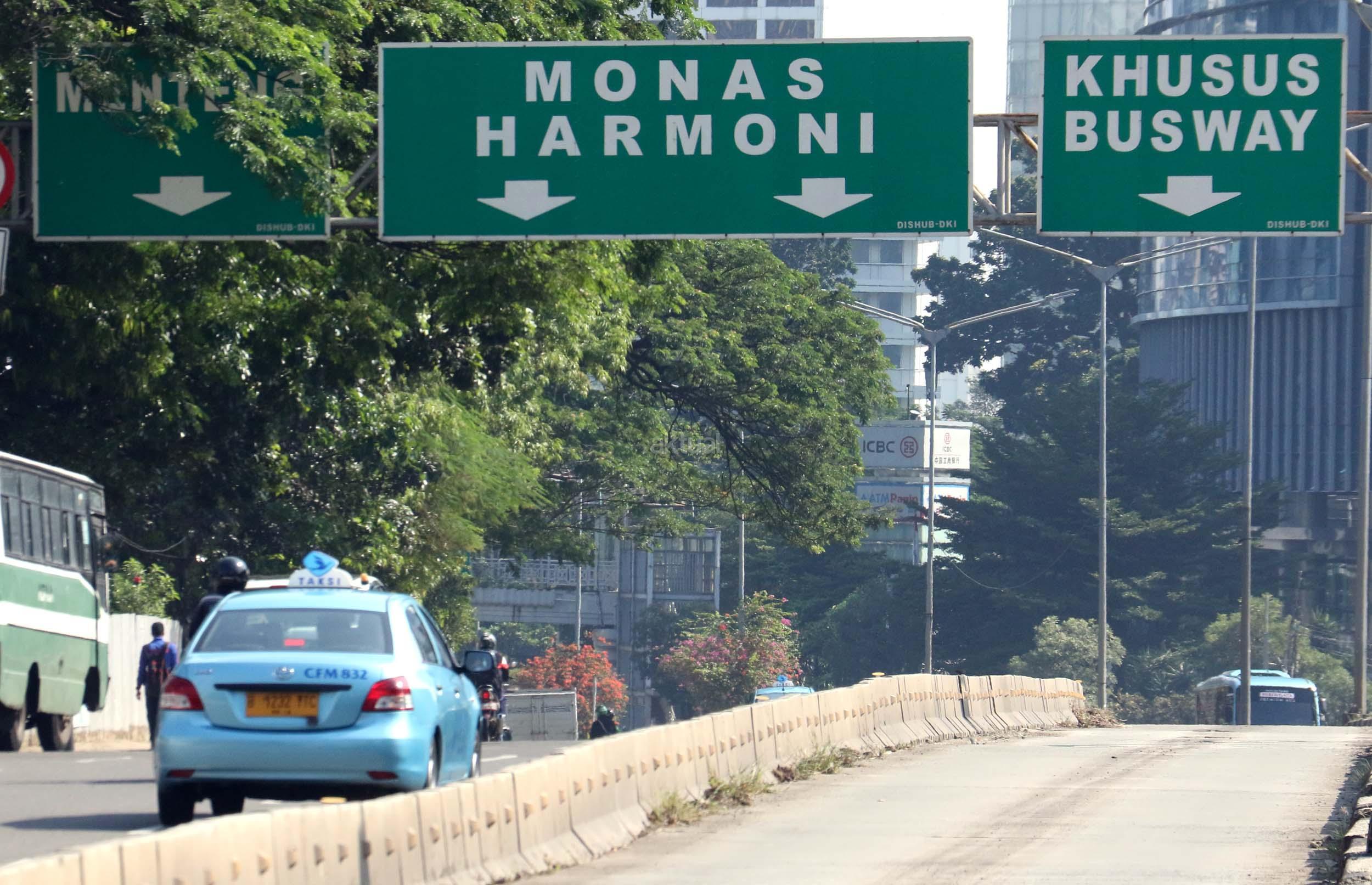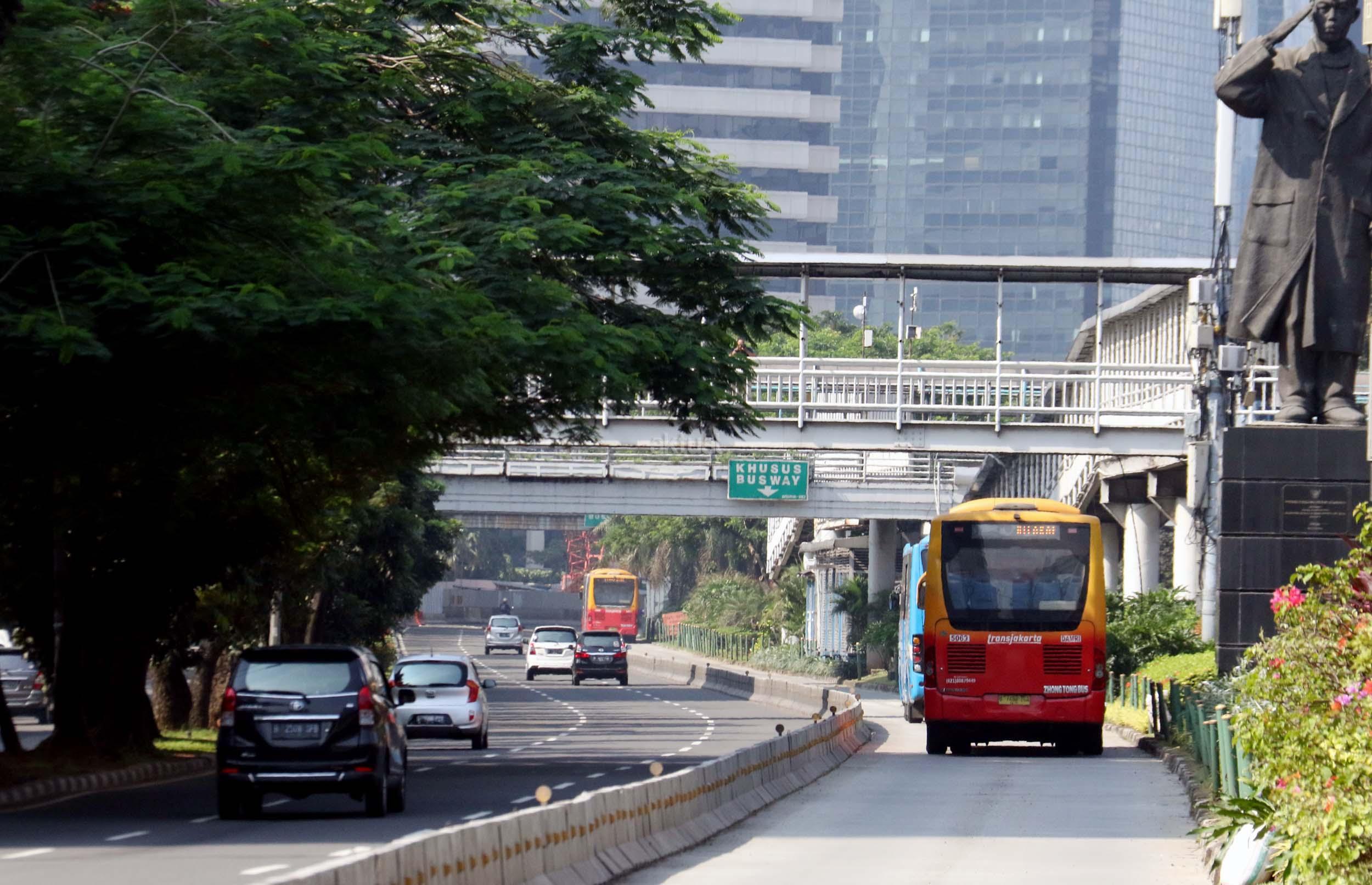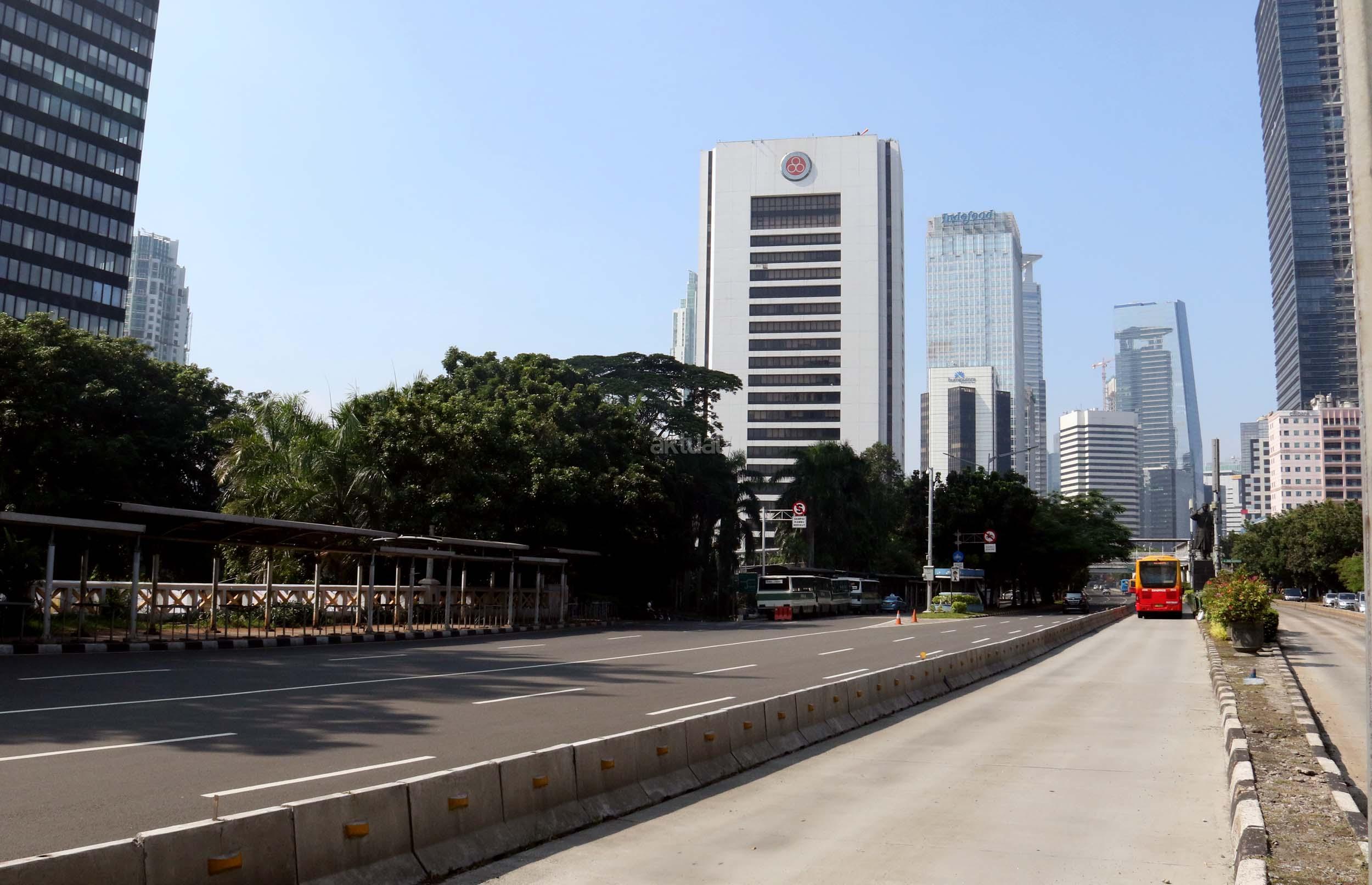Sejumlah kendaraan melintas di jalan yang lengang di kawasan Jenderal Sudirman, Jakarta, Selasa (28/3/2017). Lengangnya jalan di Jakarta karena bertepatan dengan libur Hari Raya Nyepi Tahun Saka 1939. AKTUAL/Munzir