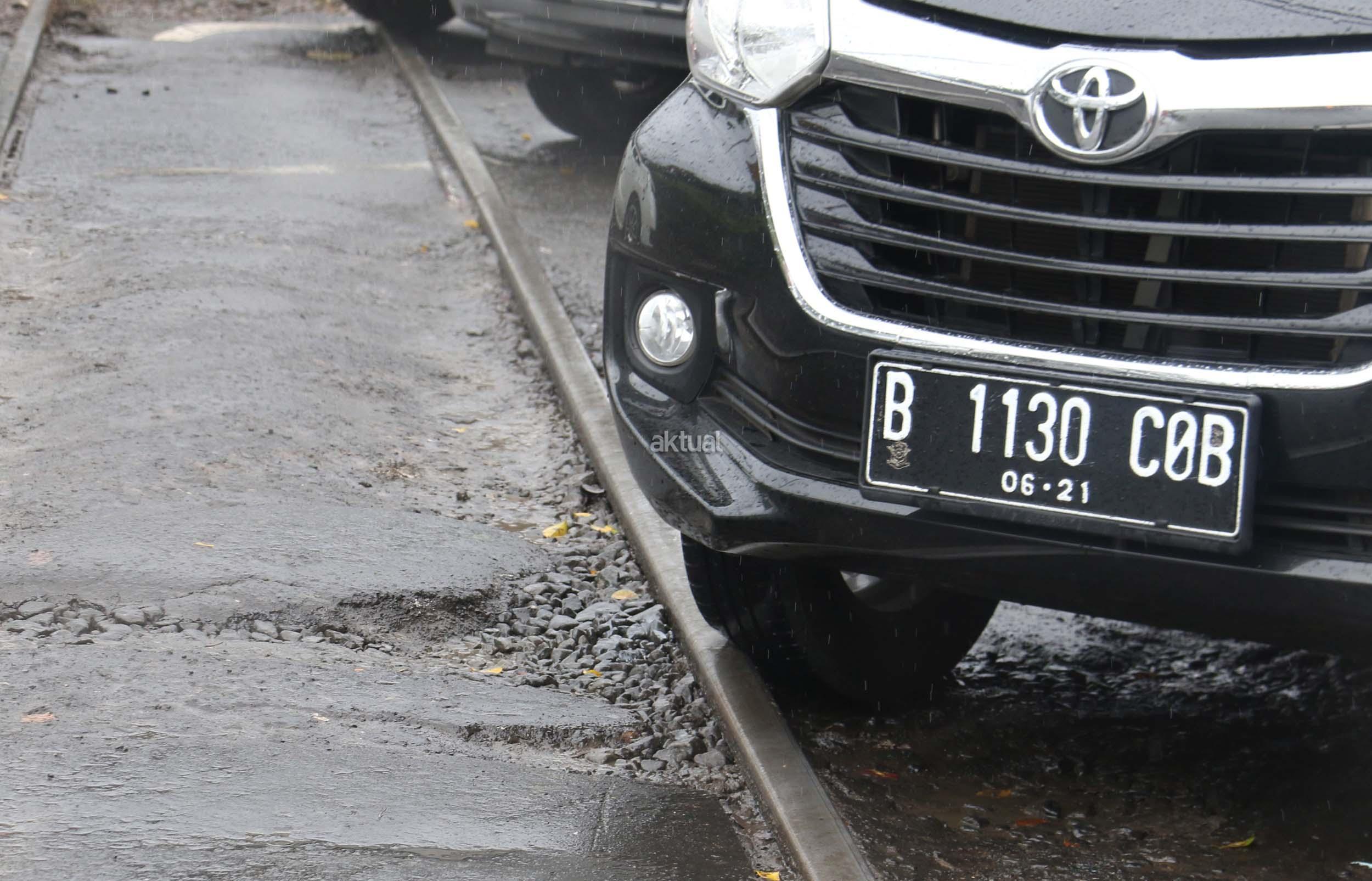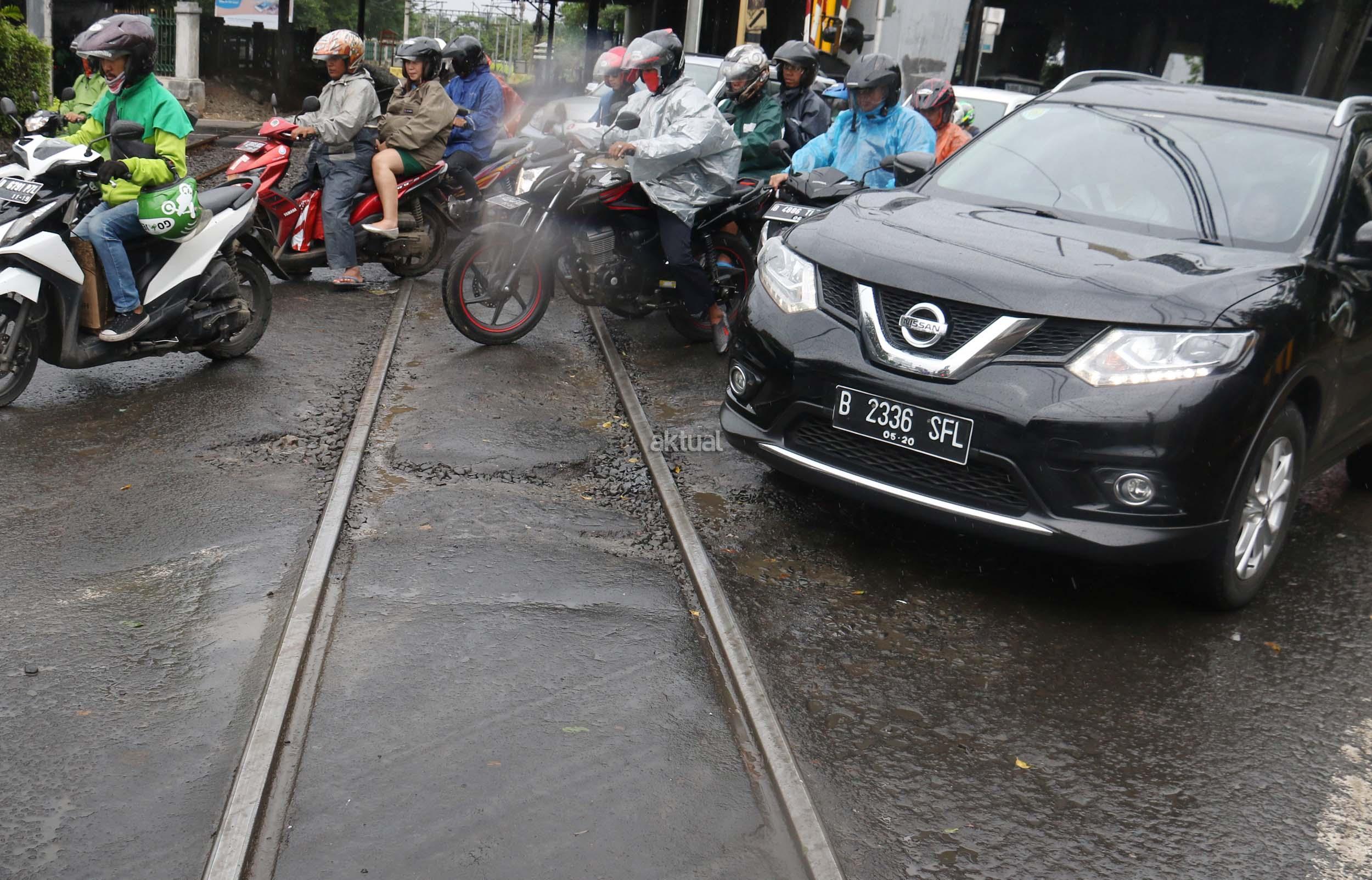 Jalan Perlintasan Kereta Api Rusak, Bahayakan Pengendara Bermotor