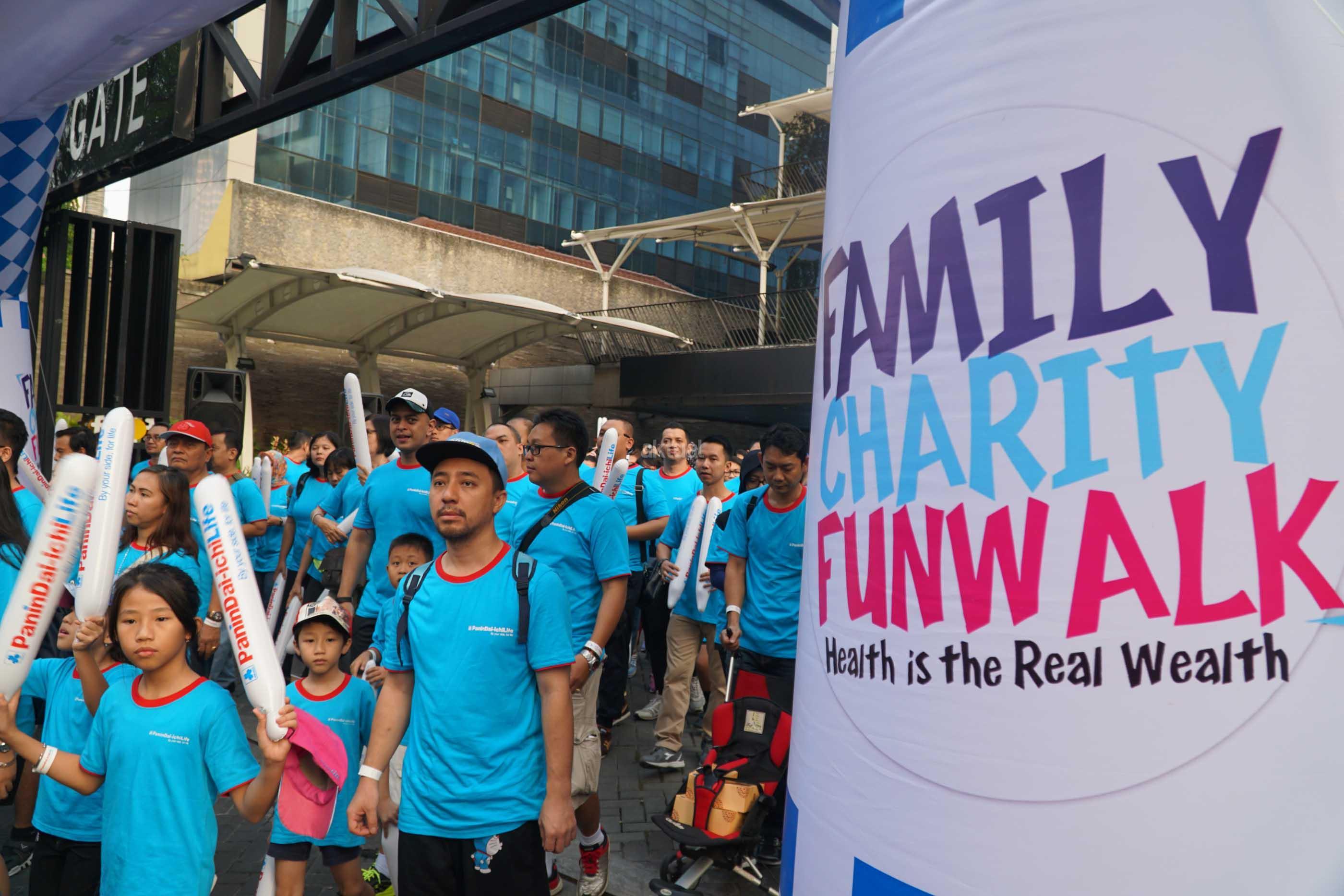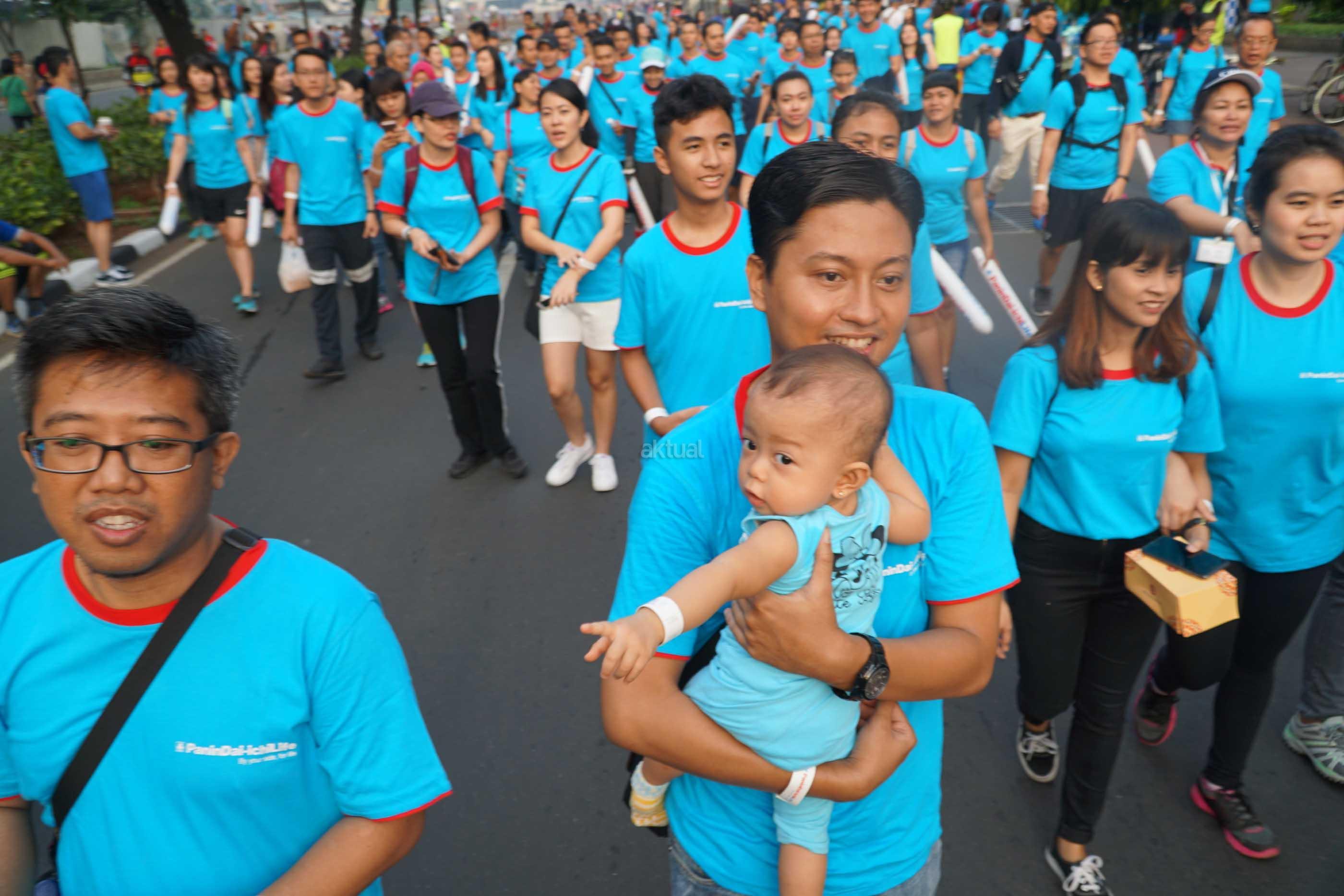 Familiy Charity Fun Walk, di Jakarta, Minggu (23/7). Kegiatan dalam rangka HUT ke-43 Panin Dai-ichi Life itu diikuti kurang lebih 1000 peserta yang terdiri atas karyawan, keluarga dan mitra bisnis yang mendonasikan Rp10 ribu untuk dana sosial dari setiap kilometer rute yang ditempuh. AKTUAL/Eko S Hilman