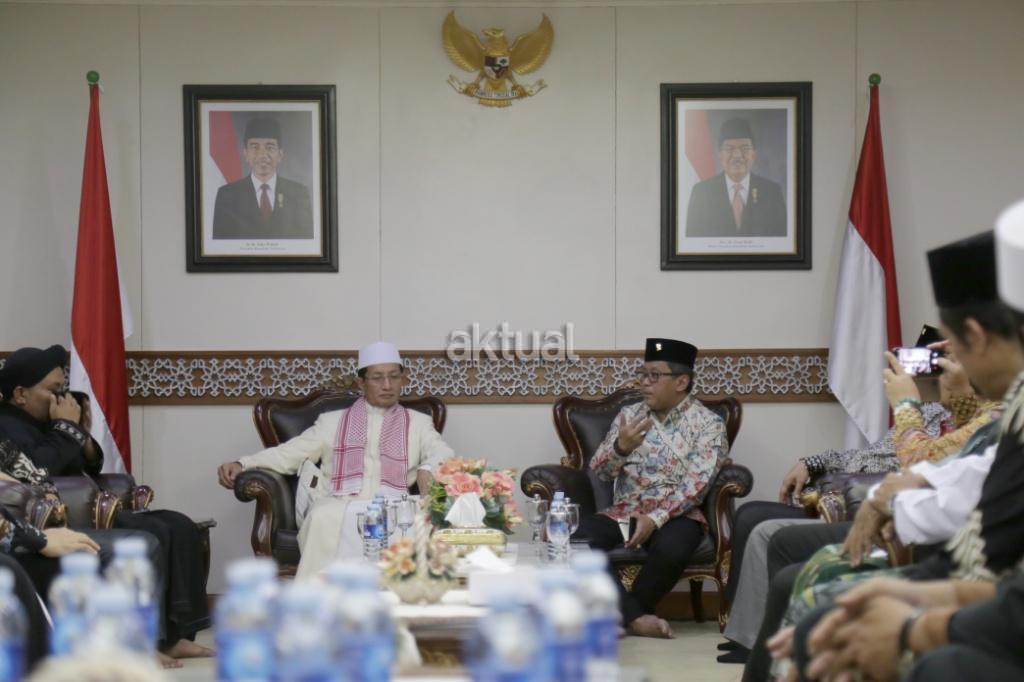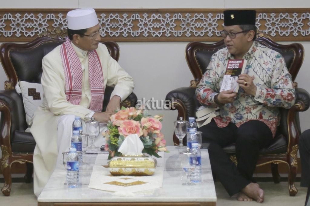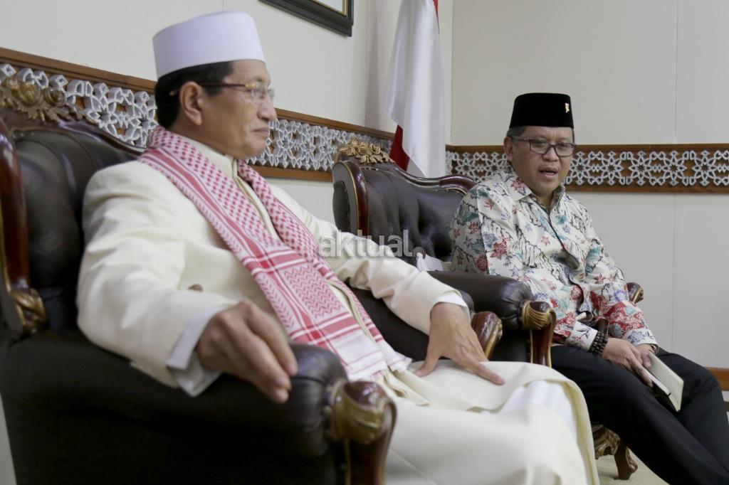 Sekjen DPP PDIP Hasto Kristiyanto bersama pengurus PDI dan pengurus Baitul Muslimin Indonesia (Bamusi) bersilatirahmi dengan Imam Besar Masjid Istiqlal Nasaruddin Umar di Masjid Istiqlal, Jakarta, Rabu (11/4/18). Selain Silaturahmi, kedatangan PDIP untuk merajut kebangsaan, komponen bangsa antara politik PDIP dengan kelompok umat Islam. AKTUAL/Tino Oktaviano