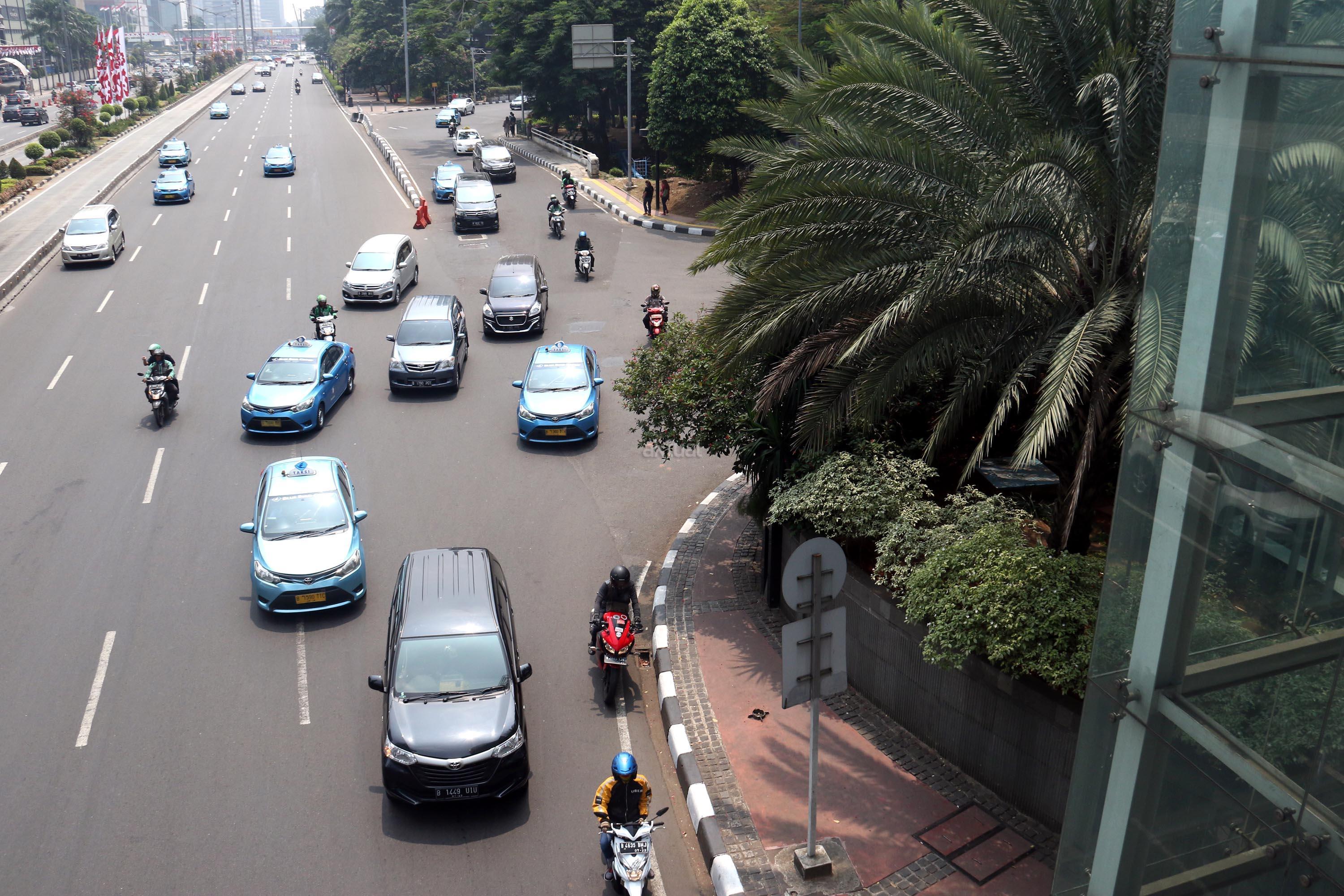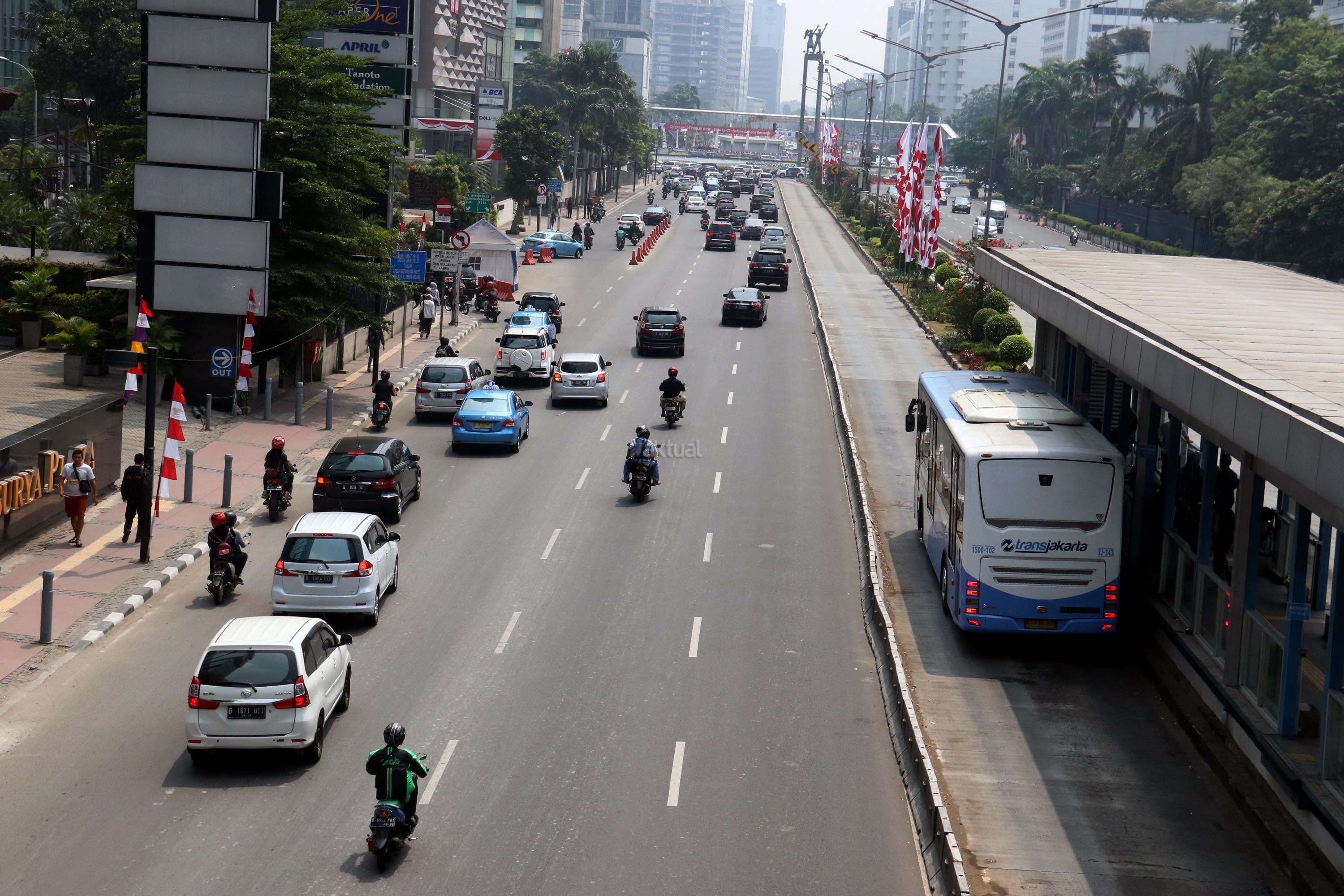 Dinas Perhubungan DKI Jakarta berencana memperpanjang jalur larangan sepeda motor dari MH Thamrin hingga Bundaran Senayan, guna mengurangi kepadatan kendaraan. AKTUAL/Munzir