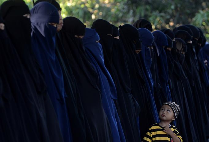 Jamaah An Nadzir melaksanaan salat Idul Fitri di Kampung Mawang, Samata, Kabupaten Gowa, Sulawesi Selatan, Kamis (16/7). Jemaah An Nadzir merayakan Idul Fitri lebih awal berdasarkan pengamatan tanda-tanda alam seperti air pasang laut dan pergerakan bulan dengan menetapkan 1 Syawal 1436 H jatuh pada Kamis (16/7). ANTARA FOTO/Sahrul Manda Tikupadang/Rei/ama/15.