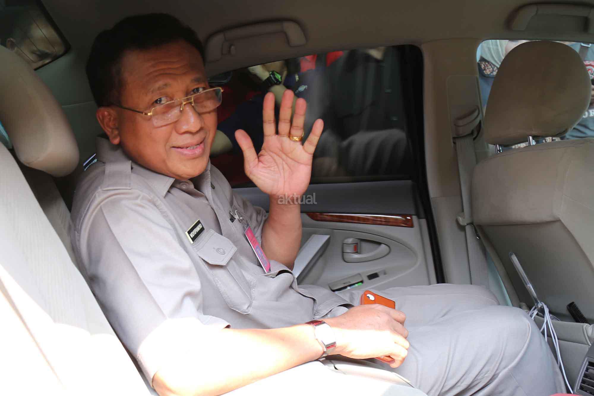 Jaksa Muda Pidana Khusus (Jampidsus) Kejagung, Widyo Pramono melambaikan tangan usai mengikuti sidang pututusan Praperadilan PT Victoria Securities Indonesia (PT VSI) di Pengadilan Negeri Jakarta Selatan, Selasa (29/9). Widyo Pramono tampak hadir mengenakan baju safari, didampingi Direktur Penyidikan Jampidsus, Maruli Hutagalung. Kedua penjabat Kejaksaan ini duduk pada kursi pengunjung sidang paling depan sebelah kanan dan mendengarkan putusan yang dibacakan hakim Achmad Rivai dengan seksama. AKTUAL/TINO OKTAVIANO