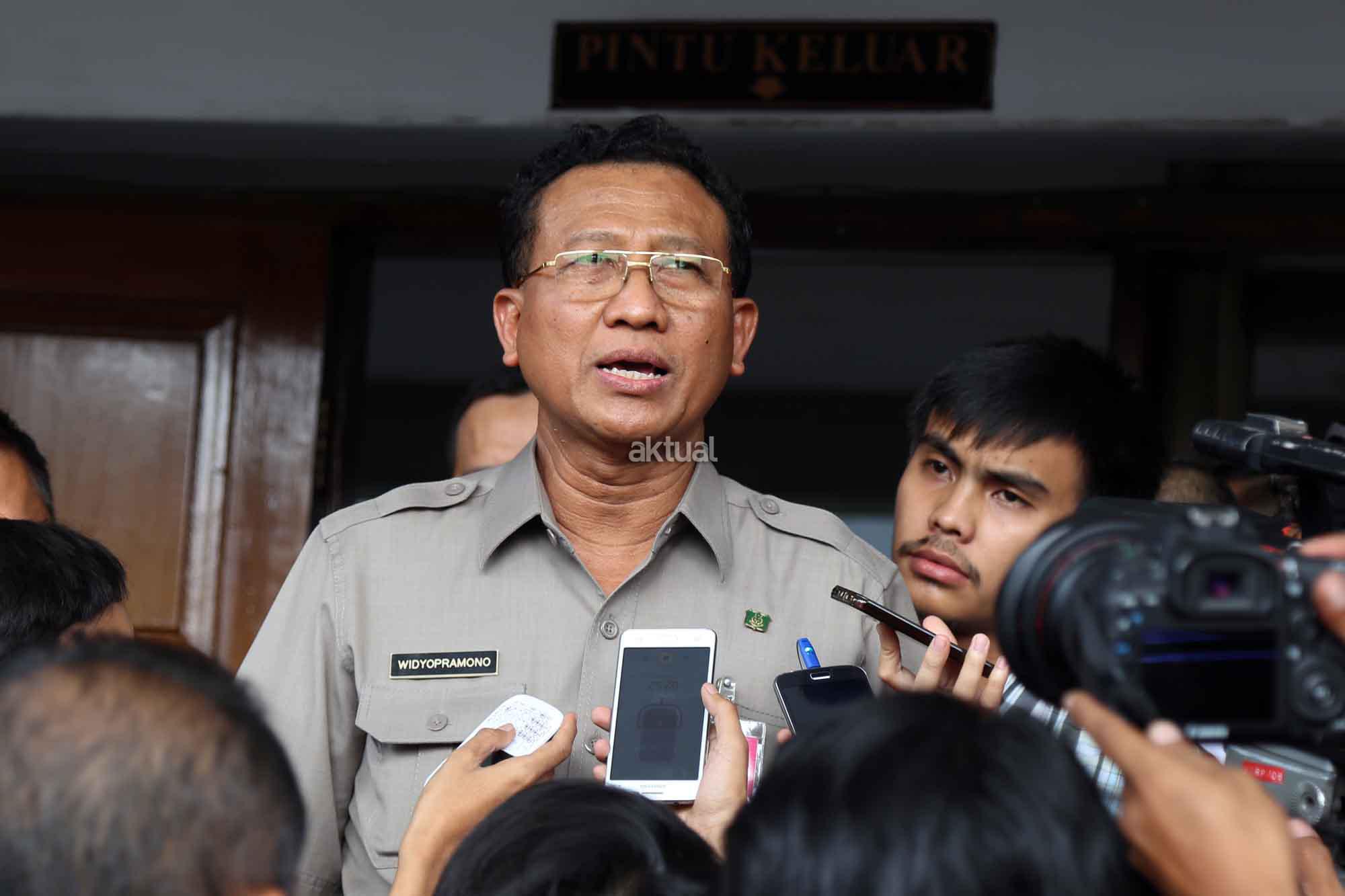 Jaksa Muda Pidana Khusus (Jampidsus) Kejagung, Widyo Pramono ditanya oleh wartawan usai mengikuti sidang pututusan Praperadilan PT Victoria Securities Indonesia (PT VSI) di Pengadilan Negeri Jakarta Selatan, Selasa (29/9). Widyo Pramono tampak hadir mengenakan baju safari, didampingi Direktur Penyidikan Jampidsus, Maruli Hutagalung. Kedua penjabat Kejaksaan ini duduk pada kursi pengunjung sidang paling depan sebelah kanan dan mendengarkan putusan yang dibacakan hakim Achmad Rivai dengan seksama. AKTUAL/TINO OKTAVIANO