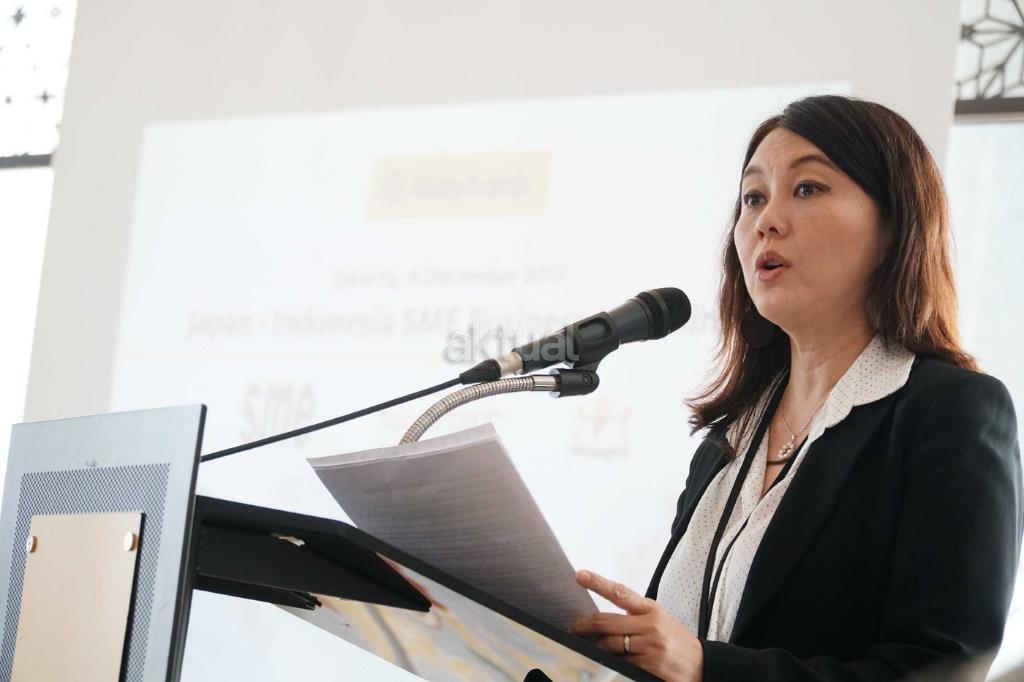 Head, International Business Strategic Maybank Indonesia, Nancy Novita Helen saat memberikan sambutan di tengah Seminar ‘Japan-Indonesia SME Business Matching’ di Kantor pusat Maybank, Jakarta, Senin (4/12). Maybank Indonesia secara aktif mendukung pertumbuhan ekonomi Indonesia, khususnya dalam penanaman modal asing dengan mempertemukan perusahaan lokal dengan perusahaan luar negeri. Seminar menjadi forum diskusi antara para pengusaha usaha kecil menengah (UKM) Jepang yang tergabung dalam Small & Medium Enterprises of Japan (SMEJ) dengan perusahaan Jepang di Indonesia, baik sebagai pembeli (buyer) maupun pemasok (supplier) dan perusahaan Indonesia sebagai pemasok. Dalam mendukung kemitraan tersebut, Maybank Indonesia menyediakan rangkaian produk dan layanan perbankan kepada para pengusaha UKM Jepang di Indonesia, mulai dari segmen perbankan ritel hingga perbankan global, termasuk account services dan remitansi (remmitance), pembiayaan perdagangan (trade finance), valuta asing (foreign exchange), serta produk treasury lainnya melalui Maybank Japan Desk. AKTUAL/Eko S Hilman