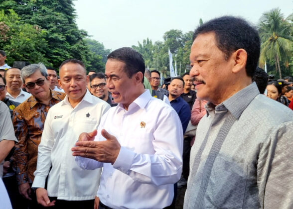 Menteri Pertanian (Mentan) yang juga Kepala Badan Pangan Nasional (Bapanas) Andi Amran Sulaiman mengibarkan bendera saat pelepasan bantuan kemanusiaan untuk Aceh, Sumatera Utara dan Sumatera Barat, yang disaksikan Direktur JAPFA Rachmat Indrajaya, yang dilakukan di Jakarta, Kamis, (4/11/2025). PT Japfa Comfeed Indonesia Tbk (JAPFA) melalui program JAPFA Peduli yang berkoordinasi dengan Kementerian Pertanian Republik Indonesia (Kementan RI) dan Badan Pangan Nasional (Bapanas) mendistribusikan makanan siap makan dan air mineral untuk warga terdampak banjir di Aceh, Sumatera Utara dan Sumatera Barat. Bantuan makanan siap konsumsi dan air mineral senilai total Rp 3 miliar ini kami harapkan dapat meringankan beban masyarakat yang sedang menghadapi situasi darurat. JAPFA akan terus berupaya hadir di tengah masyarakat, sebagai bagian dari tanggung jawab sosial perusahaan. Aktual/DOK JAPFA