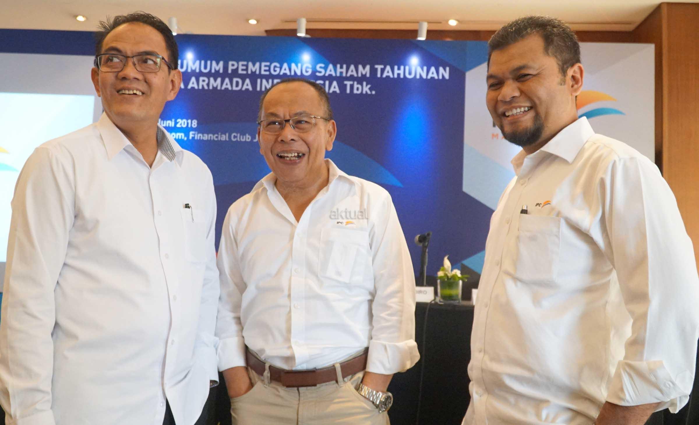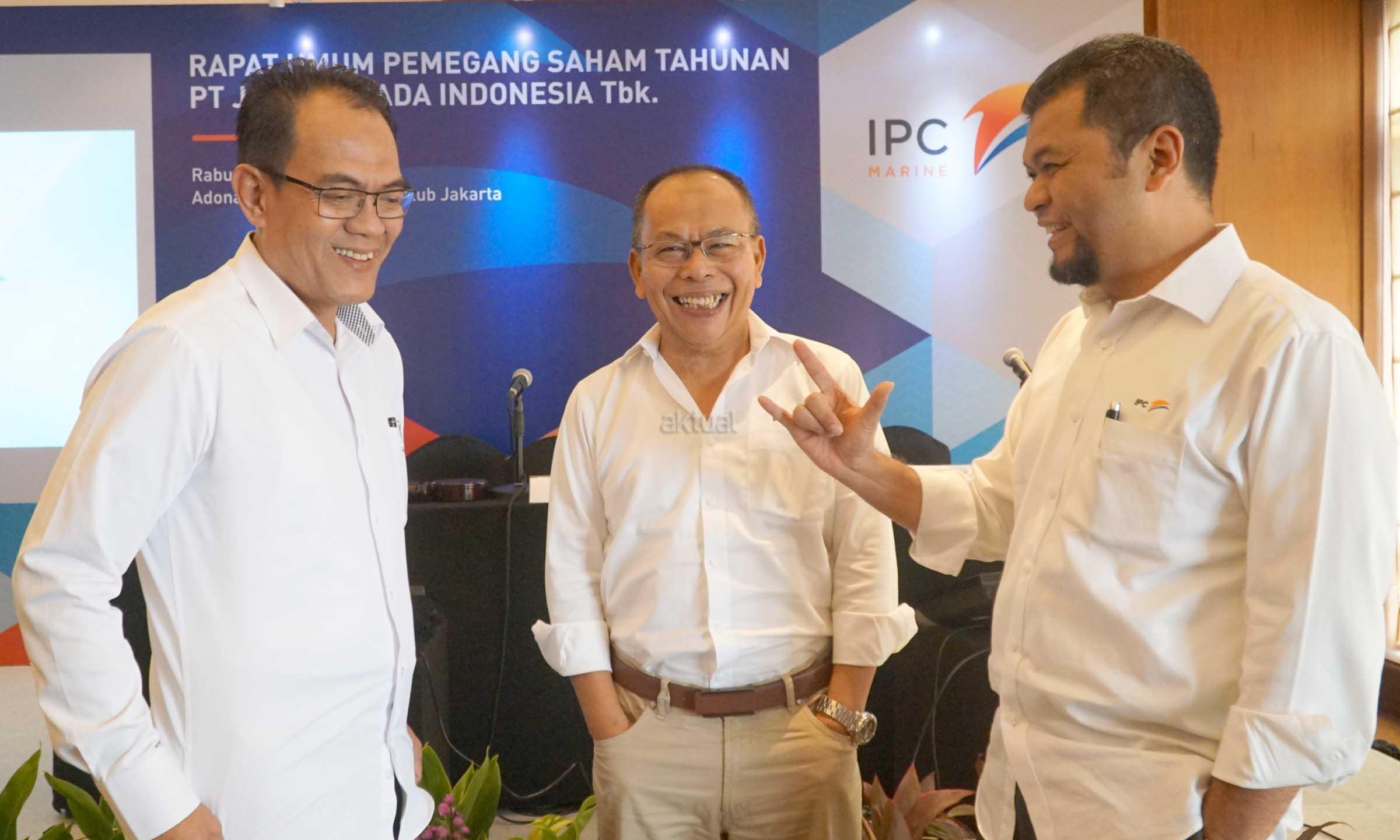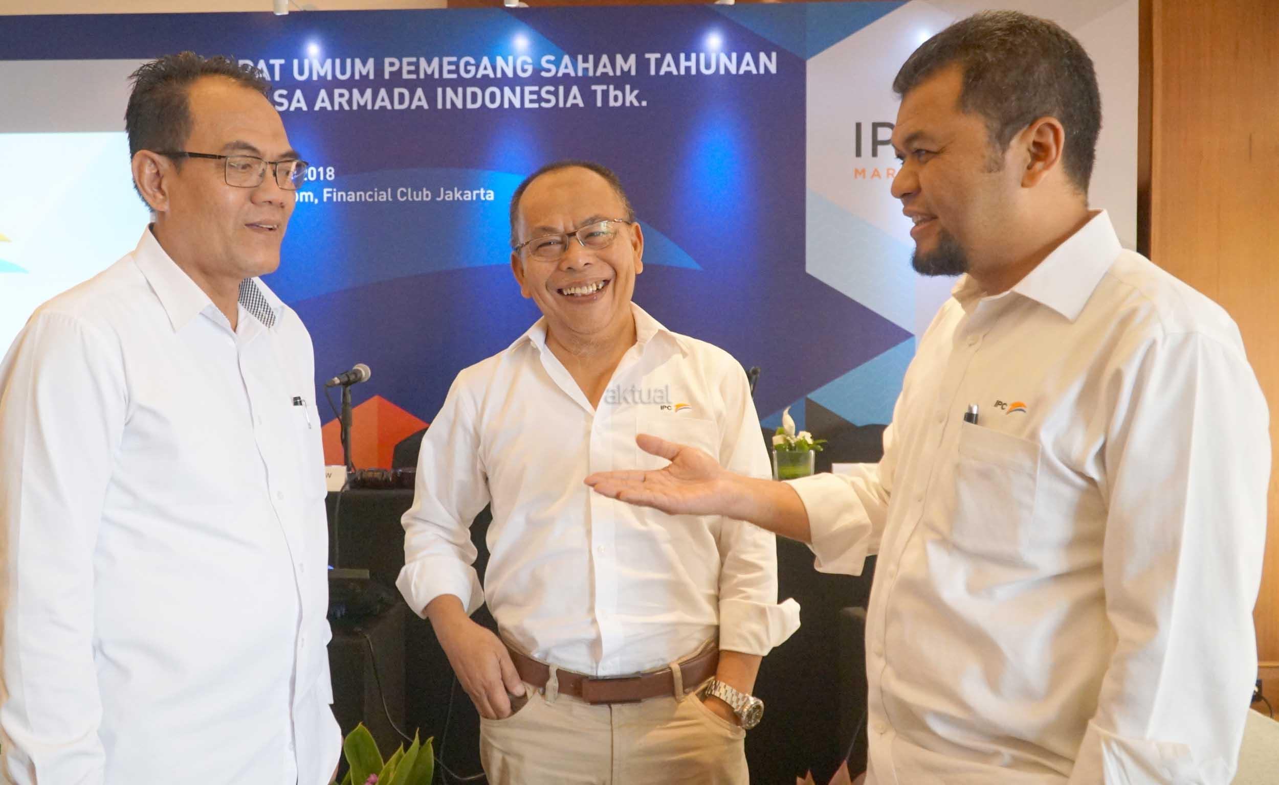 Direktur operasi & Komersial PT Jasa Armada Indonesia Tbk, Supardi (kiri) berbincang dengan