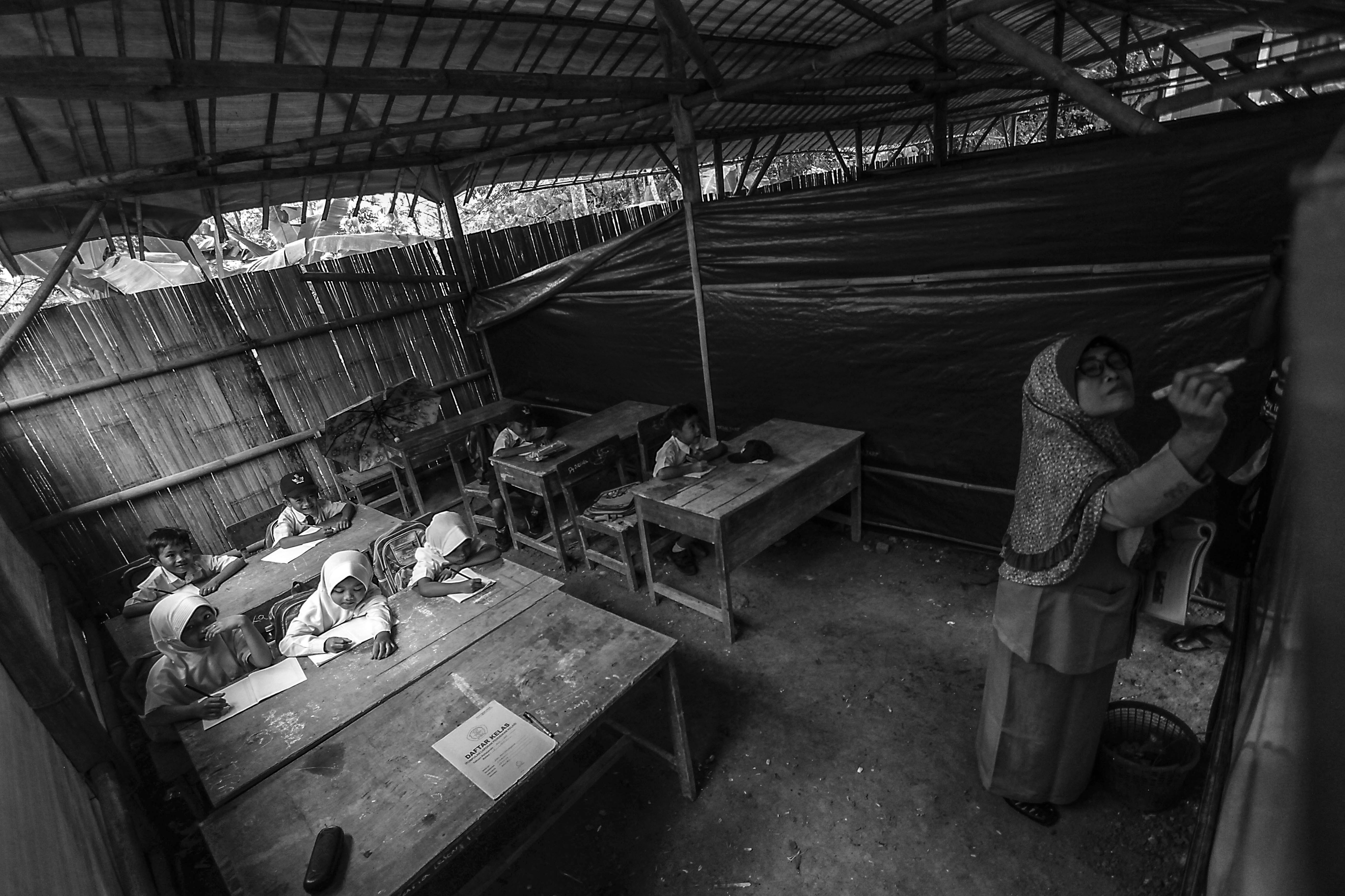 Foto berjudul ‘Sekolahku Istanaku’ menjadi juara 3 kategori jurnalis karya Eko Siswono Toyudho. Tenda yang dijadikan tempat kegiatan belajar mengajar di Sekolah Dasar Negeri Bantar Panjang, Kampung Dahu, Cikeusal, Serang, Banten, Indonesia pada 22 Januari 2018. Bangunan sekolah yang hambir ambruk menyebabkan sejumlah 62 pelajar dari kelas 1 hingga kelas 6 belajar pada gubug darurat dan tenda yang dibuat swadaya masyarakat tersebut dialami sejak bulan September 2017 lalu, tanpa ada fasilitas kamar mandi, perpustakaan, dan lain-lain. Saat ini, belum adanya tindakan nyata pemerintah daerah. Istimewa