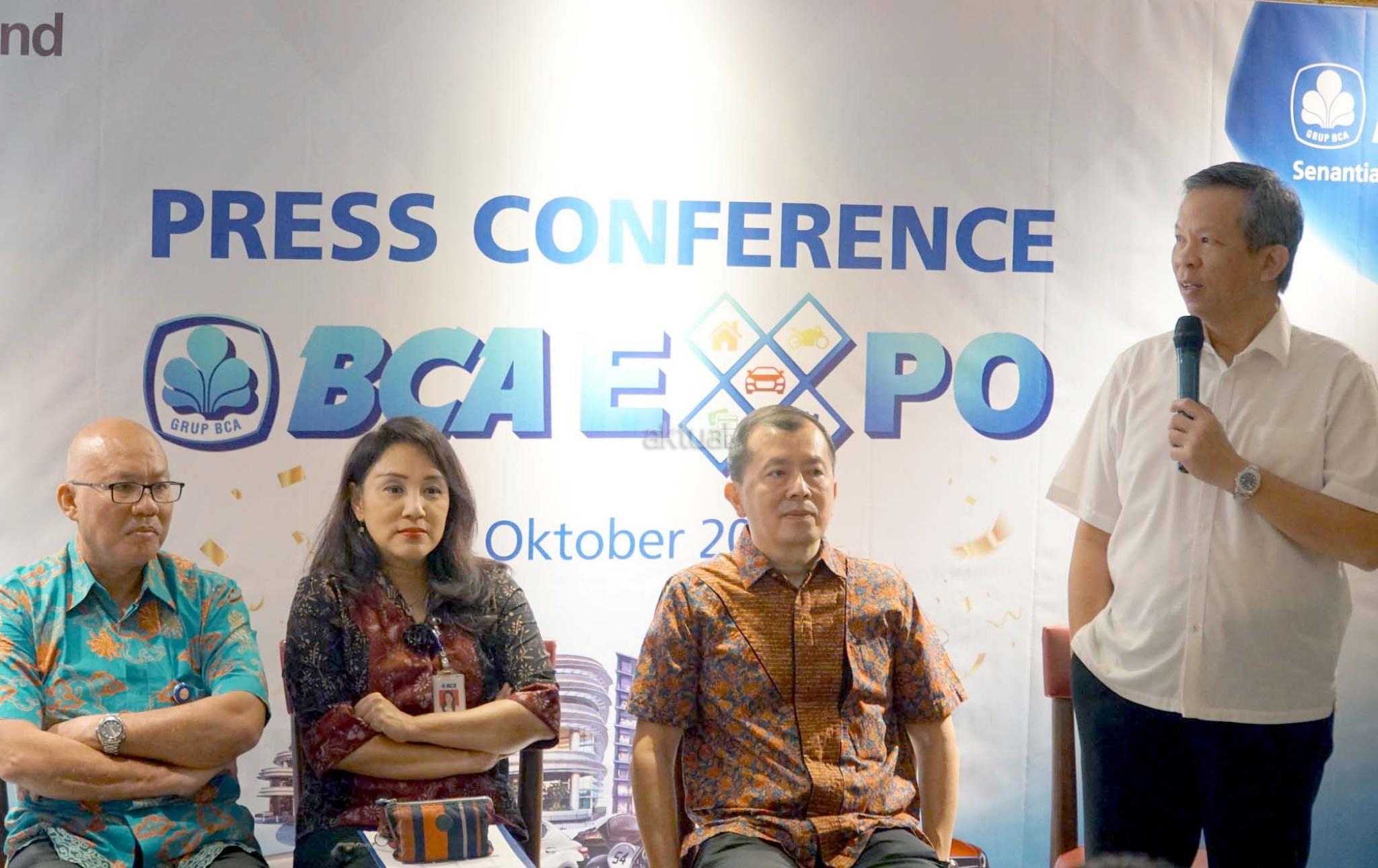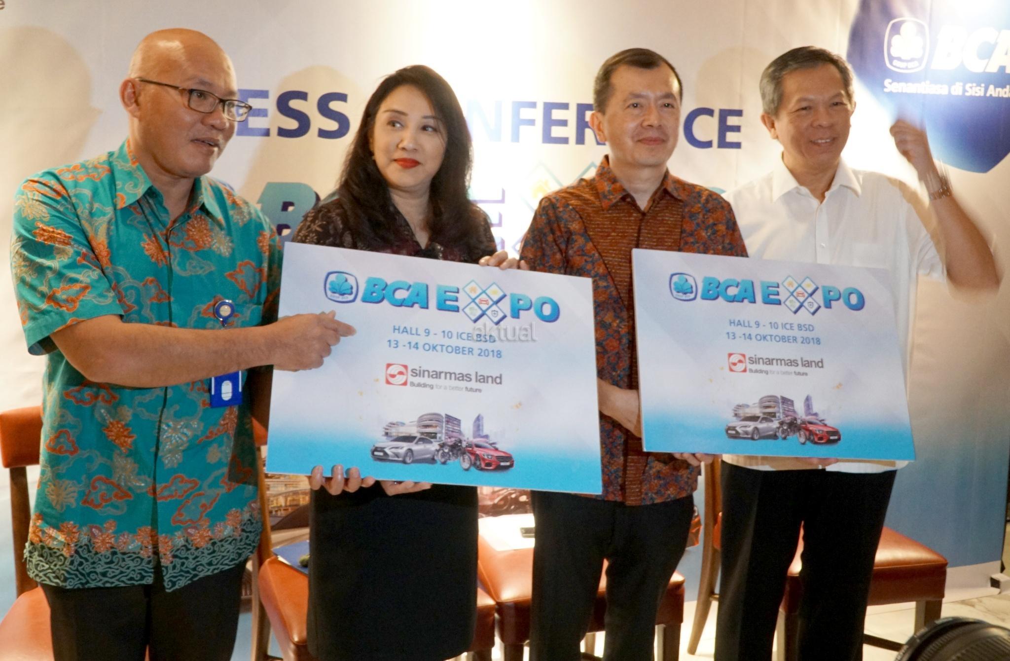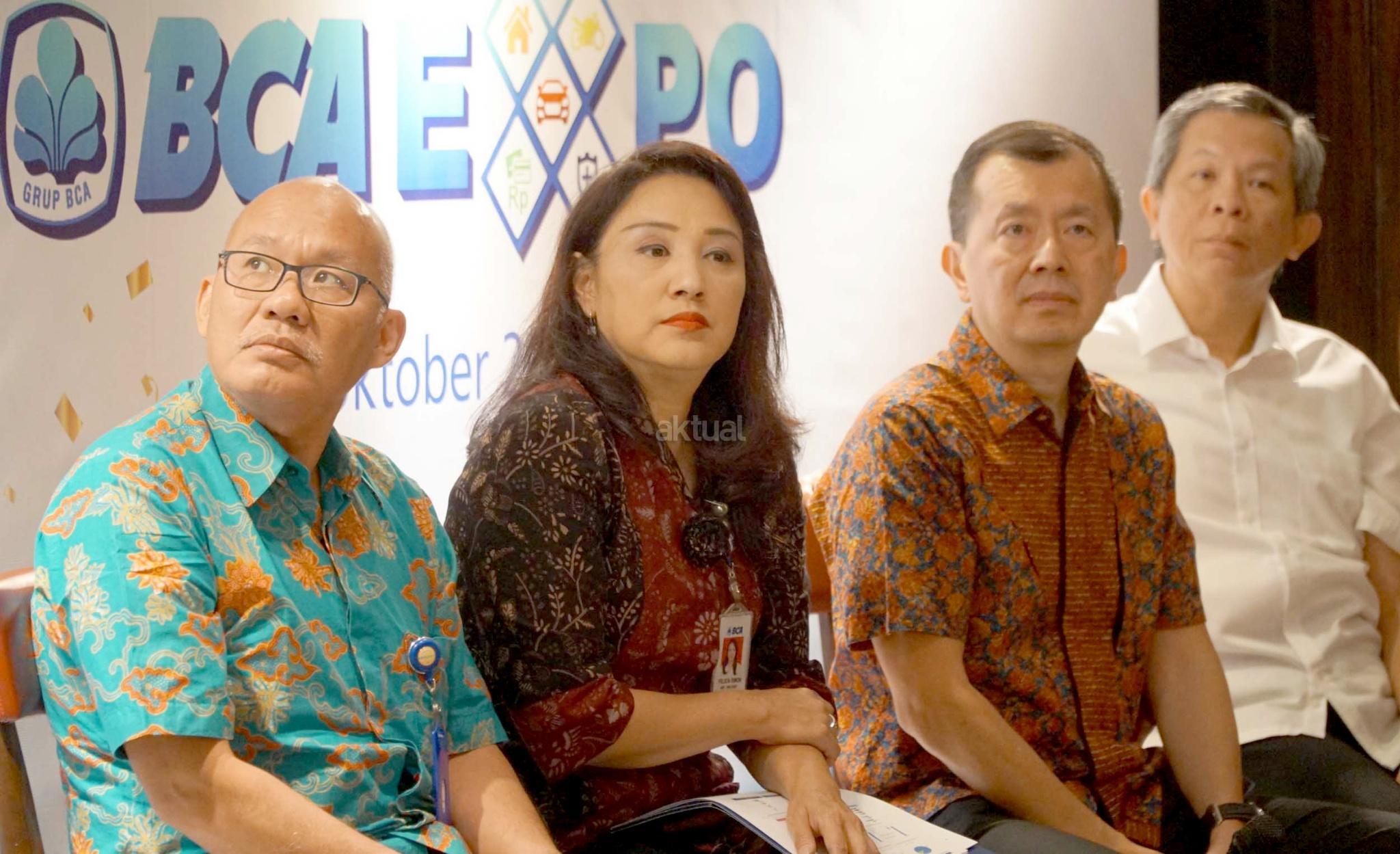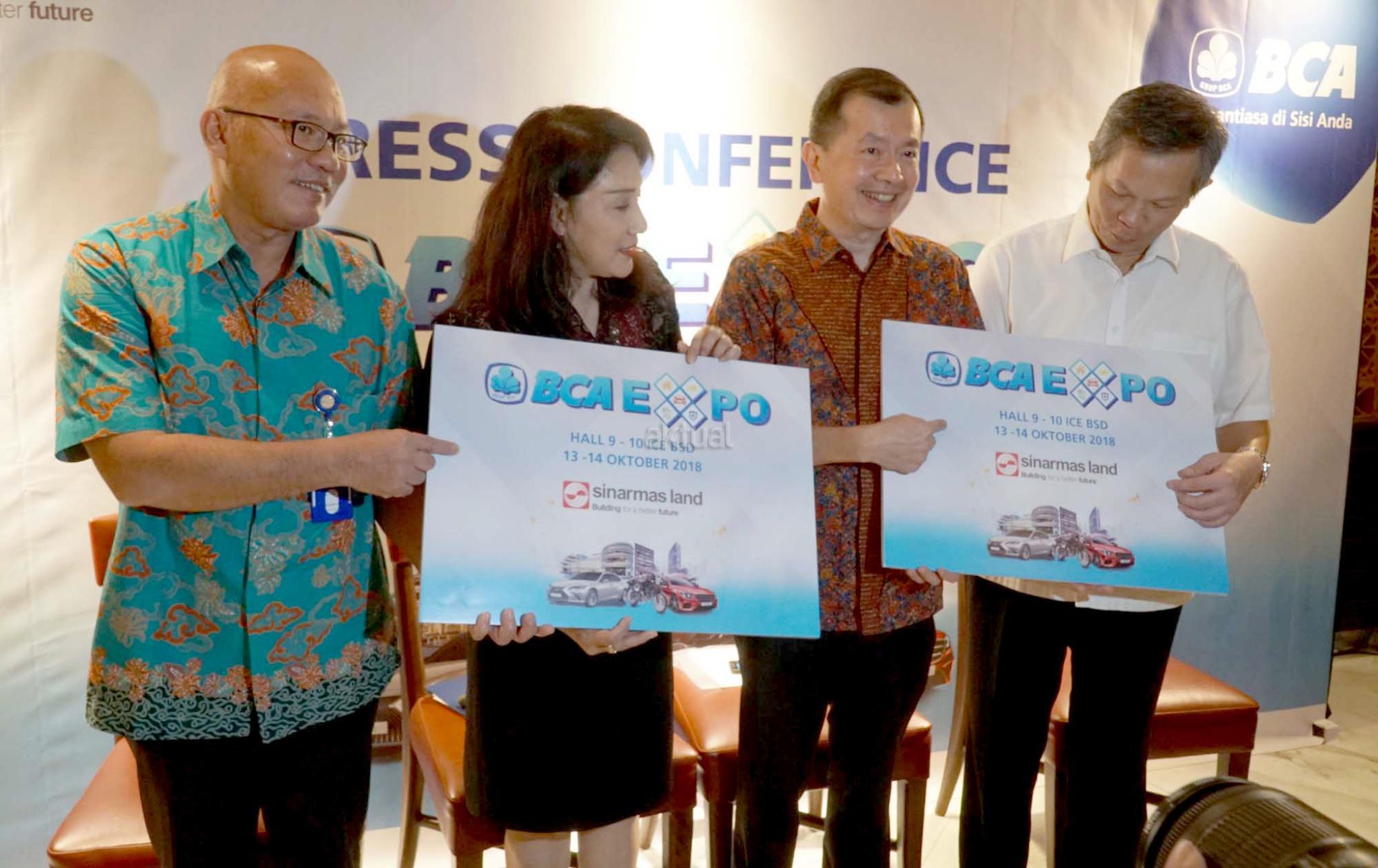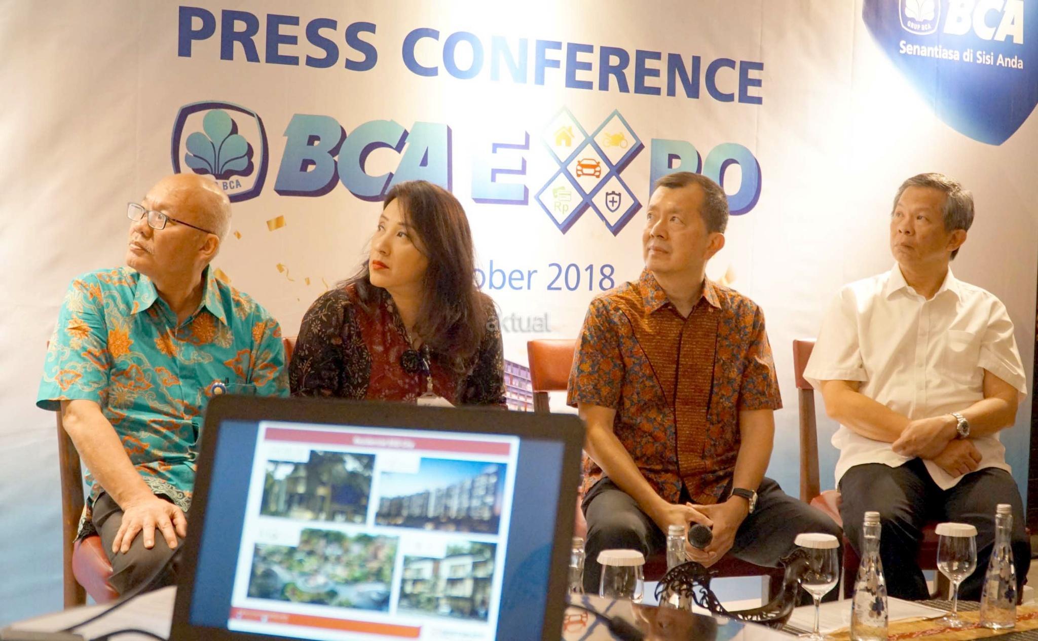 Executive Vice President Consumer Credit Business BCA Felicia M. Simon (kedua kiri), Direktur BCA Finance Petrus Karim (kanan), Direktur CS Finance Senjaya Komala (kiri) dan CEO Residential Sinarmas Land Herry Hendarta (kedua kanan) berbincang usai pelaksanaan Press Conference BCA Expo 2018 di Jakarta, Kamis (11/10). Jelang perhelatan BCA Expo 2018 pada 13 Oktober - 14 Oktober 2018 mendatang, BCA memberikan update mengenai beragam promo pameran yang menghadirkan sekitar 22 merek mobil, 9 merek sepeda motor, dan developer. Selain itu, BCA Expo 2018 juga akan menawarkan produk andalan dari beberapa Grup BCA. AKTUAL/Eko S Hilman