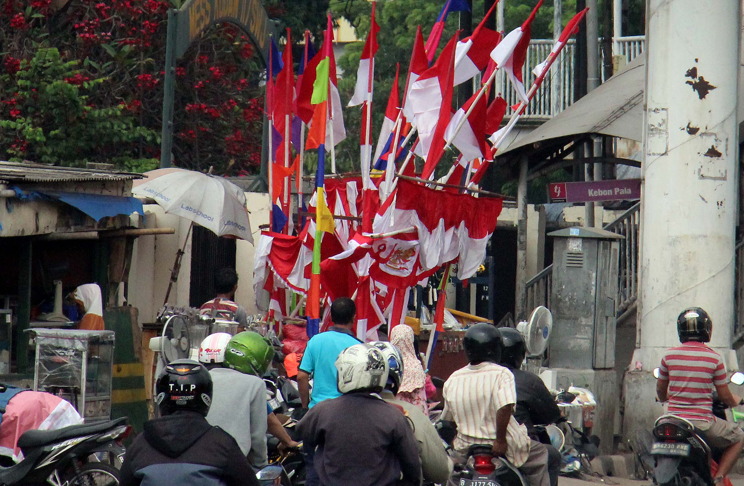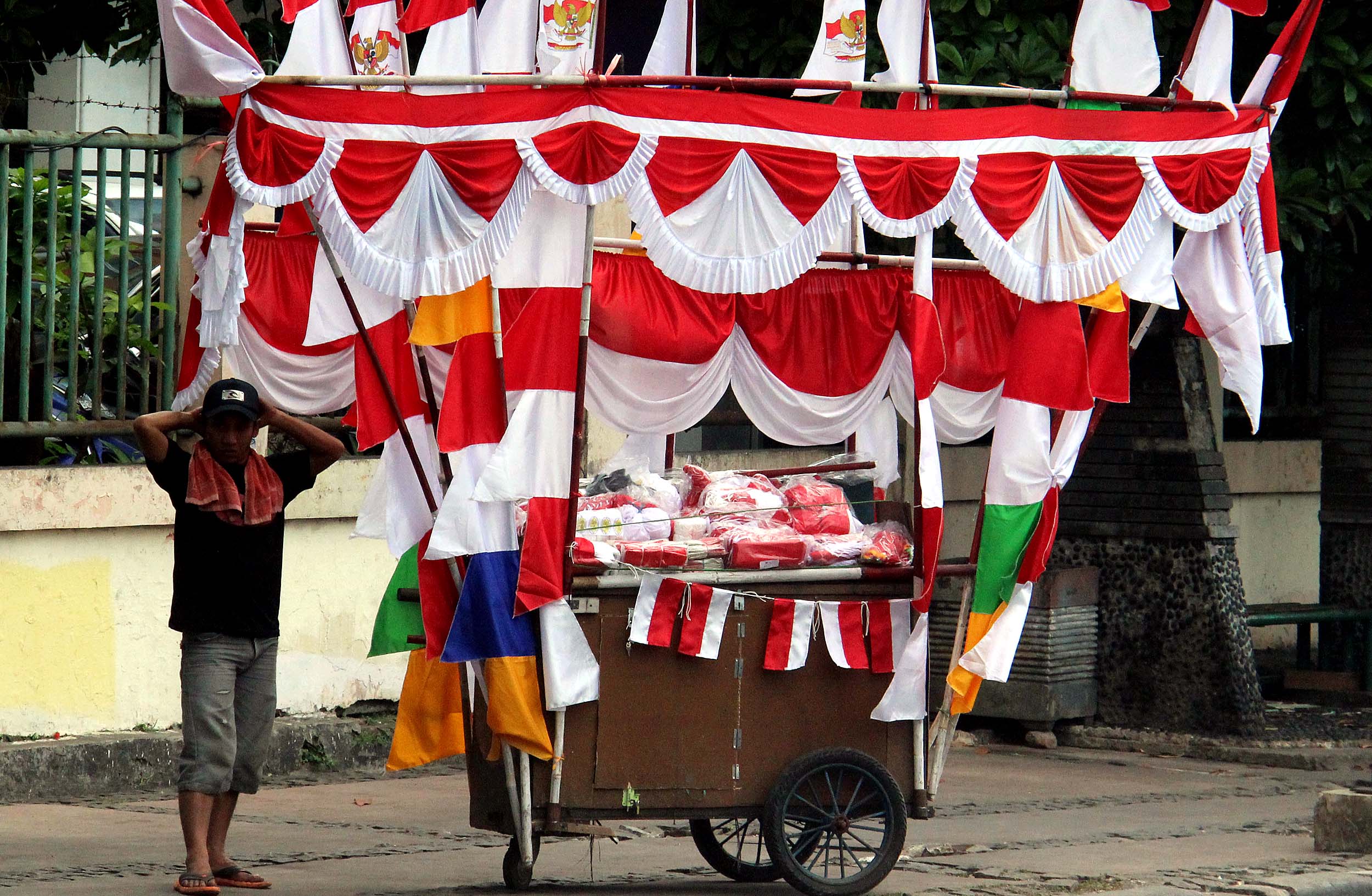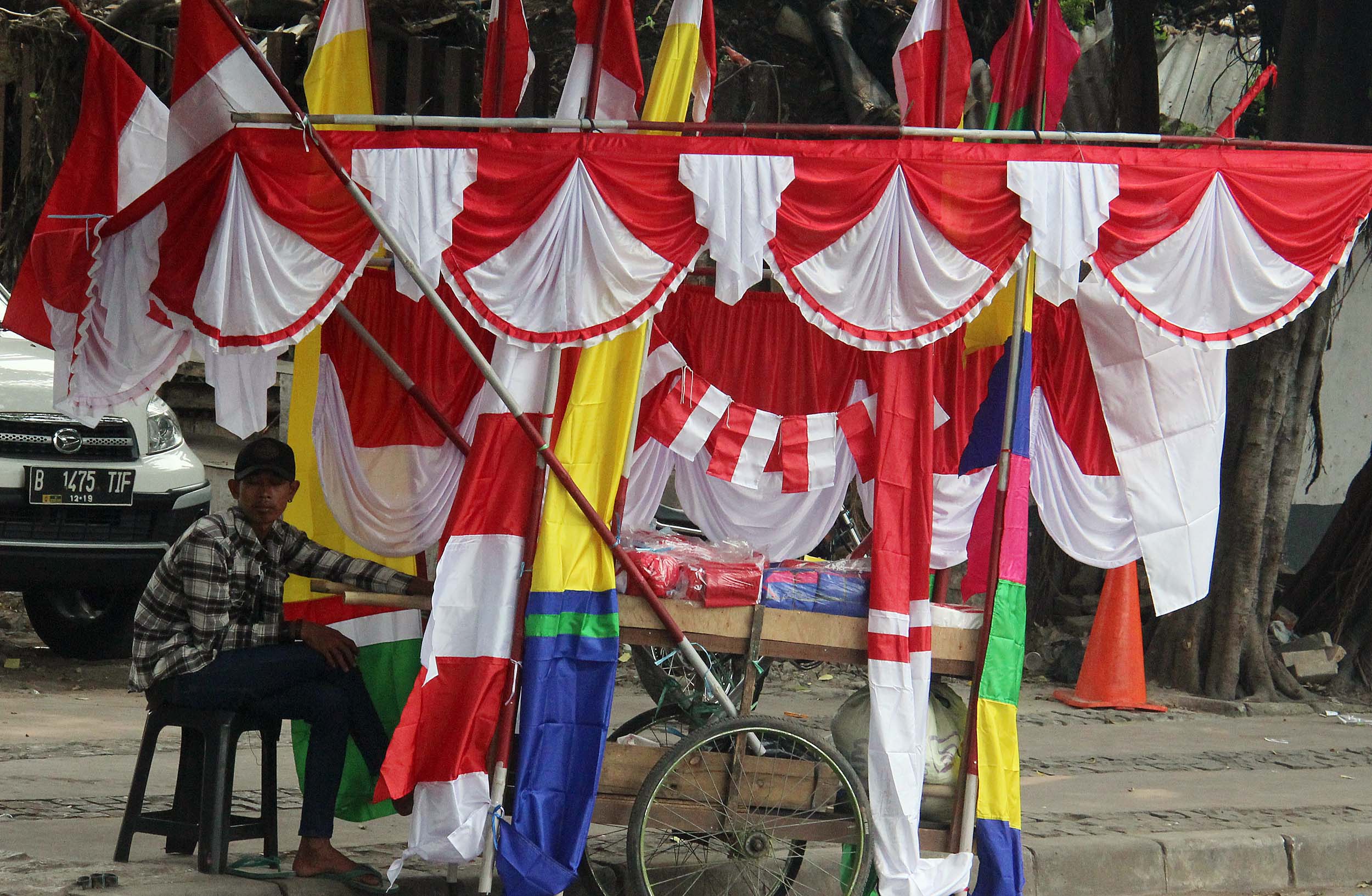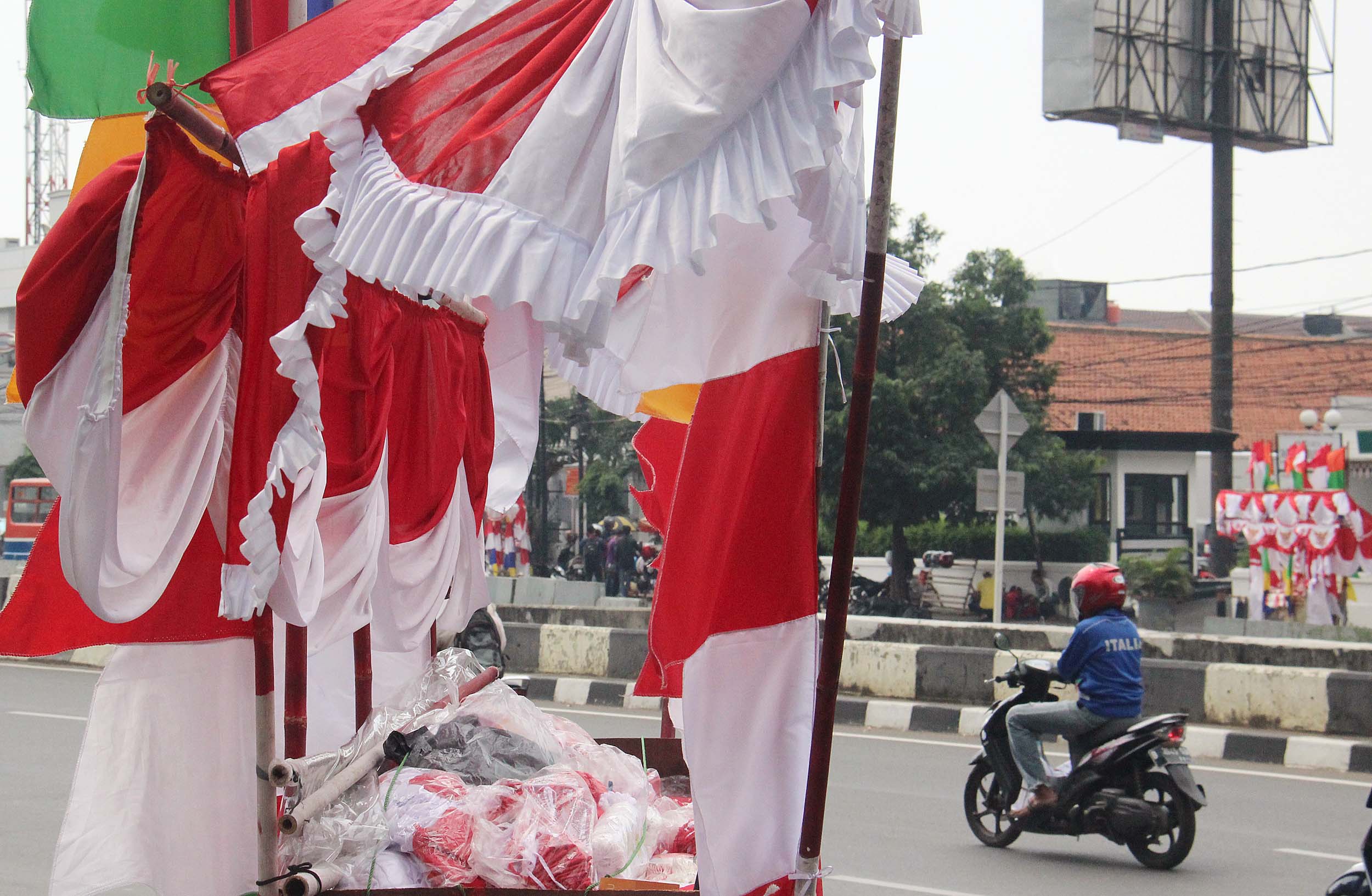 Sepanjang jalan Matraman Raya, Jakarta di hiasi oleh bendera bendera dagangan mereka. Harga bendera pun beragam, mulai dari 5.000 - 200.000 rupiah tergantung ukura