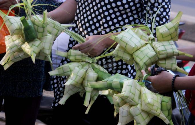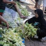 Jelang Hari Raya Idul Adha 1437 H Permintaan Daun Ketupat Meningkat dengan harga penjualan 1 ikat (Isi 10 daun ketupat) seharga sepuluh ribu rupiah dan Ada cuma membali janurnya saja (daun kelapa yang masih muda) dan ada yang sudah jadi kulit ketupat.