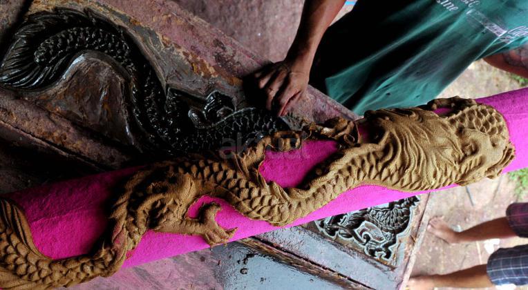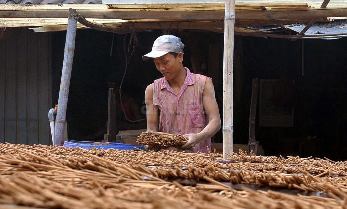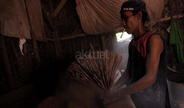 Kumpulan kayu untuk batang hio sedang dijemur, Teluk Naga, Tangerang, Jumat (22/1/2016). Menjelang perayaan tahun baru Cina (Imlek) pesanan hio melonjak drastis hingga 300 persen