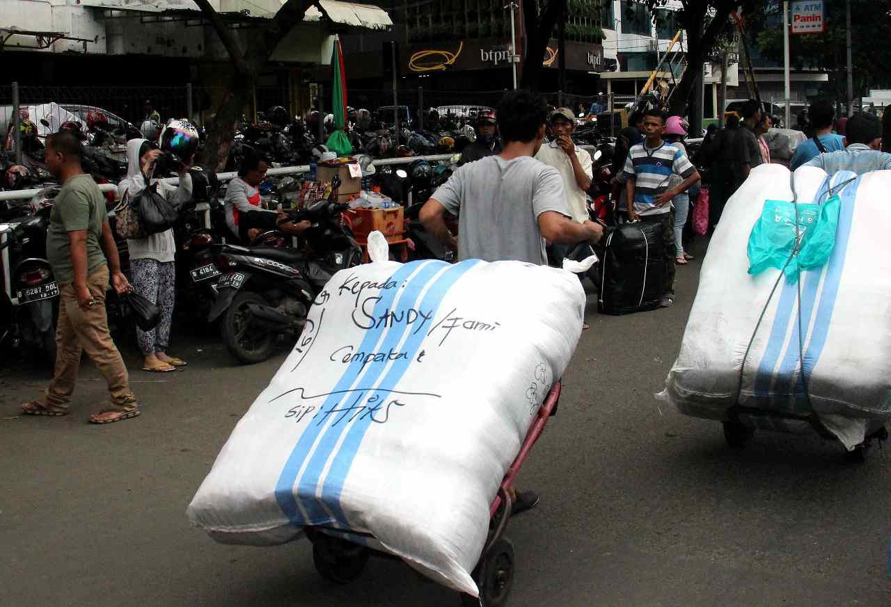 Menjelang lebaran Idul Fitri para pekerja angkut barang alias porter juga mendapatkan berkah, para porter di Pasar Tanah Abang mampu mengantongi pundi-pundi rupiah hingga Rp 200.000 per harinya.