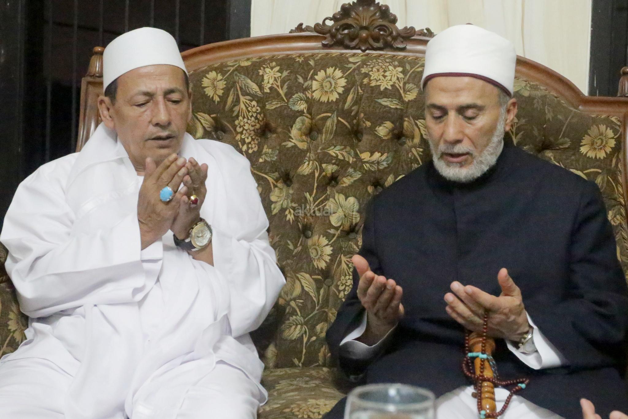 Maulana Syekh Dr. Yusri Rusydi Sayyid Jabr al-Hasani berdoa bersama Ketua Jam’iyyah Ahlith Thariqah Al-Mu’ tabarah An-Nahdliyyah (JATMAN) Maulana Al-Habib Muhammad Luthfi bin Ali bin Yahya saat bertemu sebelum Muktamar JATMAN XII di Pekalongan, Jawa Tengah, Minggu (14/1/2018) malam. Muktamar JATMAN ke XII di Pekalongan akan kedatangan puluhan ribu ulama dari nusantara dan dunia, juga akan kehadiran Presiden RI dan sejumlah Menteri kabinet kerja. Kabar kepastian hadirnya orang nomor satu di Republik Indonesia untuk membuka acara muktamar. AKTUAL/Tino Oktaviano