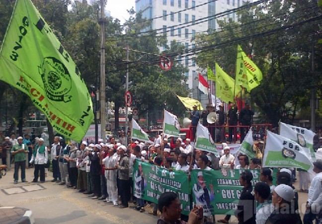 Dari pantauan Aktual.co, sudah terlihat massa ormas Forum Betawi Rempug (FBR) dan Forum Betawi Bersatu (FBB). Hingga pukul 11.00Wib tadi, orasi belum juga dimulai. Tapi arus lalu lintas di Kebun Sirih Jakarta terpantau tersendat.
