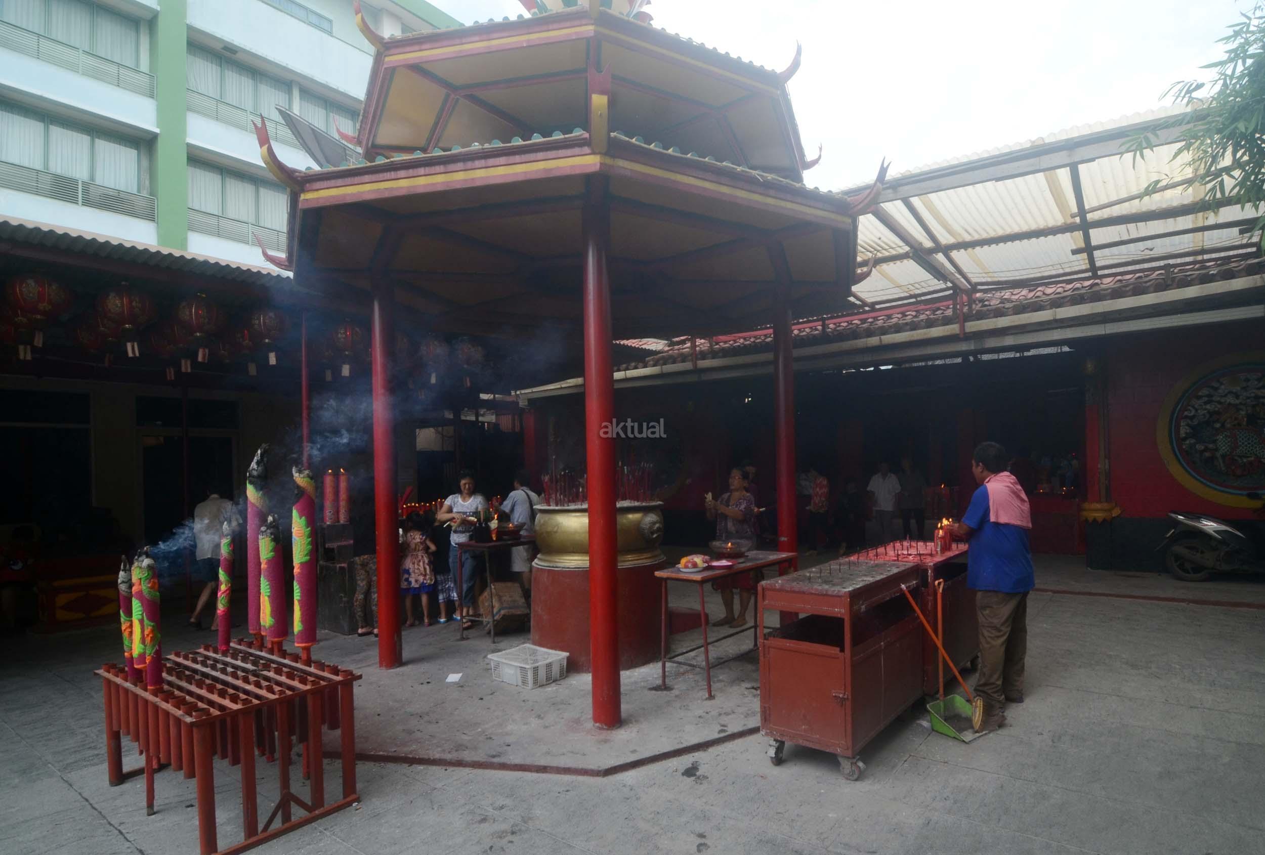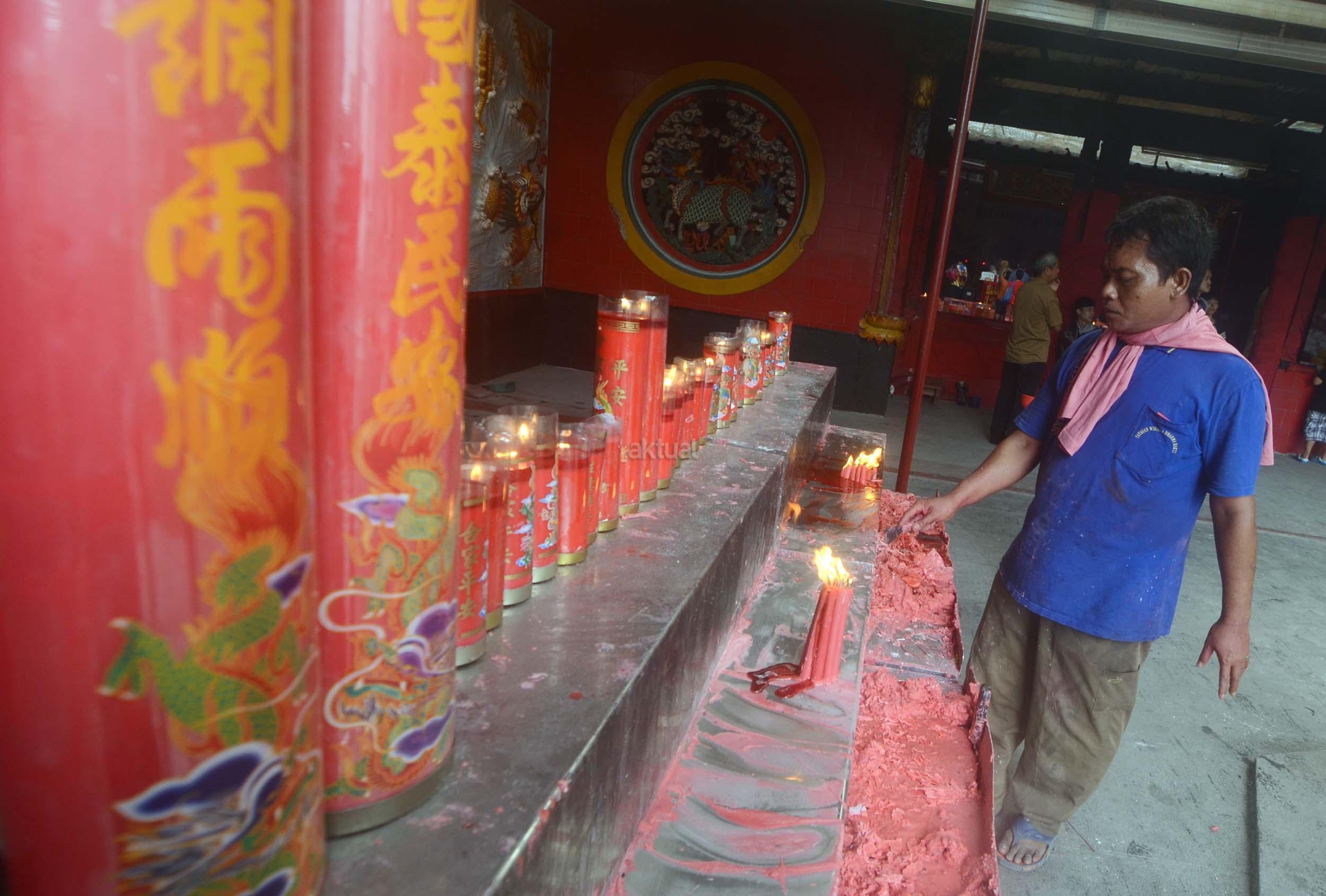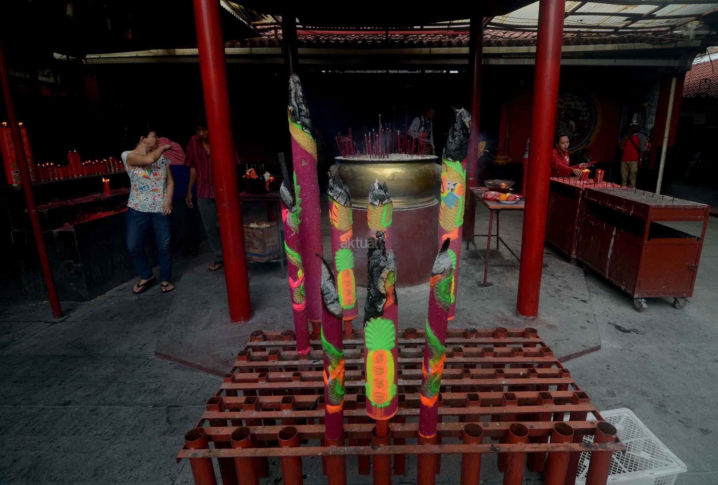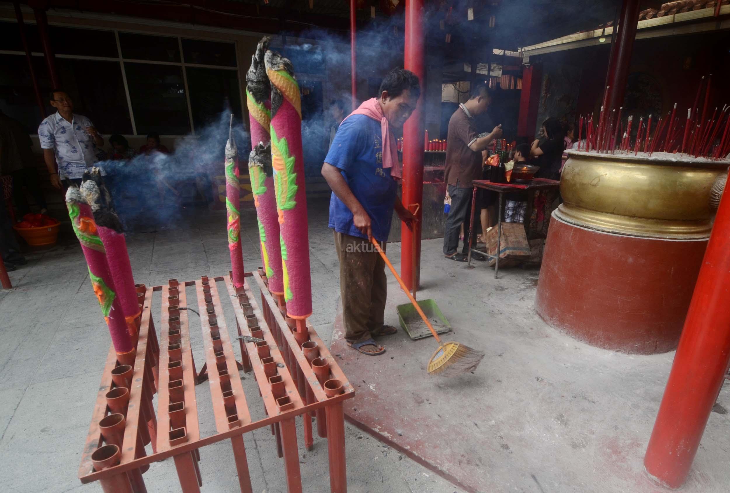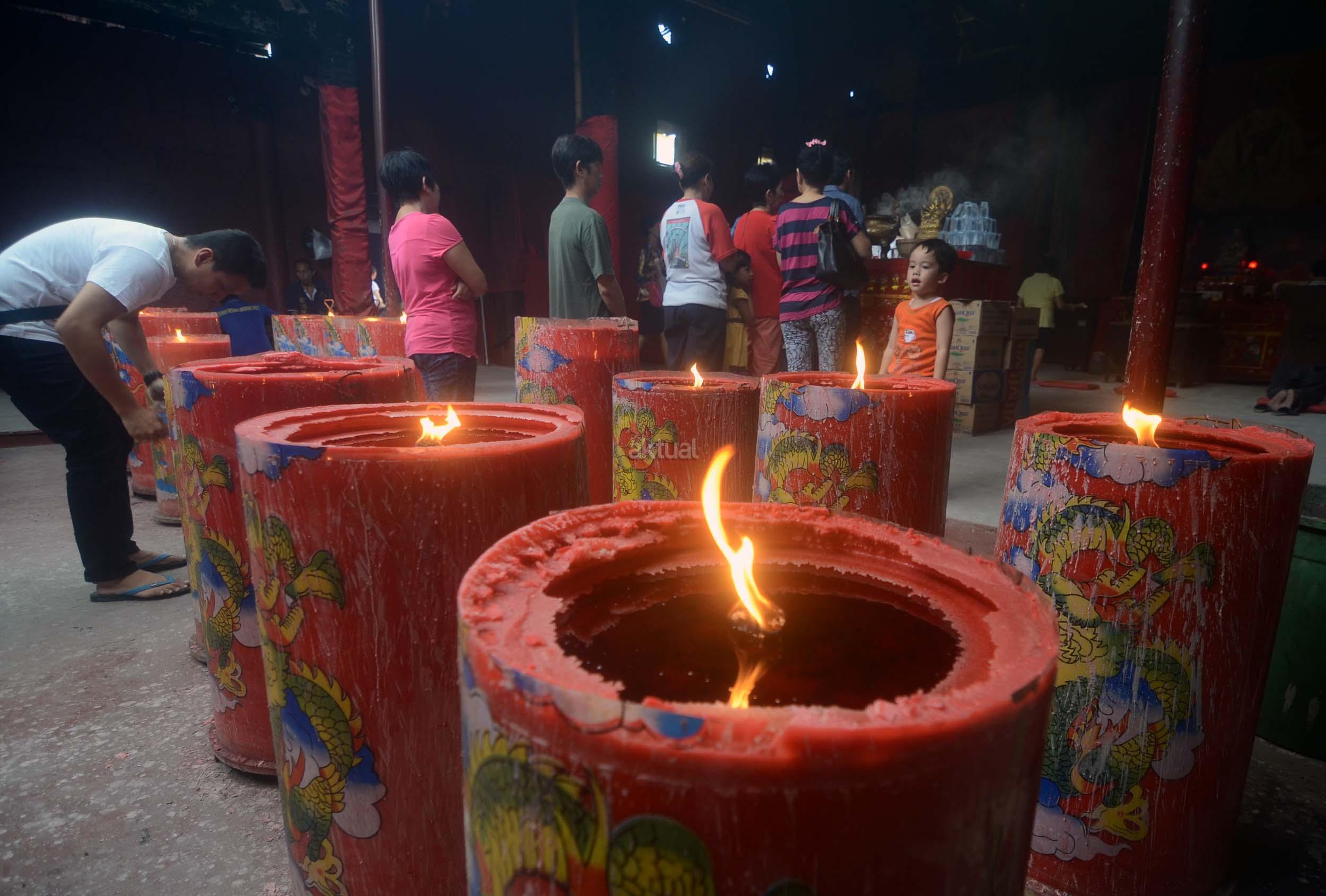 Umat Budha mulai berdoa menjelang perayaan Imlek di Vihara Dharma Sakti, Petak Sembilan, Jakarta Barat, Jumat (13/1/2017). Menjelang perayaan Imlek, sejumlah klenteng yang berada di Jakarta mulai ramai, dan dipadati umat yang beribadah.