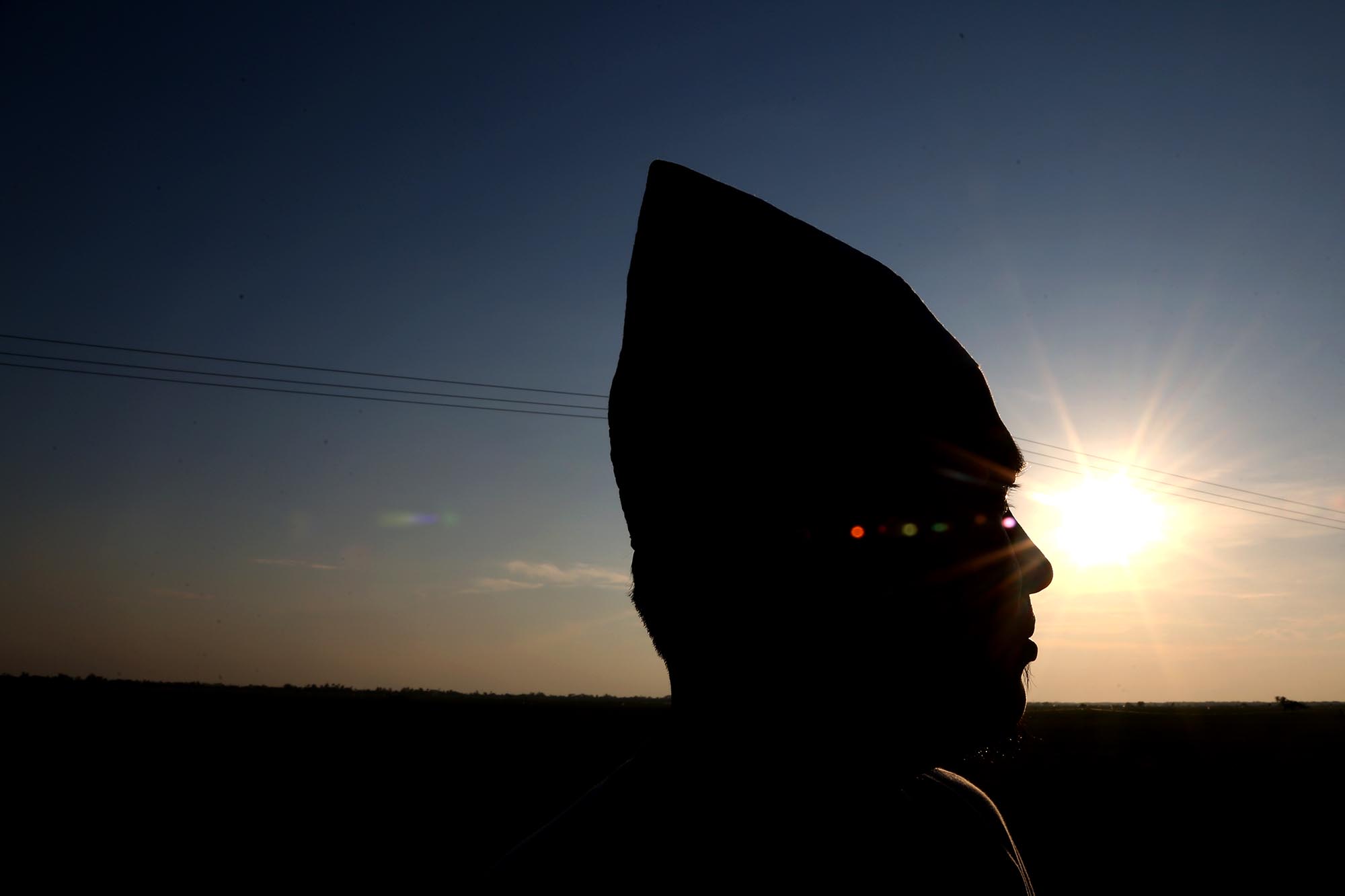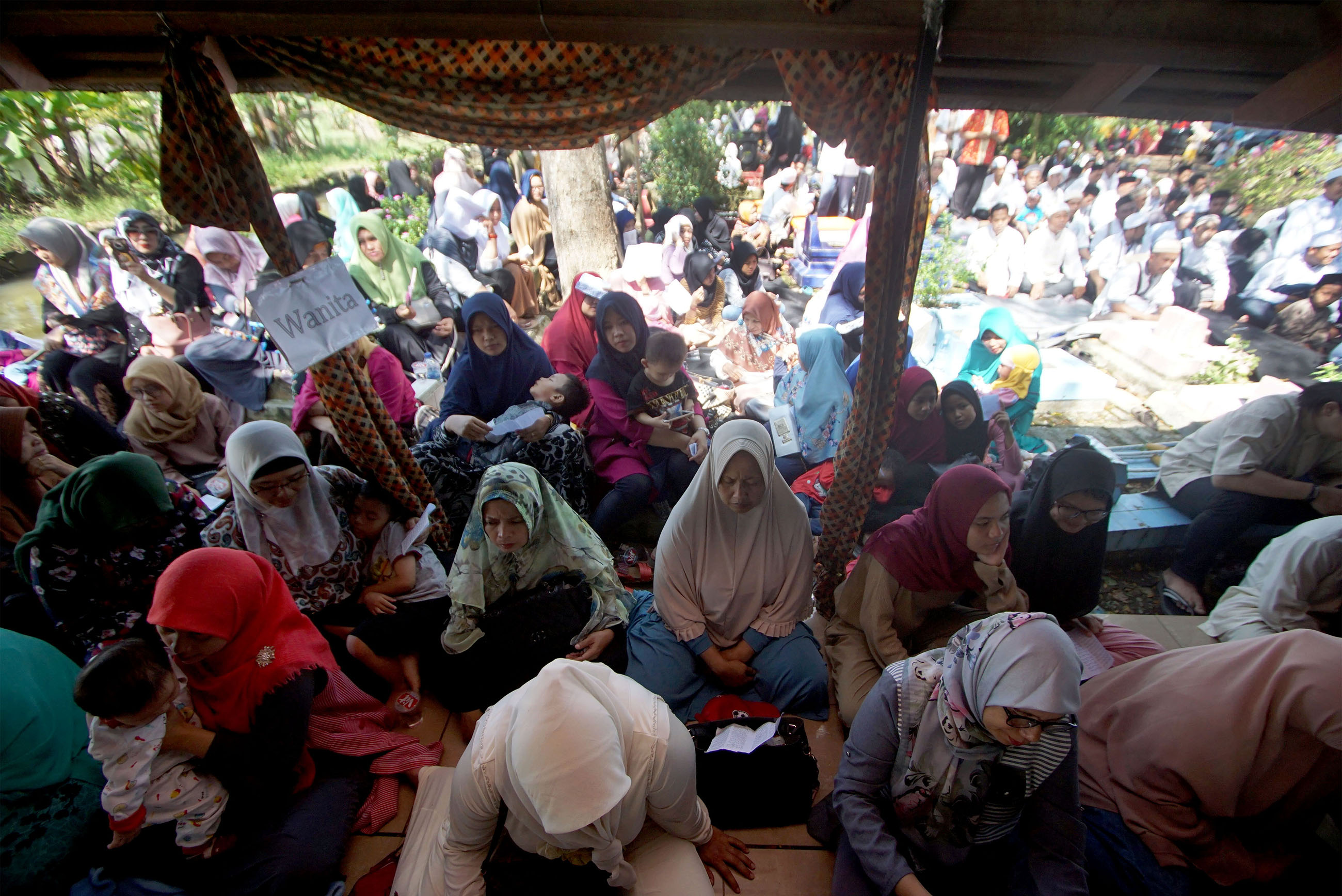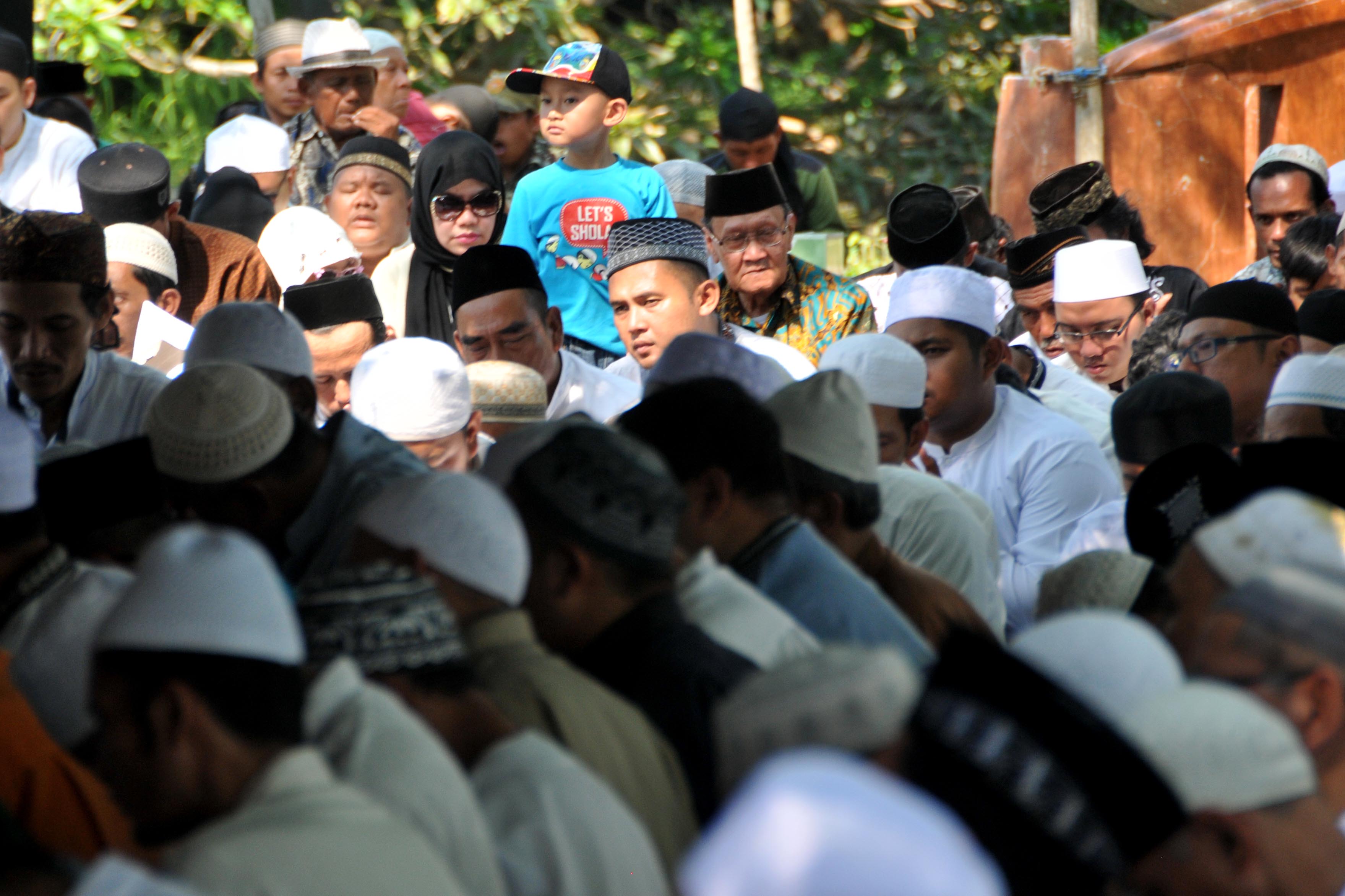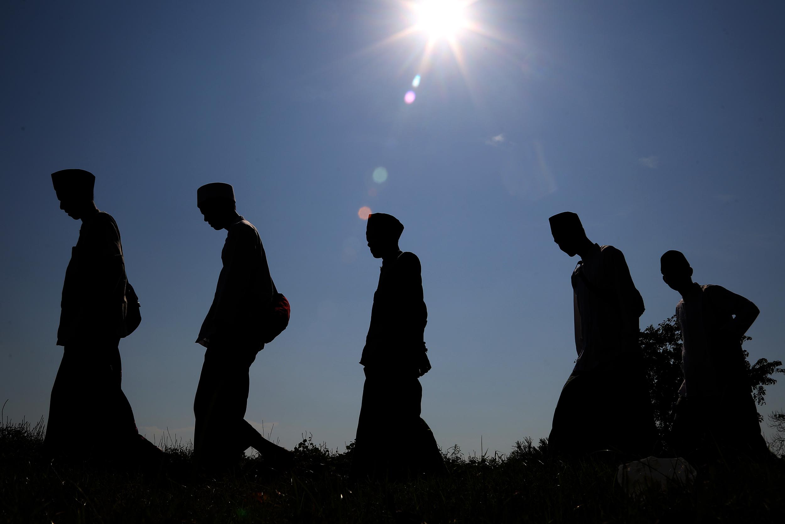 Siluet Jamaah Majlis Dzikir Ikhwanusshofa usai melakukan ziarah kubur di makam Mbah KH Husen, salah satu penyebar Agama Islam di Pantai Utara Jawa, Pamanukan, Subang, Jawa Barat, Minggu (29/4). Ziarah tersebut merupakan salah satu tradisi menjelang bulan suci Ramadan. AKTUAL/Istimewa