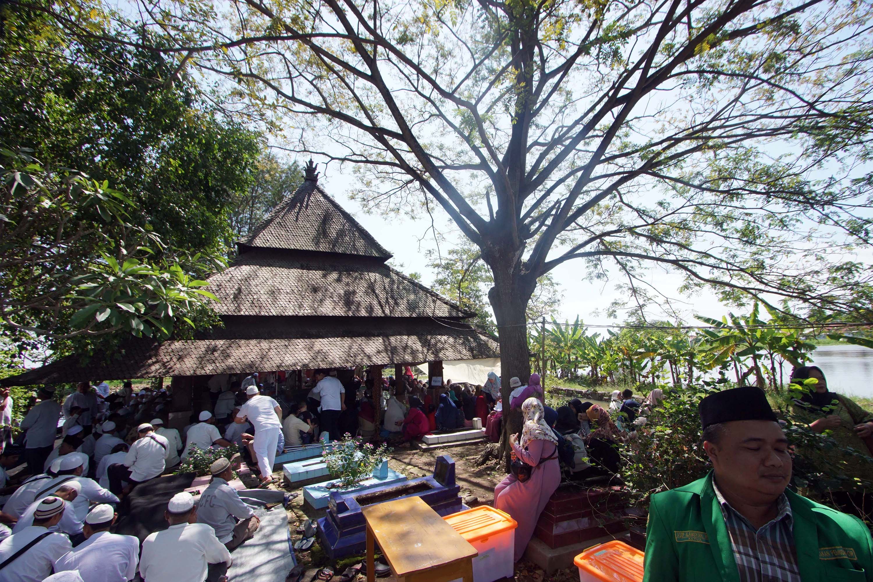 Sejumlah Jamaah Majlis Dzikir Ikhwanusshofa melakukan ziarah kubur di makam Mbah KH Husen, salah satu penyebar Agama Islam di Pantai Utara Jawa, Pamanukan, Subang, Jawa Barat, Minggu (29/4). Ziarah tersebut merupakan salah satu tradisi menjelang bulan suci Ramadan. AKTUAL/Istimewa