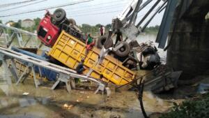 Berdasarkan informasi, saat jembatan yang membentang di atas aliran sungai Bengawan Solo itu, ada beberapa kendaraan yang melintas di atasnya. “Tadi ada 3 truk dan 1 mobil minibus, sepertinya avanza. Namun untukl avanzanya tidak sampai masuk ke air, hanya truknya saja,” sambungnya saat ditemui di lokasi kejadian.