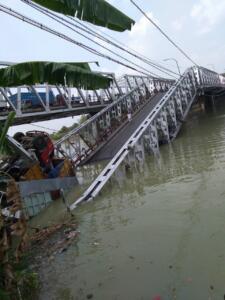 Informasi yang dihimpun, kejadian itu terjadi sekira pukul 10.50 WIB. Hal itu diketahui dari akun Facebook Mohammad Mirza Maulana. Akun tersebut mengunggah beberapa foto dan video terkait dengan kondisi jembatan yang ambruk.