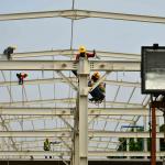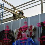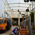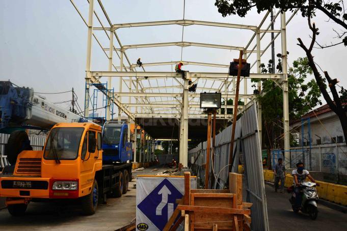 Warga melintas di antara proyek pembangunan Jembatan Penyeberangan Multiguna atau "Skybridge" di Tanah Abang, Jakarta, Minggu (2/9/2018). Pembangunan jembatan yang menghubungkan Stasiun Tanah Abang dengan Pasar Blok G Tanah Abang itu ditargetkan selesai pada Oktober 2018. AKTUAL/Tino Oktaviano