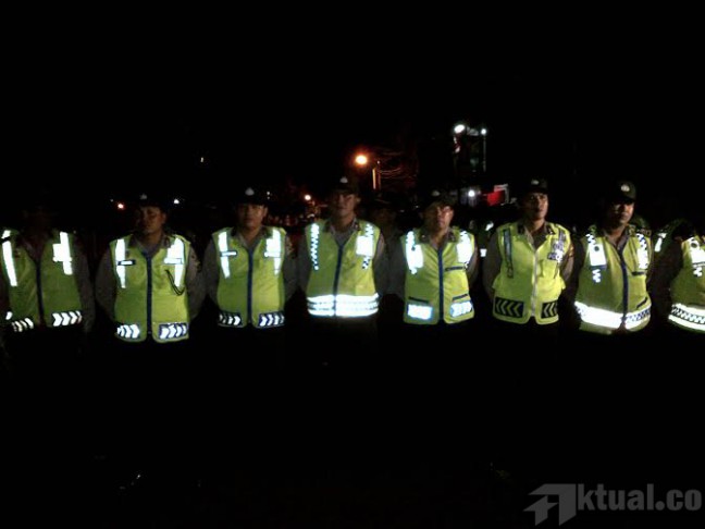 Petugas kepolisian gabungan menutup jalan dengan membuat pagar betis menutup jalan dari dua arah. Otomatis, tak ada satu kendaraan pun yang dapat melintas selain tim penjemput Andrew dan Myuran.