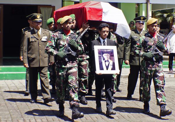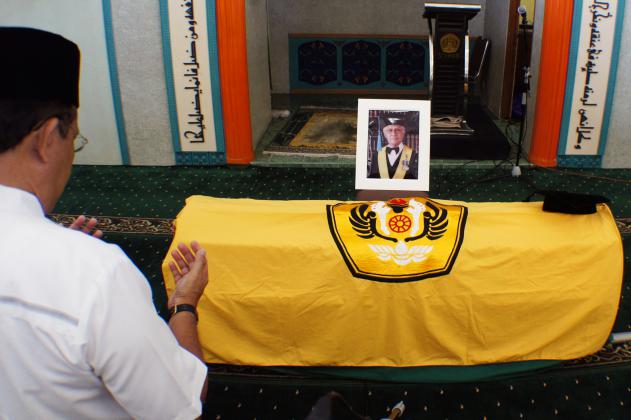 Jenazah pakar bahasa Indonesia dan Guru Besar Linguistik, Prof. Dr. Jusuf Syarif (J.S) Badudu siap diberangkatkan ke Taman Makam Pahlawan usai disalatkan di masjid Universitas Padjadjaran Bandung, Jawa Barat, Minggu (13/3). JS Badudu yang lahir 19 Maret 1926 di Gorontalo meninggal dunia pada Sabtu 12 Maret 2016 pukul 22.10 di Rumah Sakit Hasan Sadikin. ANTARA FOTO/Agus Bebeng/foc/16.