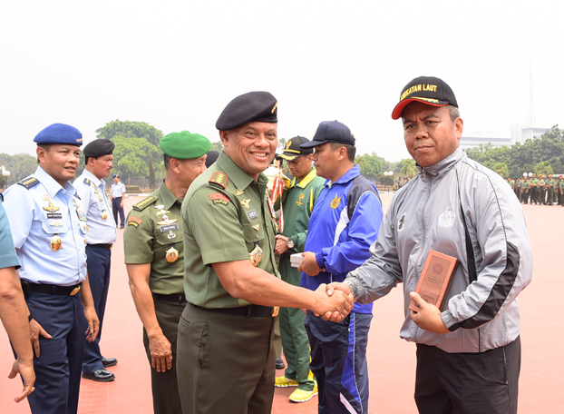 Dalam kesempatan tersebut Jenderal TNI Gatot Nurmantyo mengalungkan medali dan memberikan piala serta uang pembinaan kepada para atlet yang telah menjuarai pertandingan olahraga Piala Panglima TNI tahun 2015 dalam rangka Peringatan Hari TNI ke-70 tahun 2015.