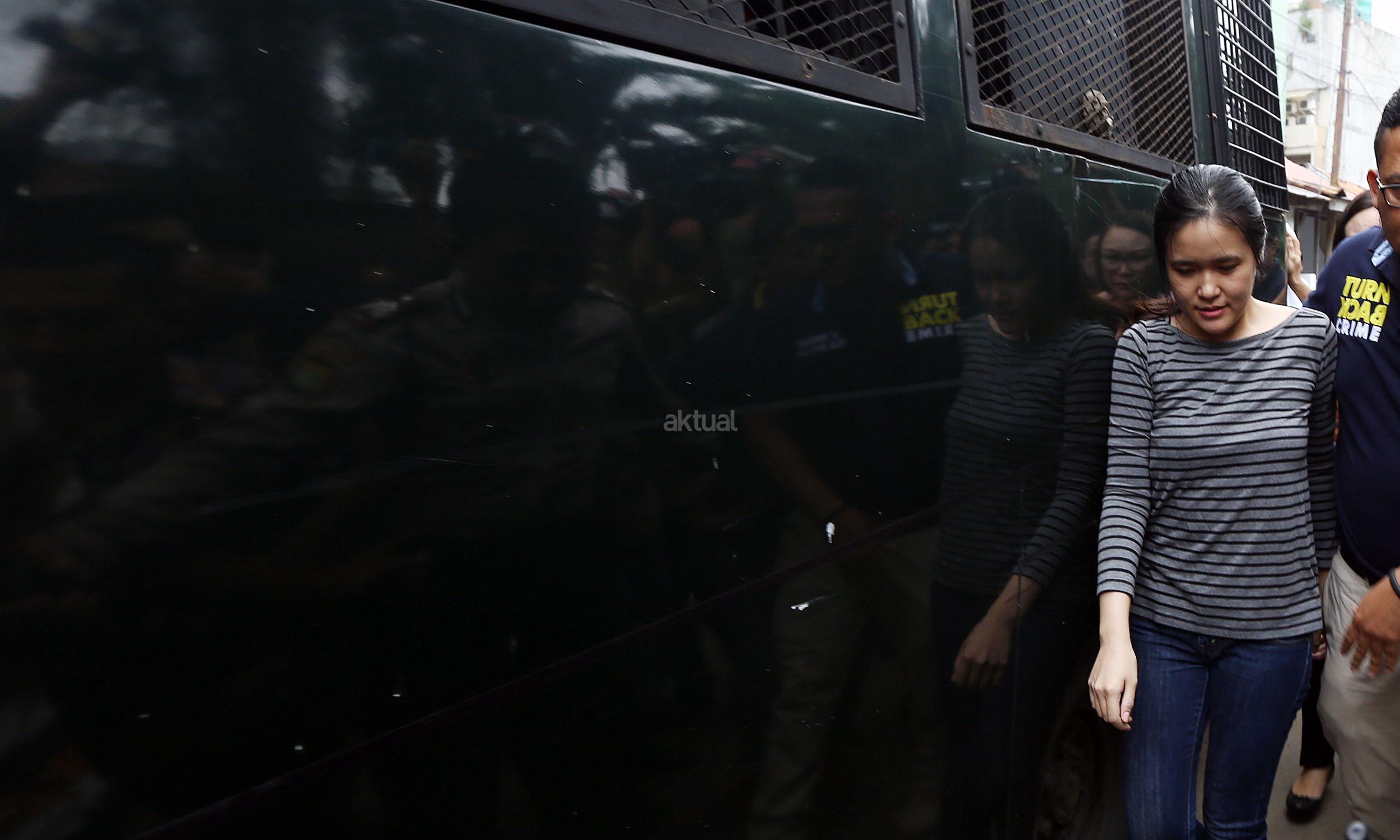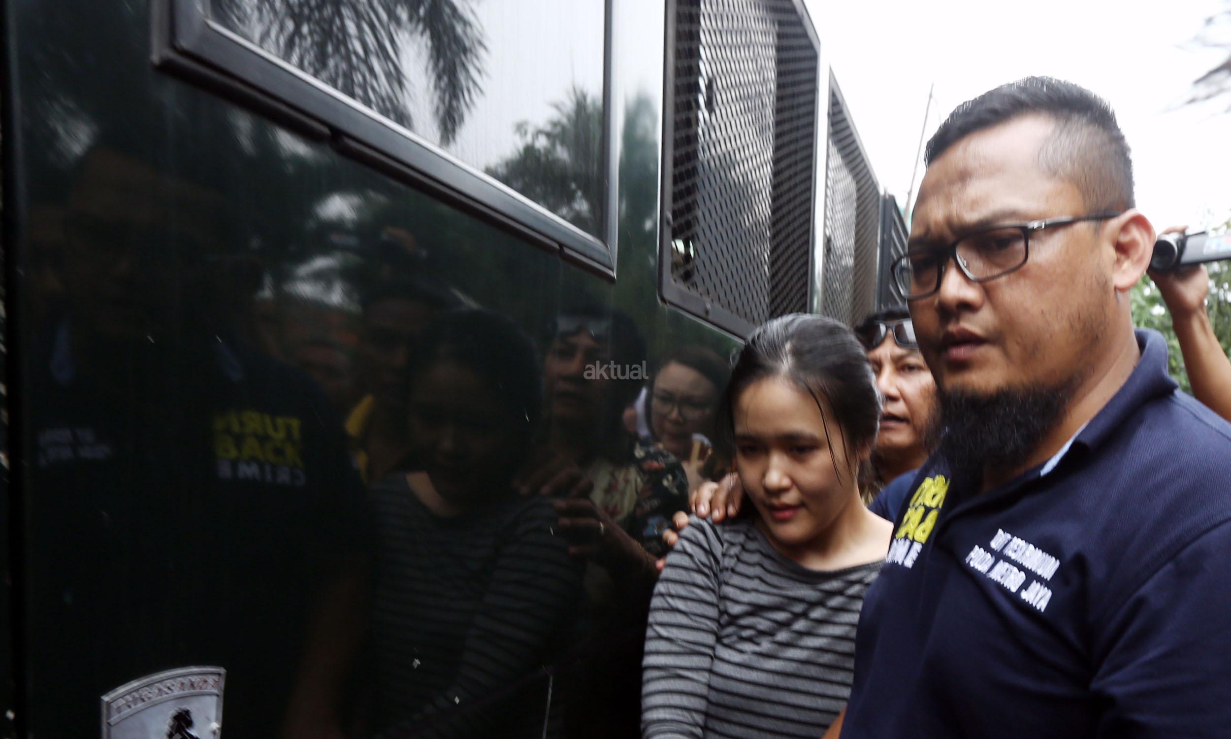 Jessica Kumala Wongso, tersangka pembunuhan Wayan Mirna Salihin tiba di Rutan Pondok Bambu, Jakarta Timur Jumat (27/5/2016). Jessica tiba dengan pengawalan ketat polisi dan selama dua puluh hari ke depan, Jessica akan dititipkan disana