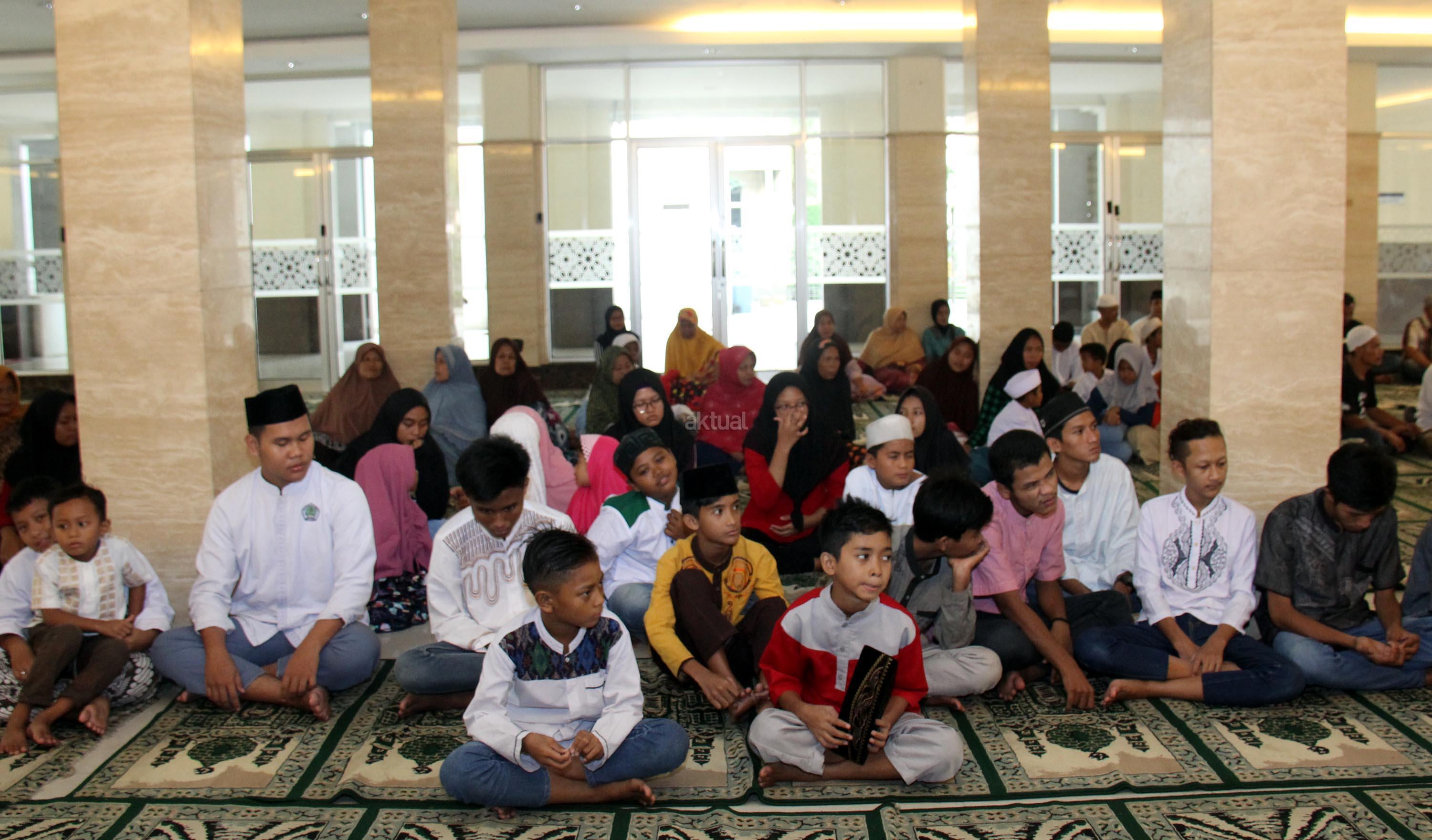 Suasana buka bersama karyawan PT Jakarta International Container Terminal (JICT) dengan kaum dhuafa dan pemberian bingkisan kepada anak-anak di Masjid JICT, Jakarta, Kamis (7/6/2018). Menyambut Idul Fitri, JICT memberikan santunan bagi 400 kaum dhuafa dan masjid di Jakarta Utara. AKTUAL/Tino Oktaviano