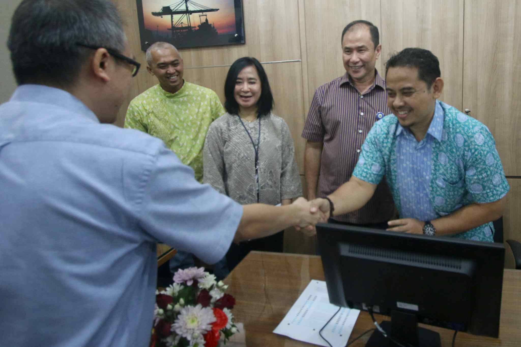 Wakil Dirut Jakarta International Container Terminal (JICT) Riza Erivan (kedua kanan) didampingi Direktur Komersial Ratih Farini (ketiga kanan) berbincang dengan pelanggan saat peluncuran Customer Service Priority di JICT, Jakarta, Jumat (9/9). Pelayanan baru tersebut dilatarbelakangi meningkatnya kebutuhan layanan prima bagi para pelanggan dan diharapkan dapat meningkatkan portfolio pelayanan terminal dengan segmen premium. AKTUAL/TINO OKTAVIANO
