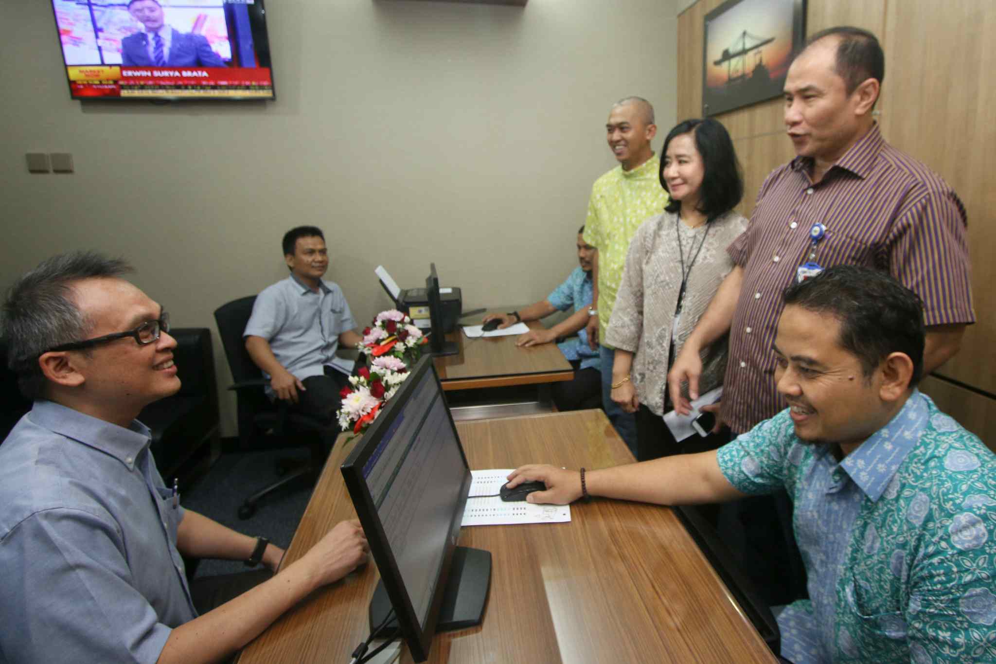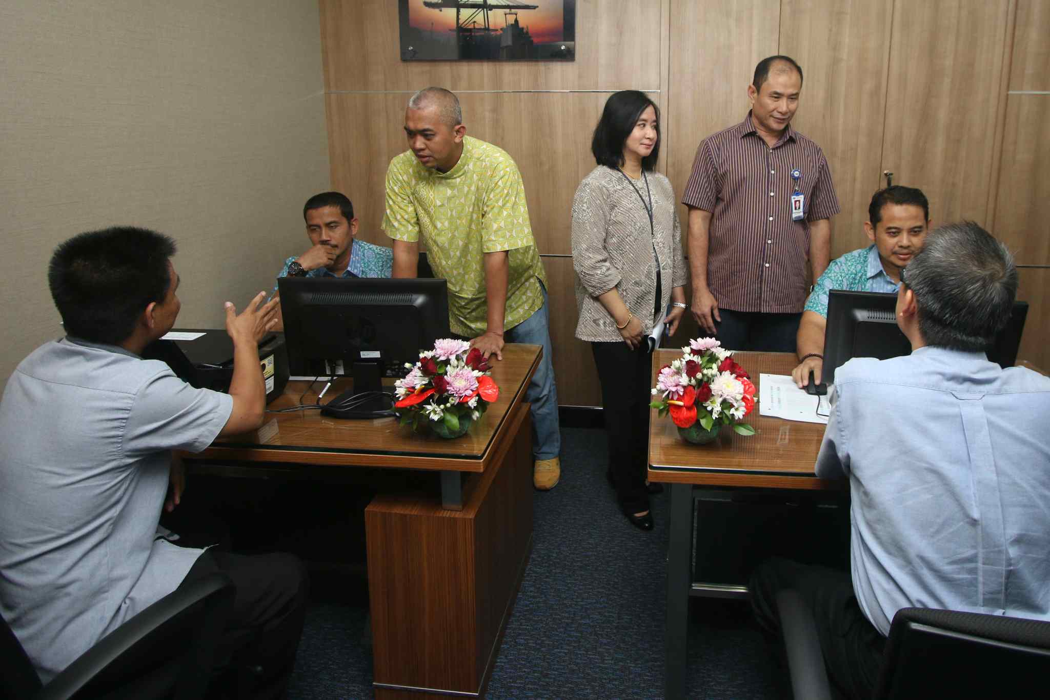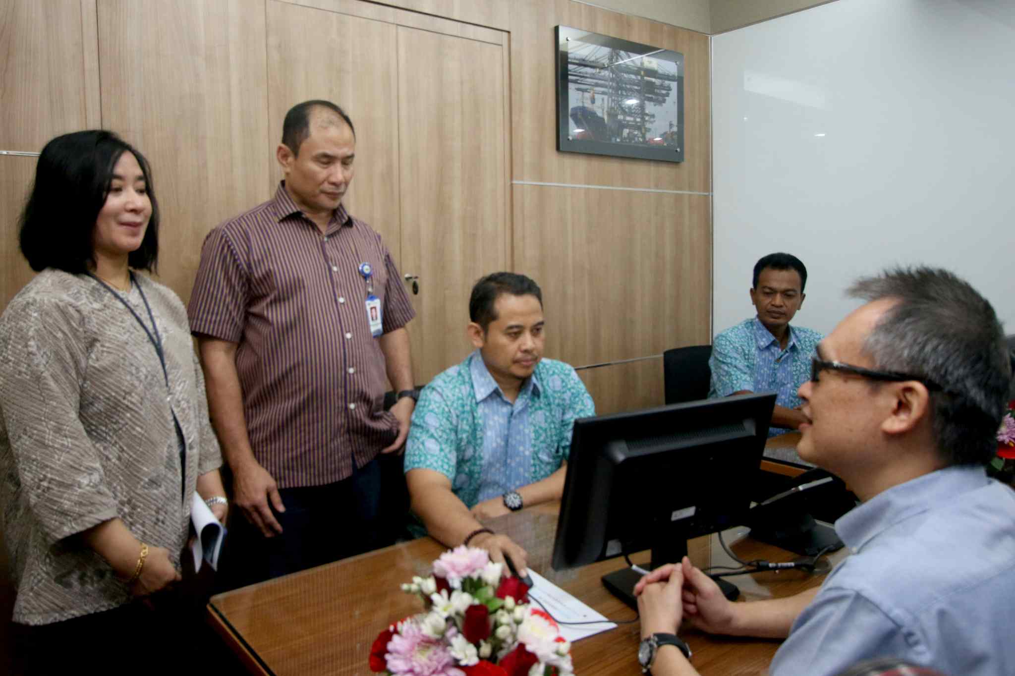 Wakil Dirut Jakarta International Container Terminal (JICT) Riza Erivan (kedua kiri) didampingi Direktur Komersial Ratih Farini (kiri) berbincang dengan pelanggan saat peluncuran Customer Service Priority di JICT, Jakarta, Jumat (9/9). Pelayanan baru tersebut dilatarbelakangi meningkatnya kebutuhan layanan prima bagi para pelanggan dan diharapkan dapat meningkatkan portfolio pelayanan terminal dengan segmen premium. AKTUAL/TINO OKTAVIANO