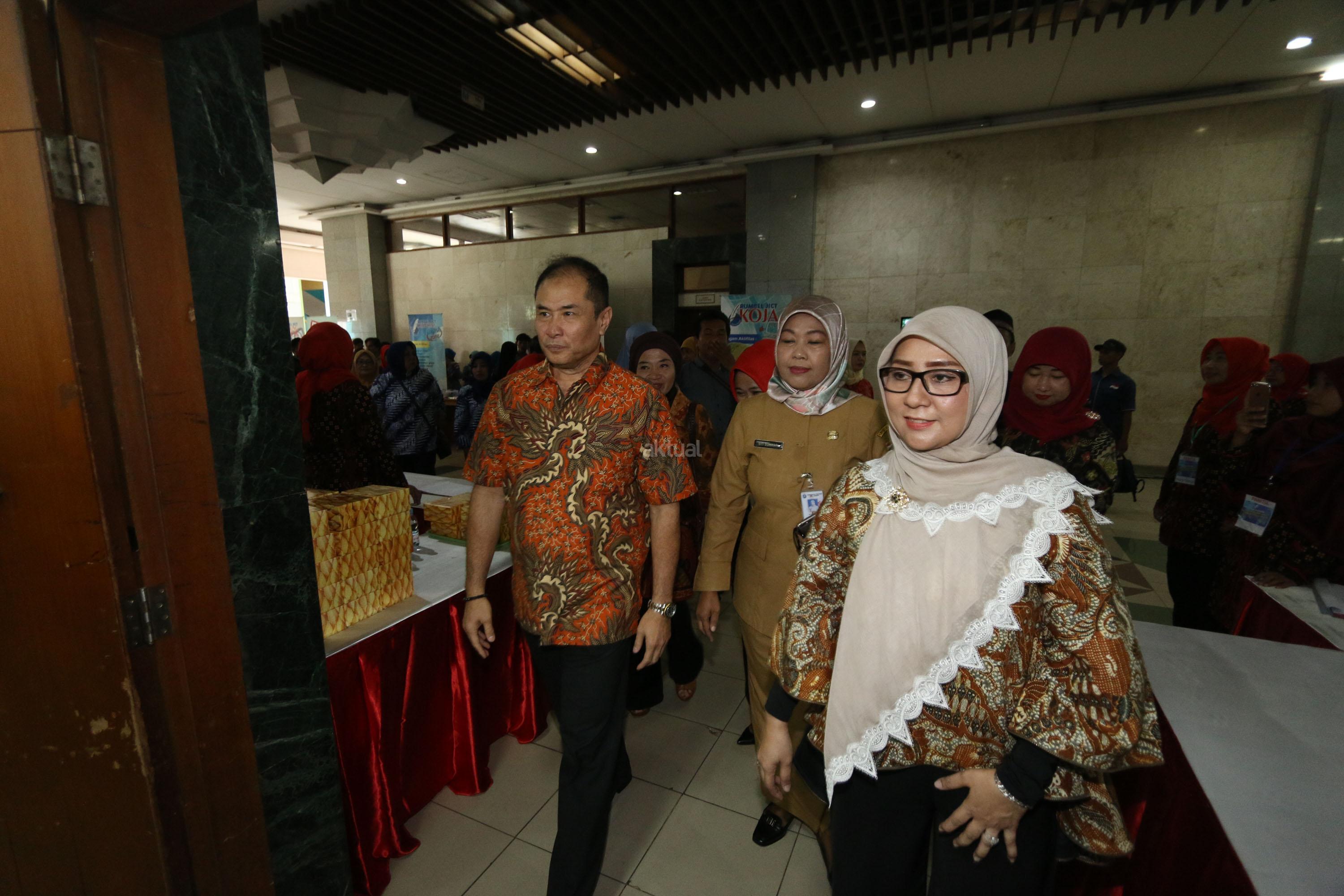 Wakil Presdir Jakarta Inernational Container Terminal (JICT) Riza Erivan (kiri) dan Wakil Ketua II TP PKK Jakarta Utara Siti Nurlaila Desi (kanan) berjalan saat akan meresmikan program public expose CSR, bertajuk “Pengembangan PAUD Jakarta Utara”, di Islamic Center, Jakarta Utara, Selasa (27/3/18). JICT senantiasa berupaya meningkatkan kompetensi masyarakat dengan program CSR JICT, lewat program di bidang pendidikan, kesehatan dan lingkungan. Selain itu JICT mencoba selalu mengeksplorasi program yang tepat guna agar perusahaan dan masyarakat dapat tumbuh bersama. AKTUAL/Tino Oktaviano