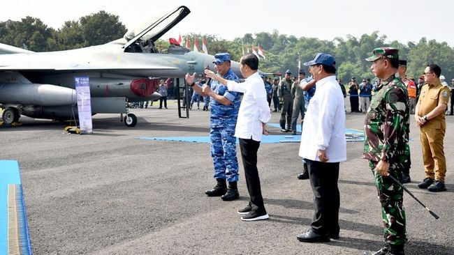 Jakarta, aktual.com – Presiden Joko Widodo (Jokowi) meninjau alat utama sistem persenjataan (alutsista) TNI di Pangkalan TNI AU Iswahjudi, Kabupaten Magetan, Jawa Timur. Jokowi didampingi Menhan Prabowo Subianto melihat kesiapan tiga pesawat tempur TNI AU, yakni dua pesawat F-16 dan satu pesawat T-50.