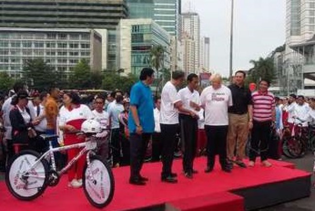 Jakarta, Aktual.co — Presiden Joko Widodo bersama Wali Kota London, Boris Johnson, Minggu pagi (30/11), bersepeda bersama di kawasan Bundaran Hotel Indonesia hingga Istana Presiden bersamaan dengan program hari bebas kendaraan bermotor di kawasan Thamrin hingga Monas.