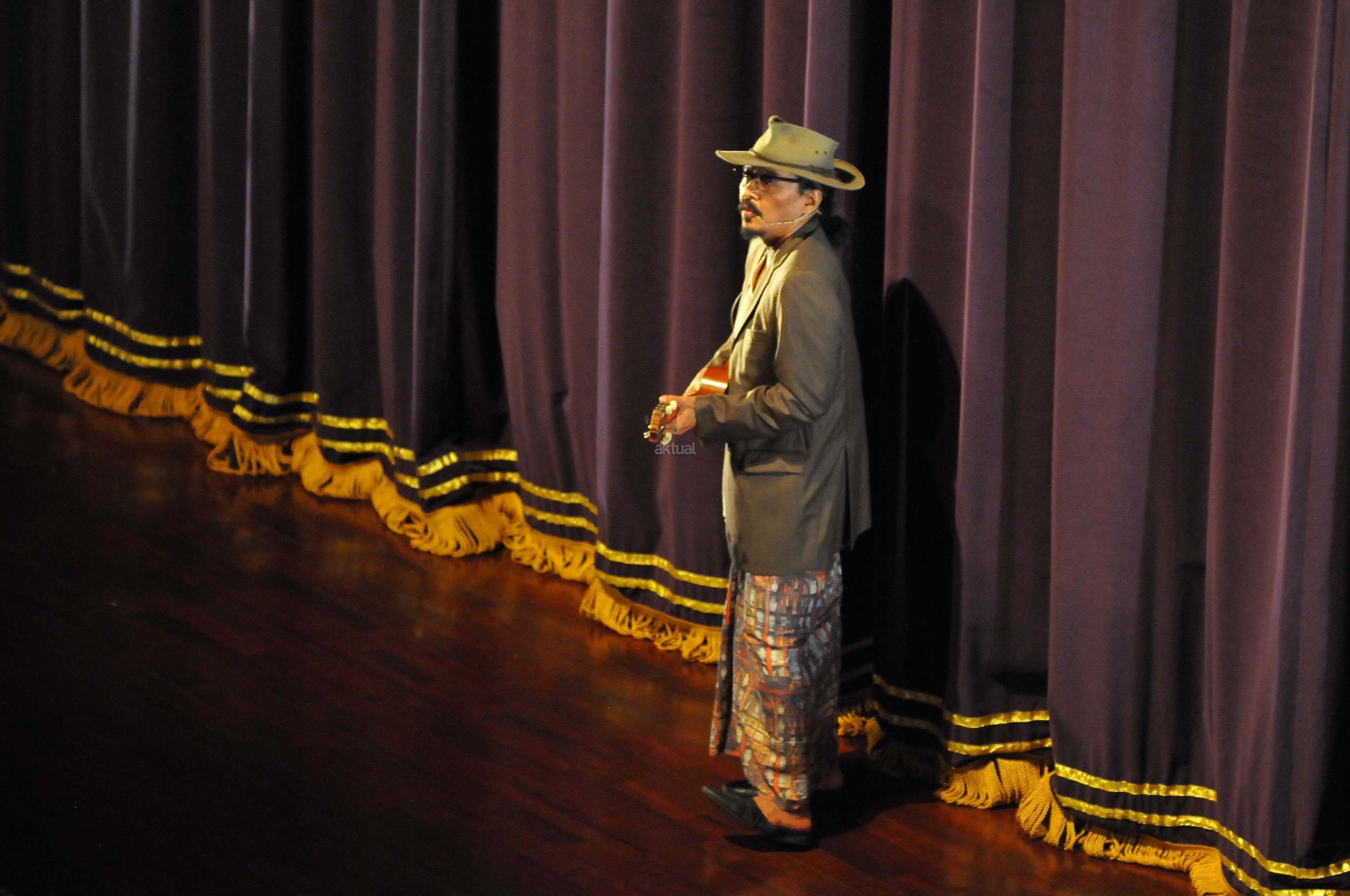 Seniman Sujiwo Tedjo saat saat Ulang Tahun di Taman Ismail Marzuki, Jakarta, Senin (23/1). Perayaan hari ulang tahun ke-70 rayakan dengan menonton bersama Pementasan teater kebangsaan TRIPIKALA. AKTUAL/Tino Oktaviano